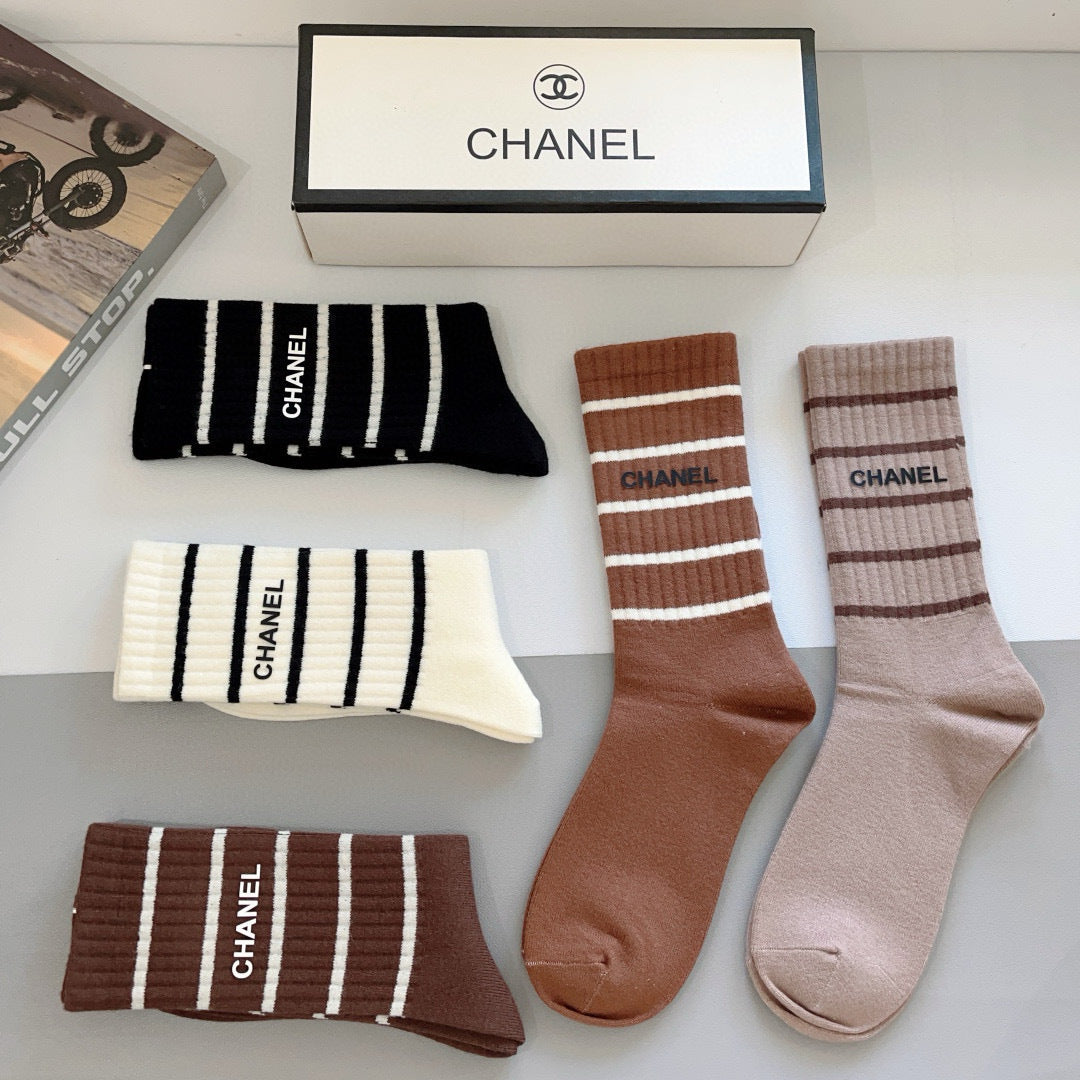 Elevate your sock game with the CHANEL Double C Logo Socks, a favorite among internet influencers and fashion enthusiasts. Packaged in a stylish box of five pairs, these high-quality socks feature a luxurious pure cotton material that is lightweight, soft, and breathable, making them perfect for year-round wear. Embrace the chic aesthetic of European and American street fashion with these must-have accessories that effortlessly blend comfort and style. Ideal for gifting or treating yourself!