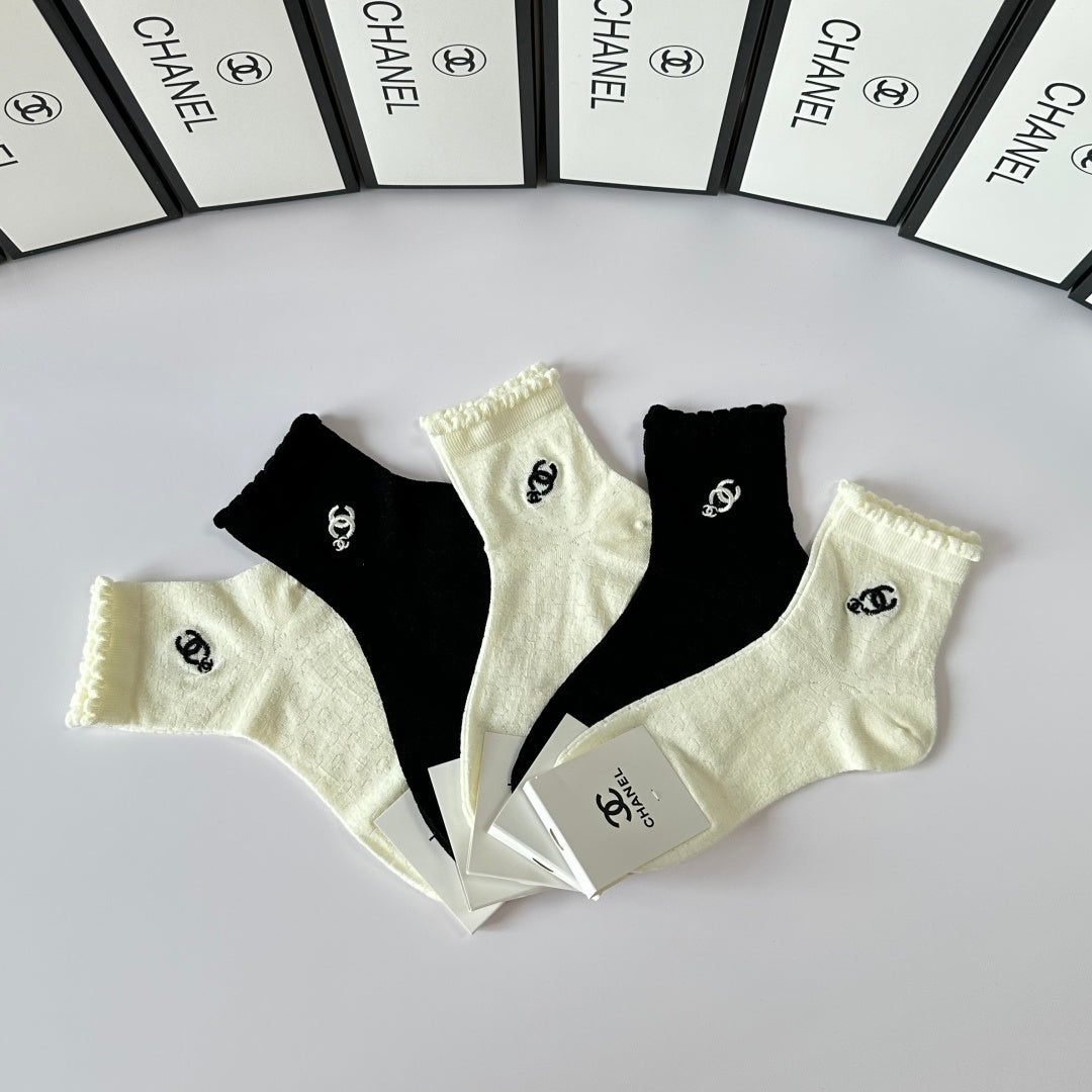Chanel Embroidered Mid-Length Pile Socks - 5-Pair Set