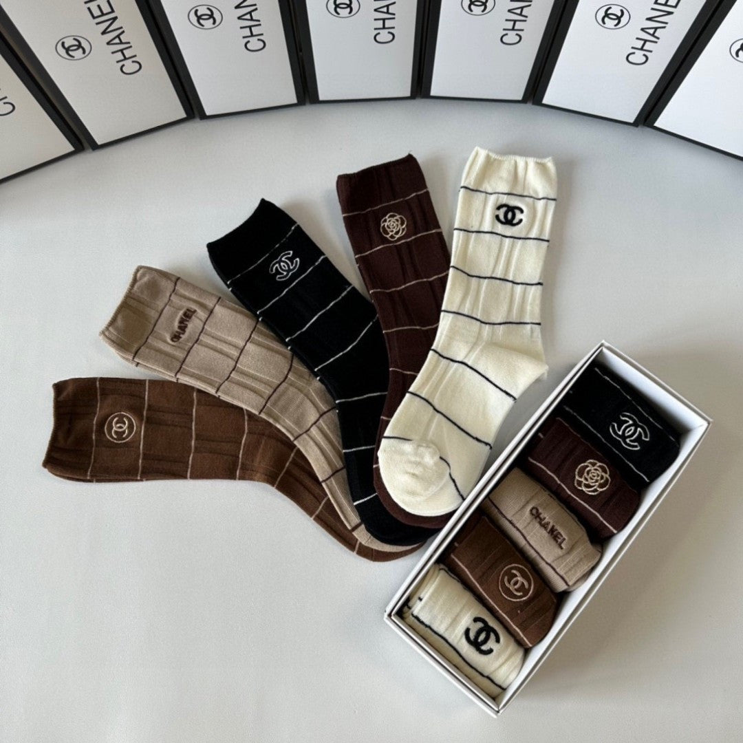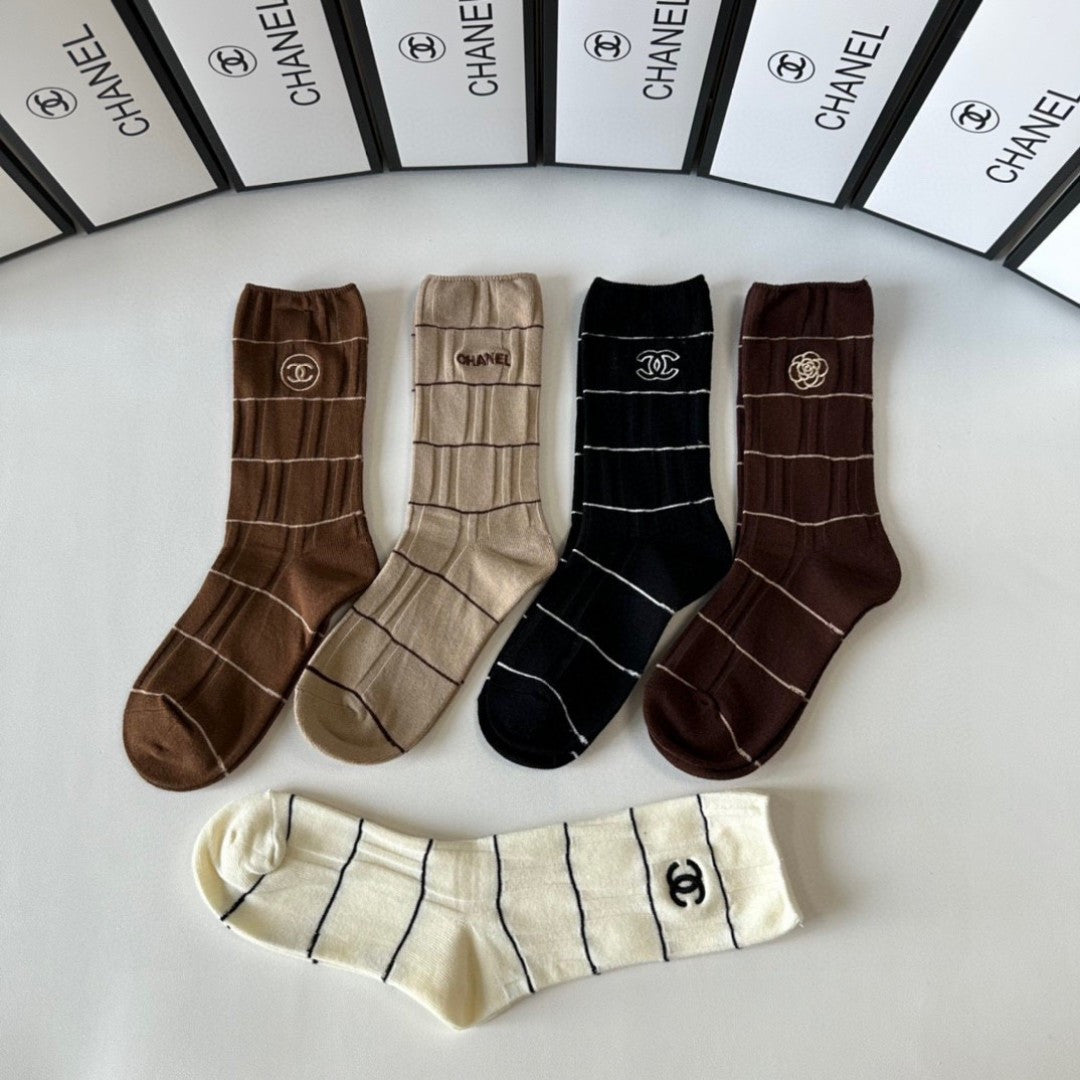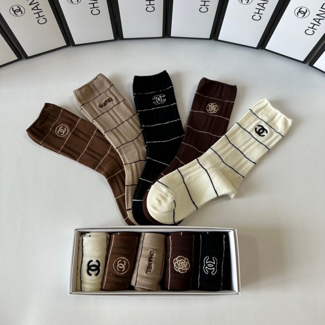 Chanel Embroidered Mid-Length Socks - 5 Pairs Gift Box