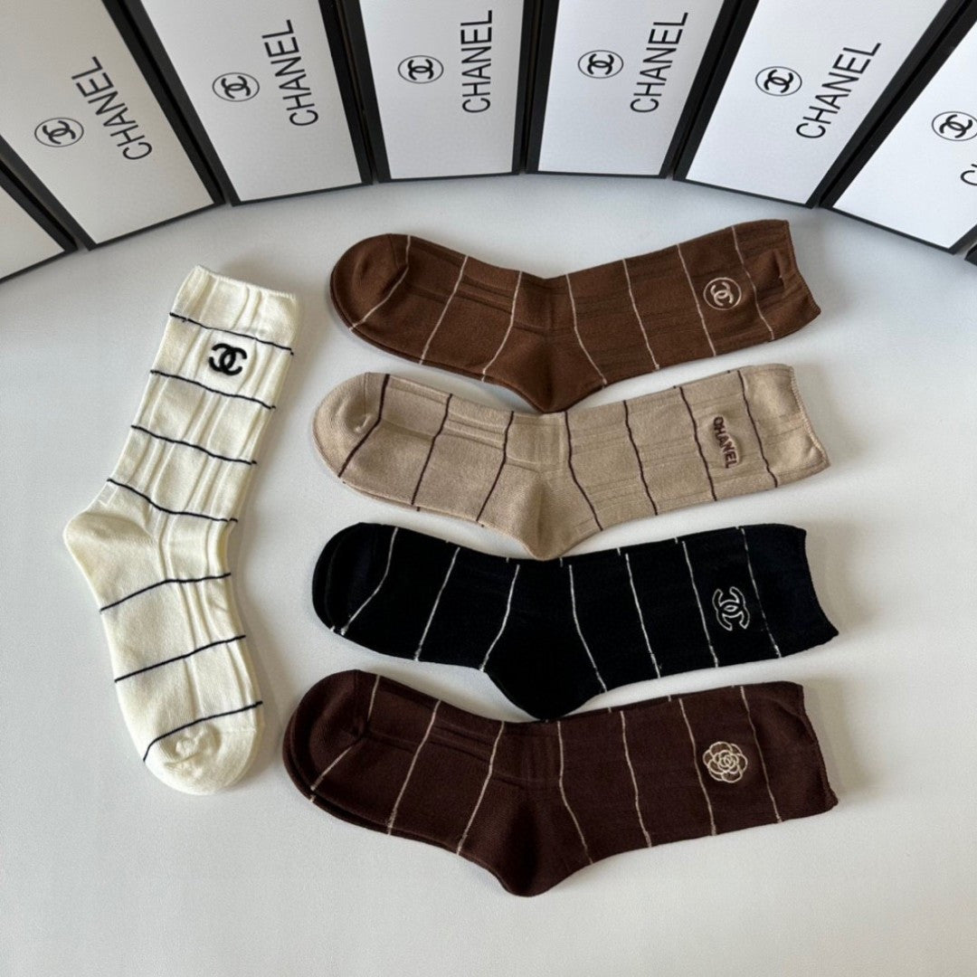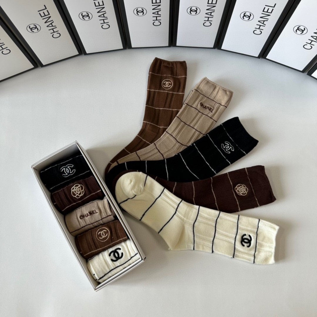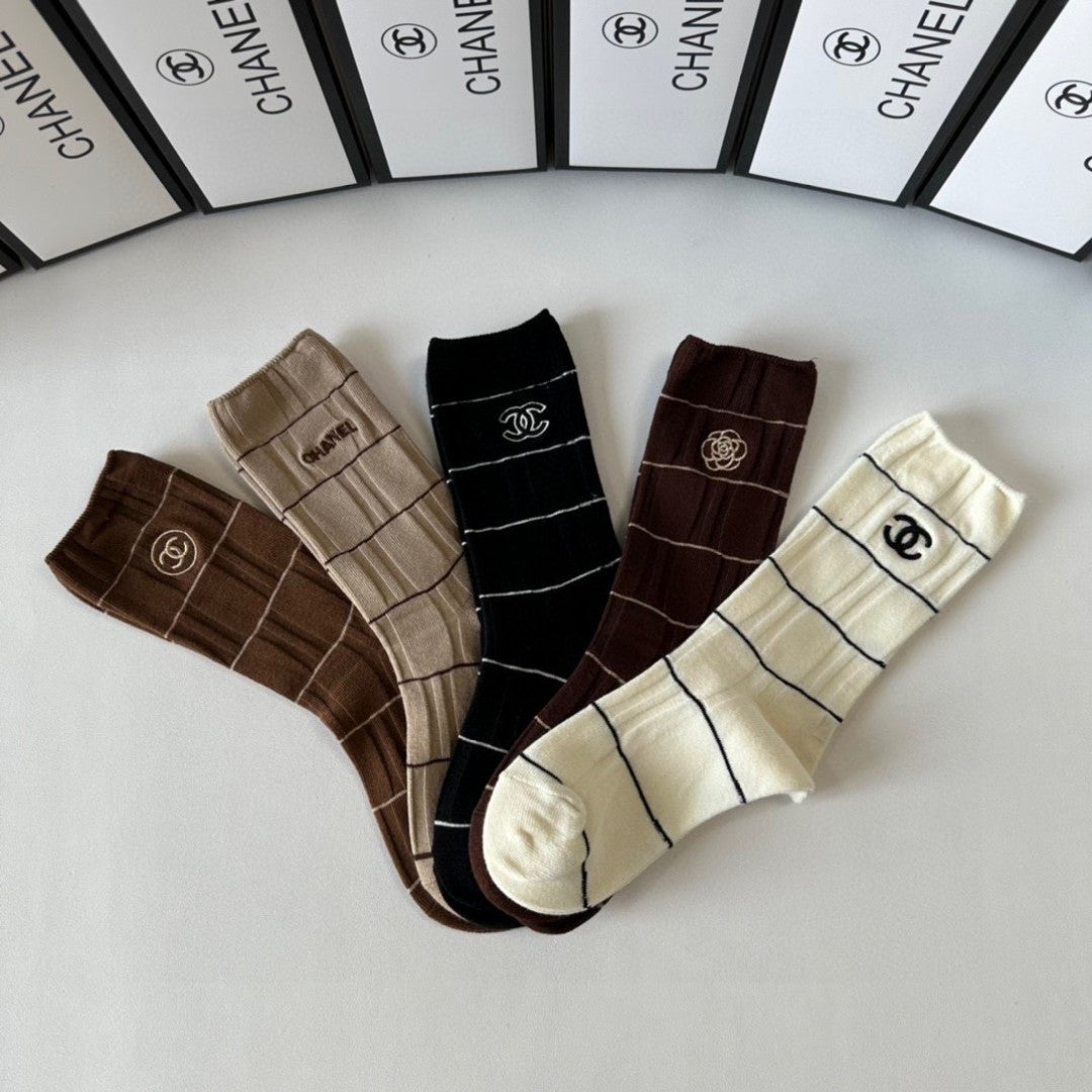 Chanel Embroidered Mid-Length Socks - 5 Pairs Gift Set
