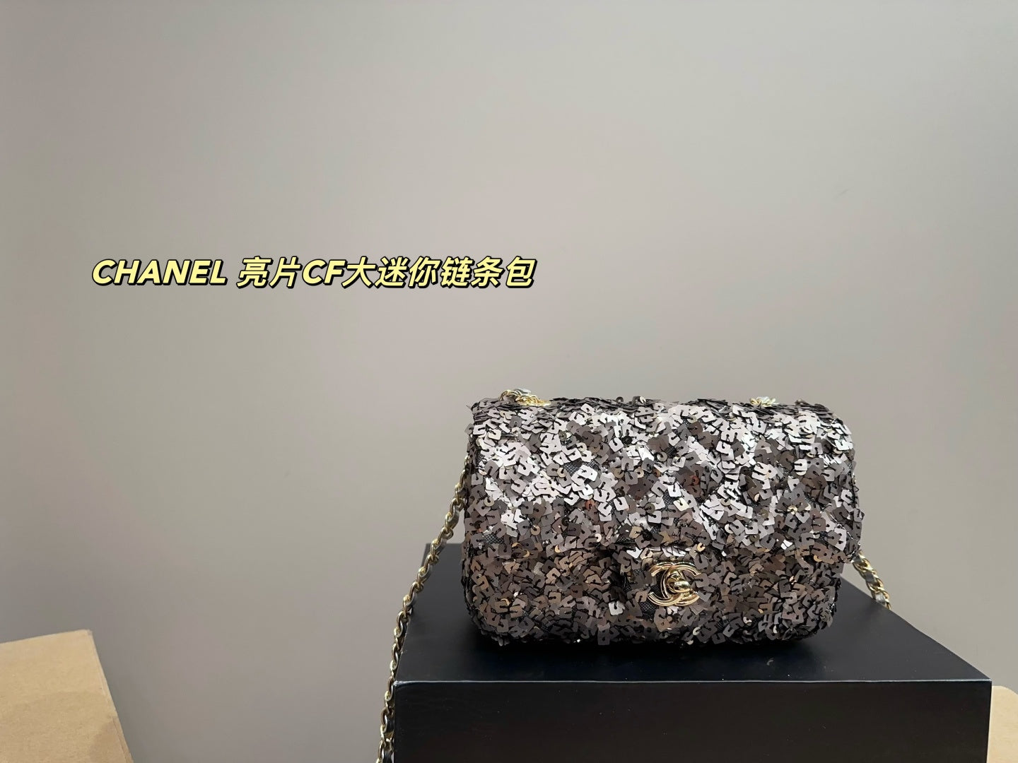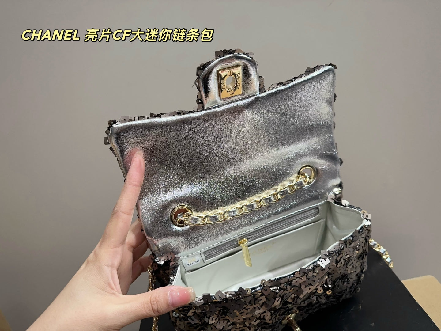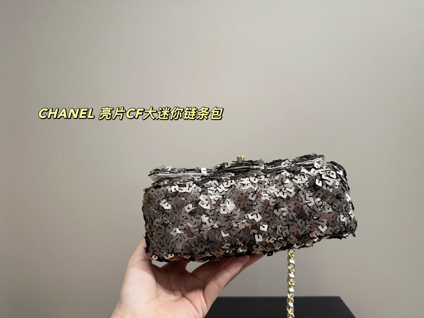 CHANEL Large Mini Chain Bag with Sequined CF Design