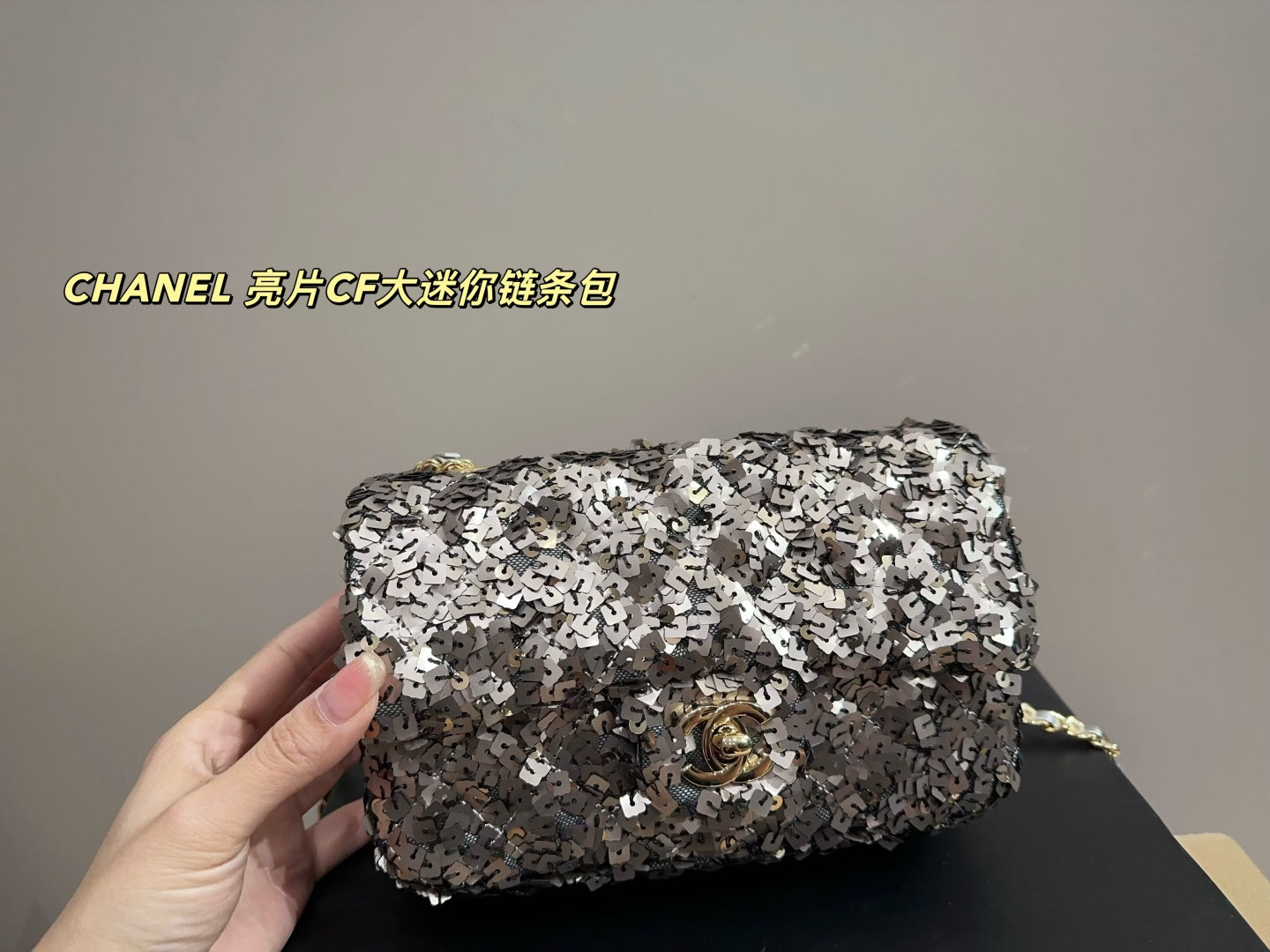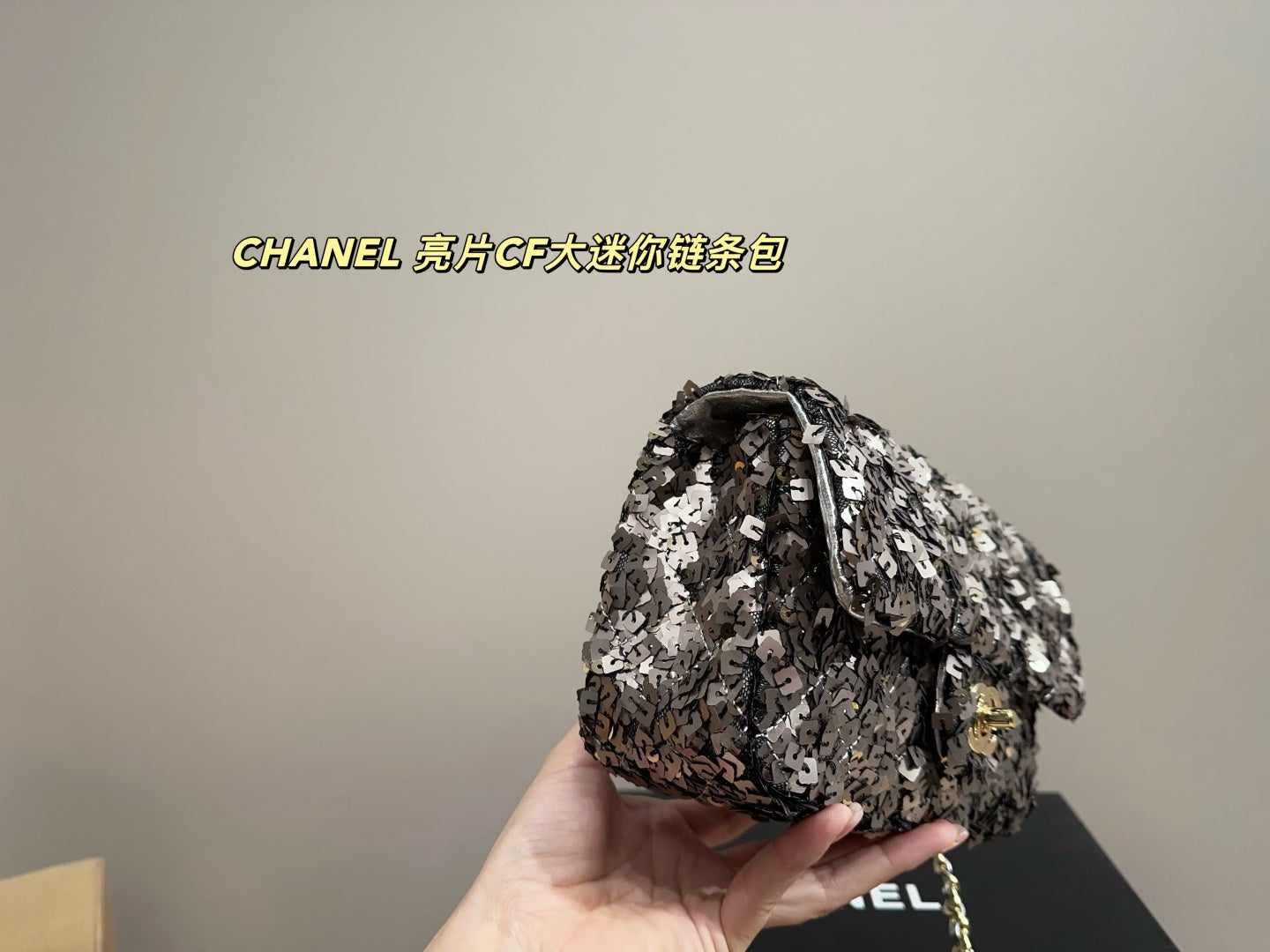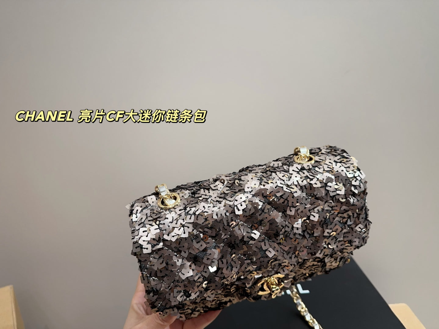 CHANEL Large Mini Chain Bag with Sequined CF Design