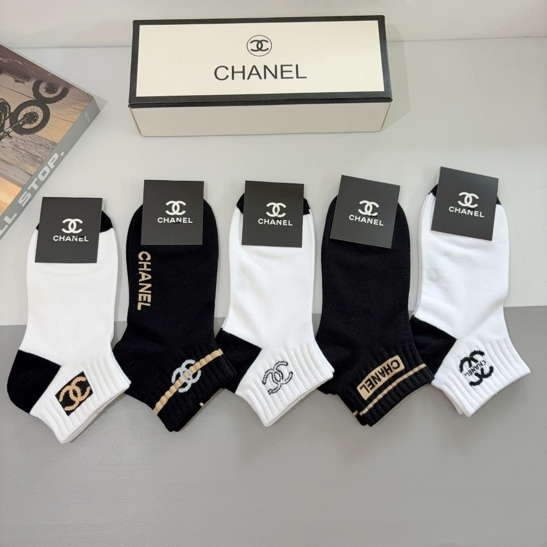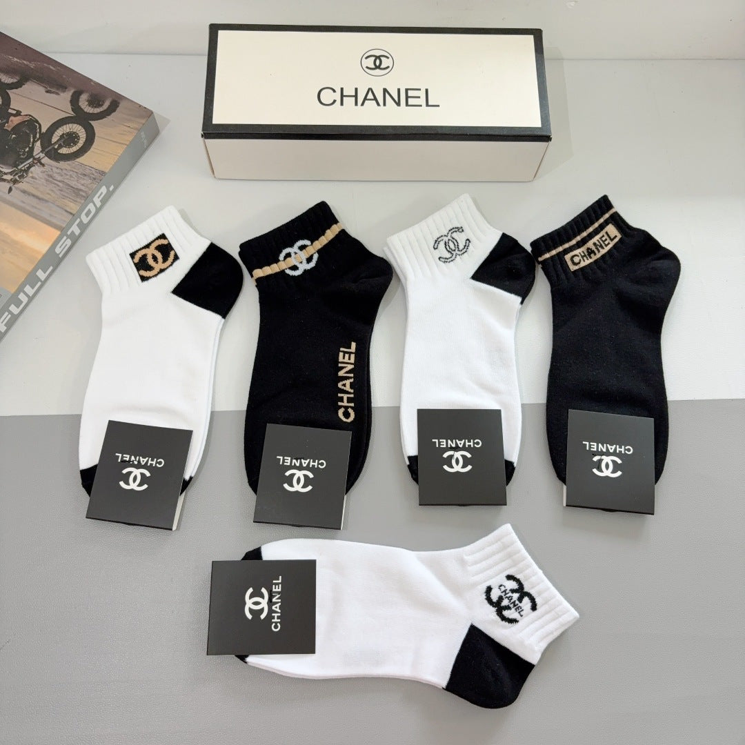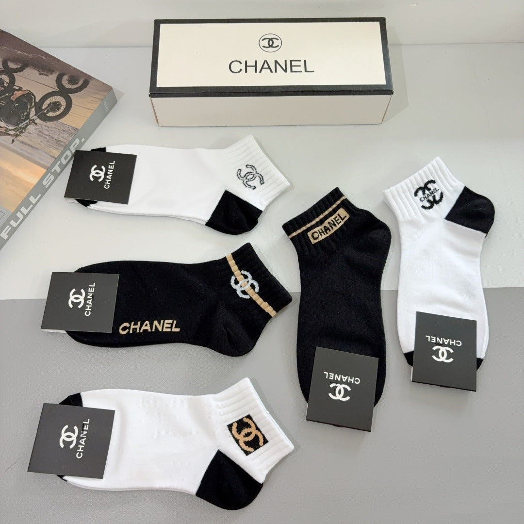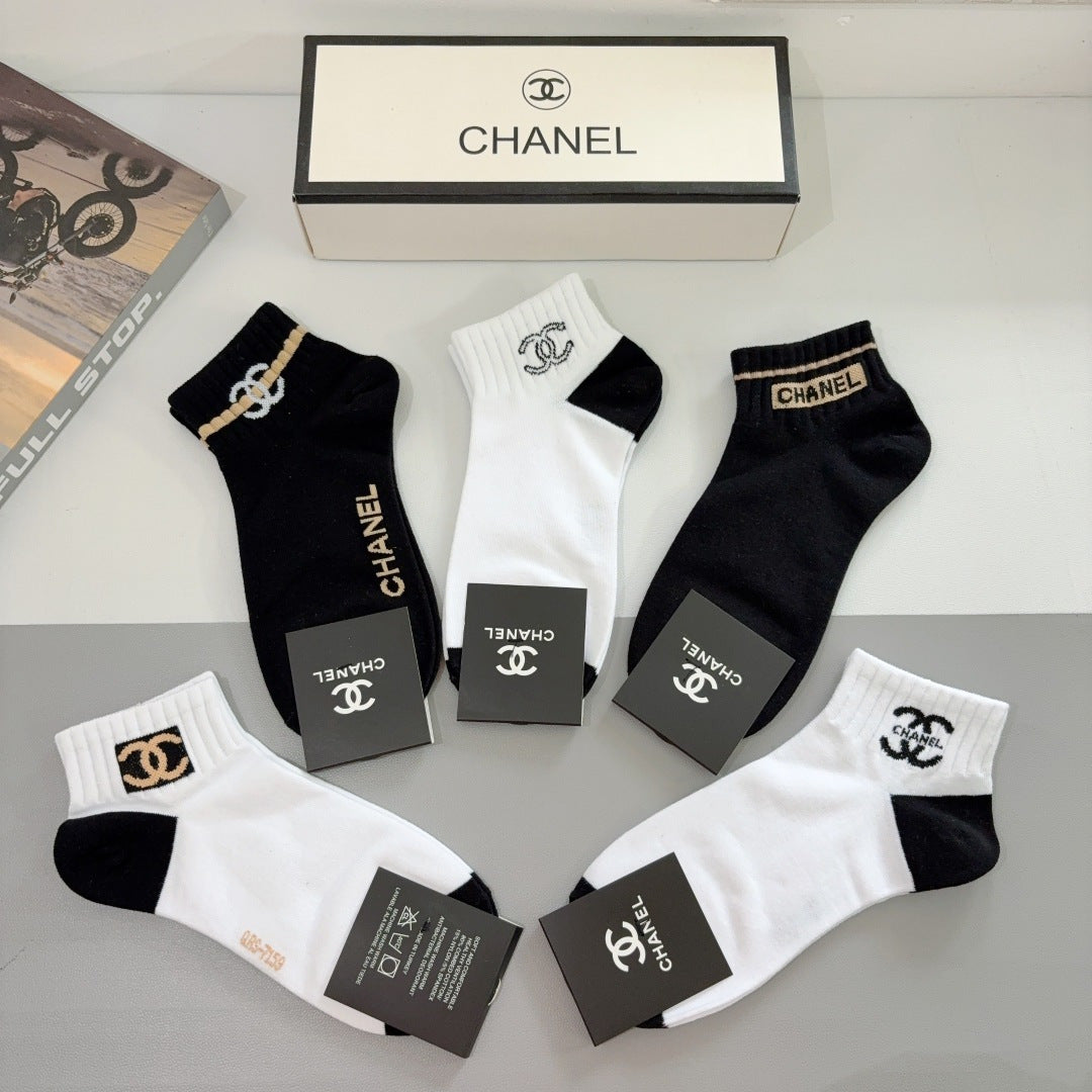 CHANEL Luxury Boat Socks - 5 Pairs in Stylish Box