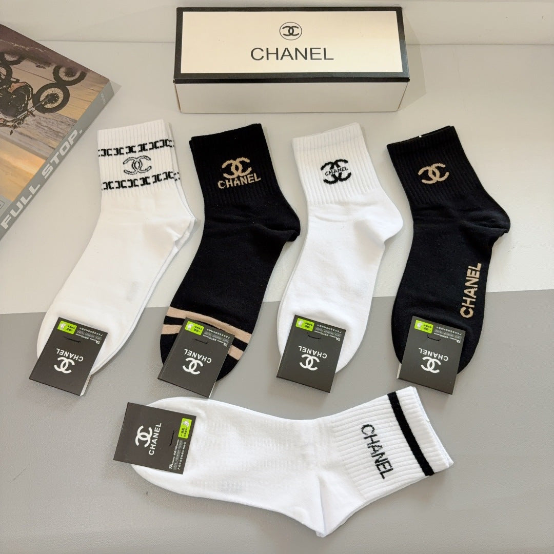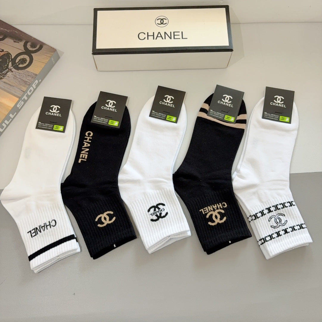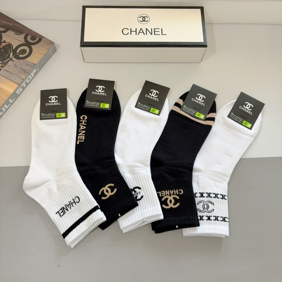 CHANEL Men's Classic Mid-Calf Cotton Socks - 5 Pairs