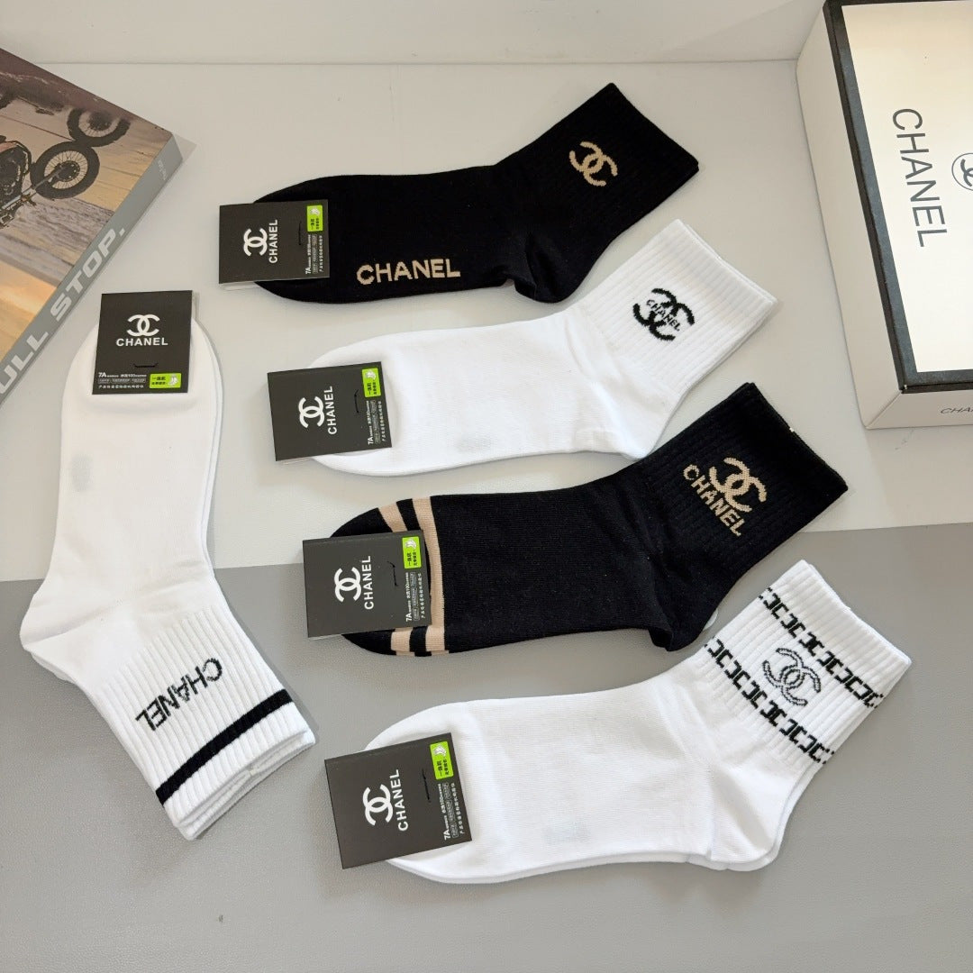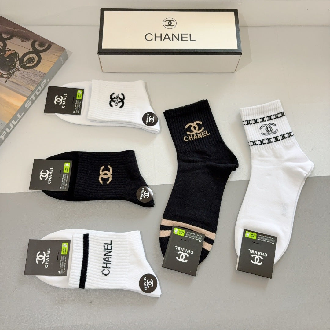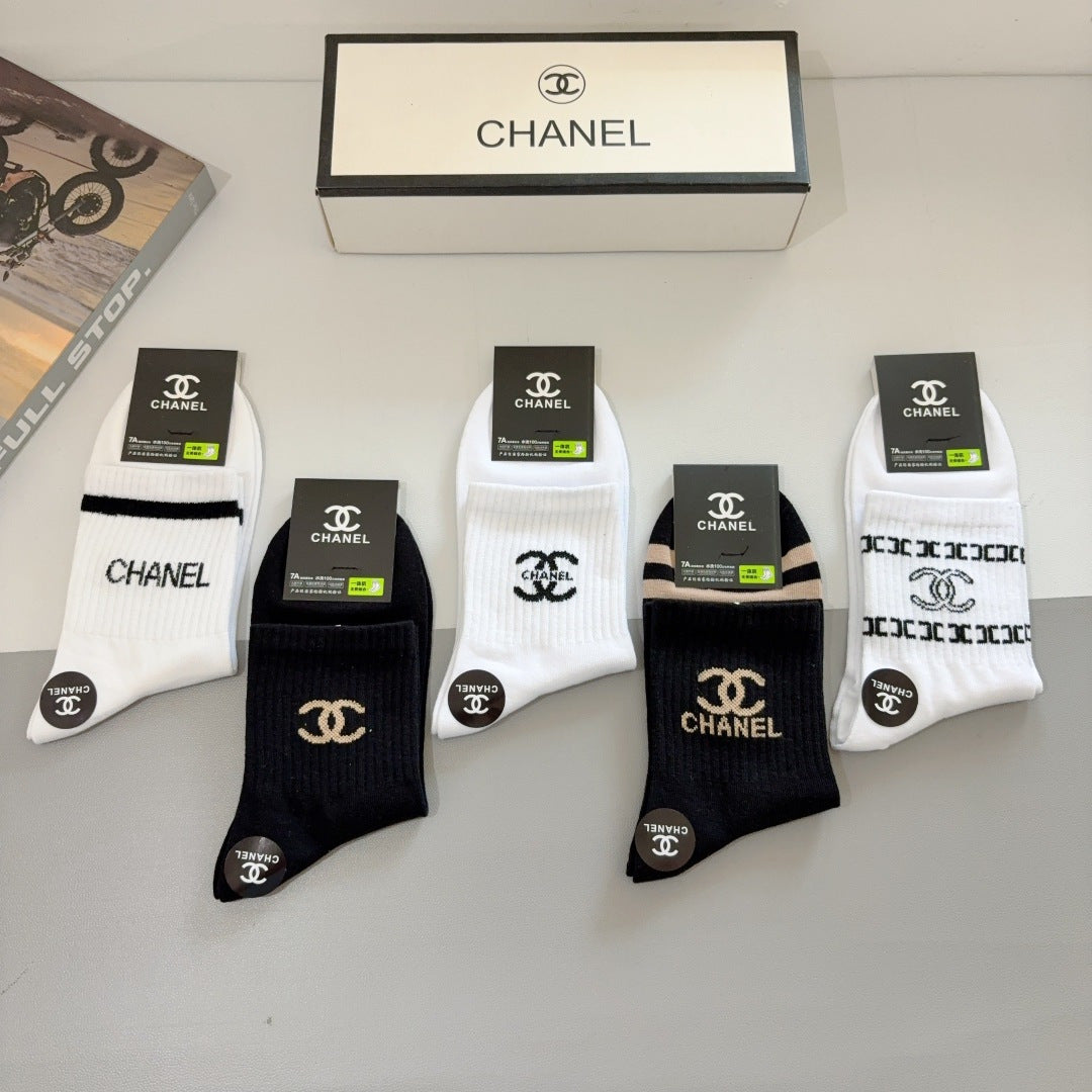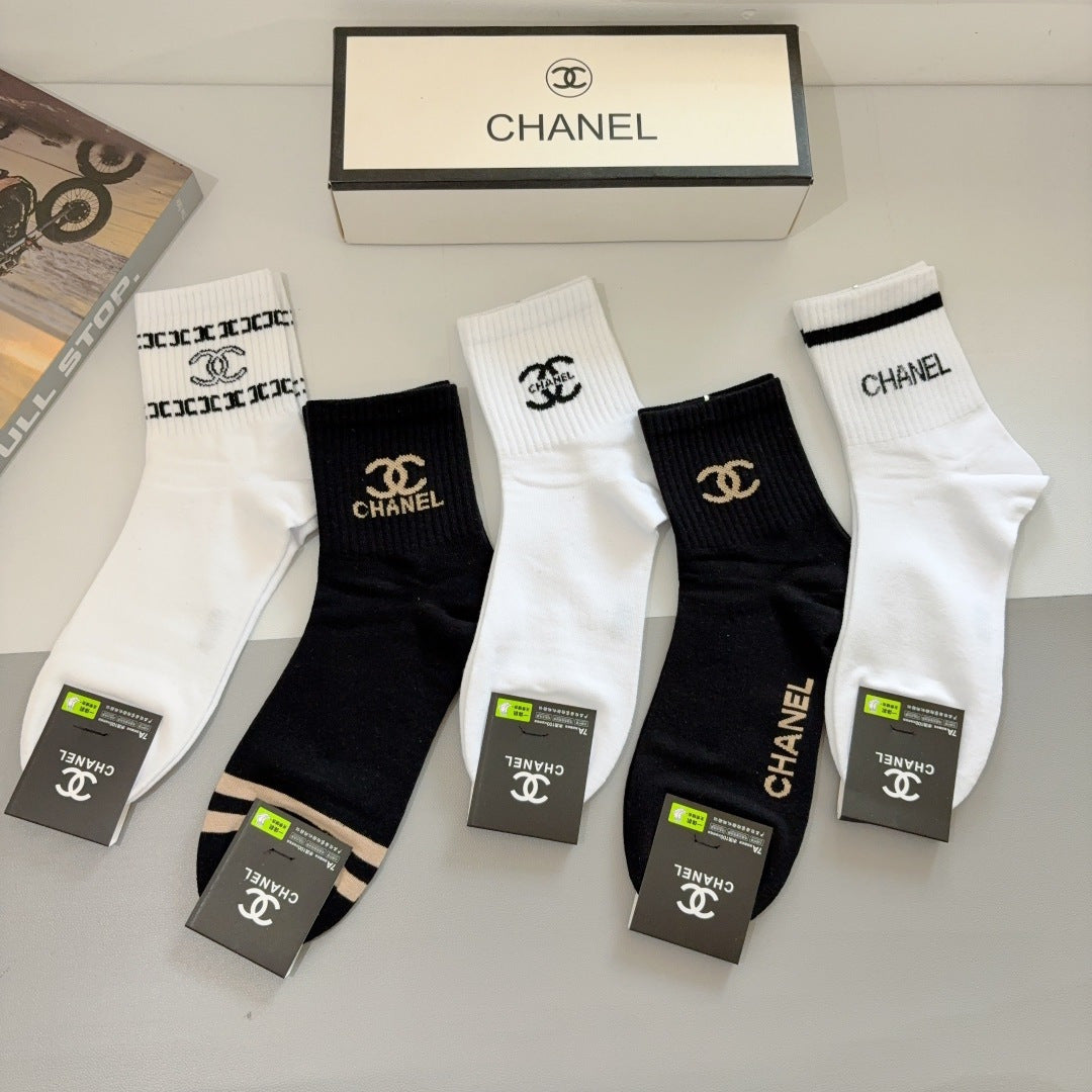 CHANEL Men's Classic Mid-Calf Cotton Socks - 5 Pairs