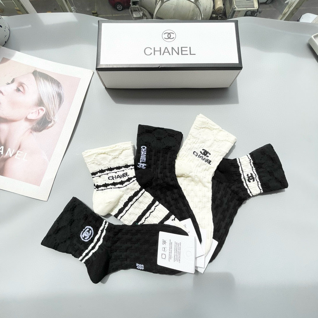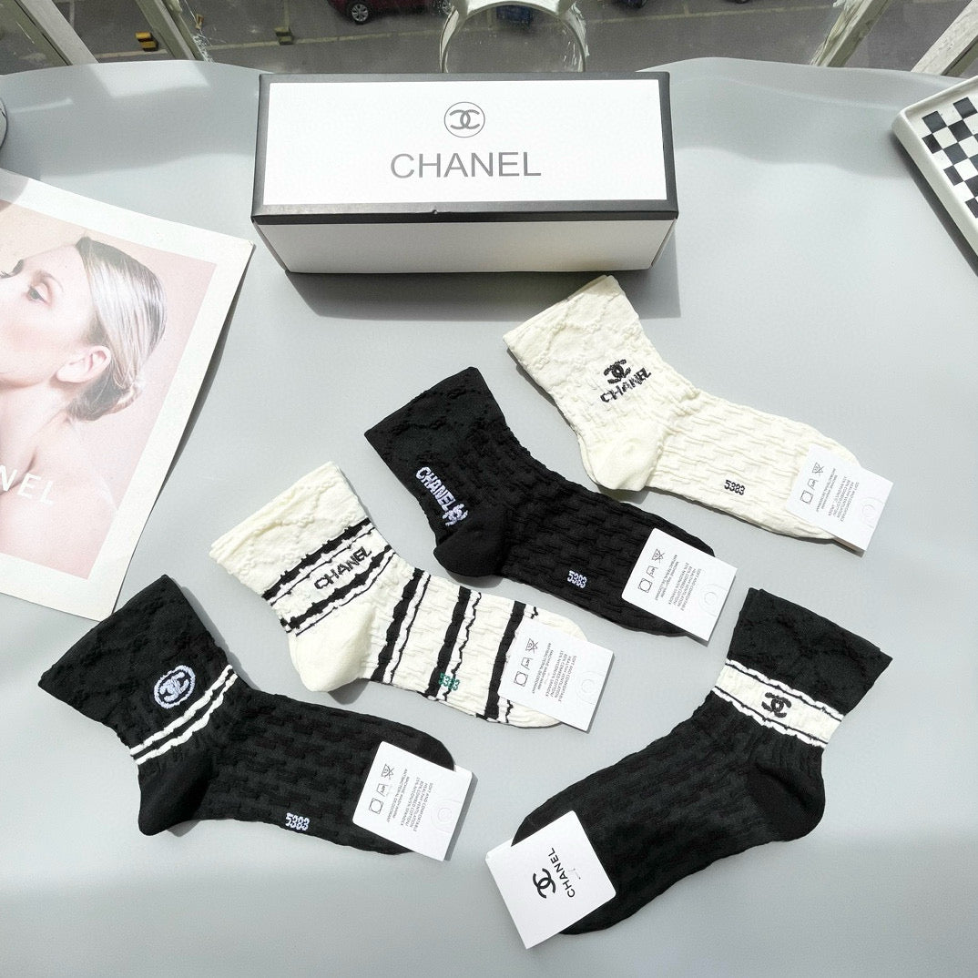 Chanel Mid-Calf Fashion Socks - Set of 5 Pairs