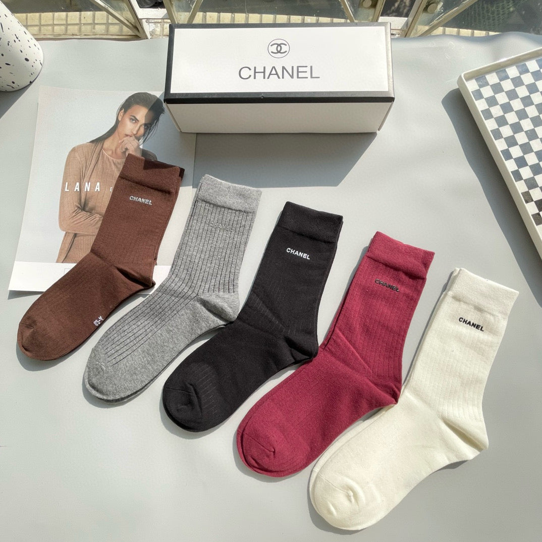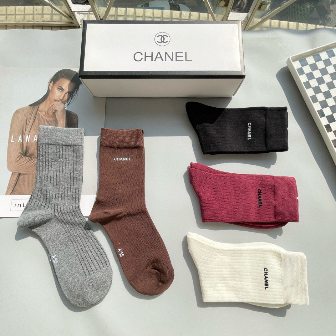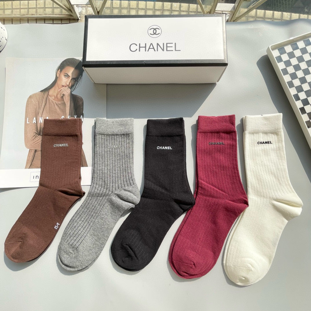 CHANEL Mid-Calf Socks - Stylish Five-Pair Box Set