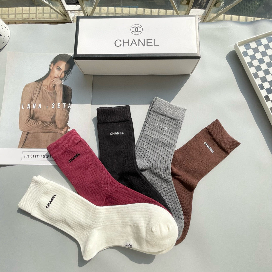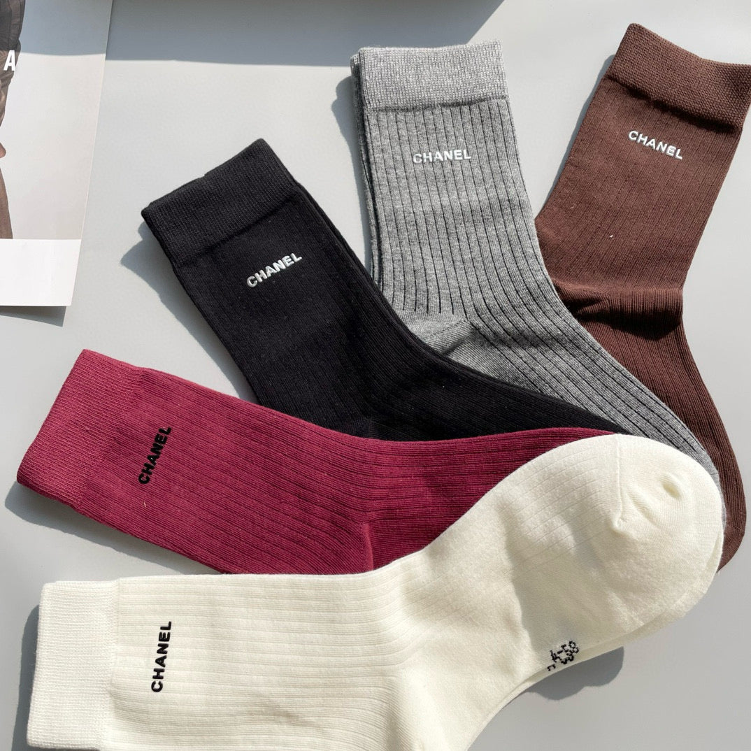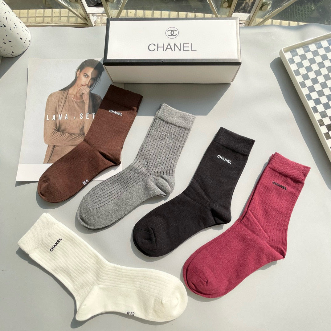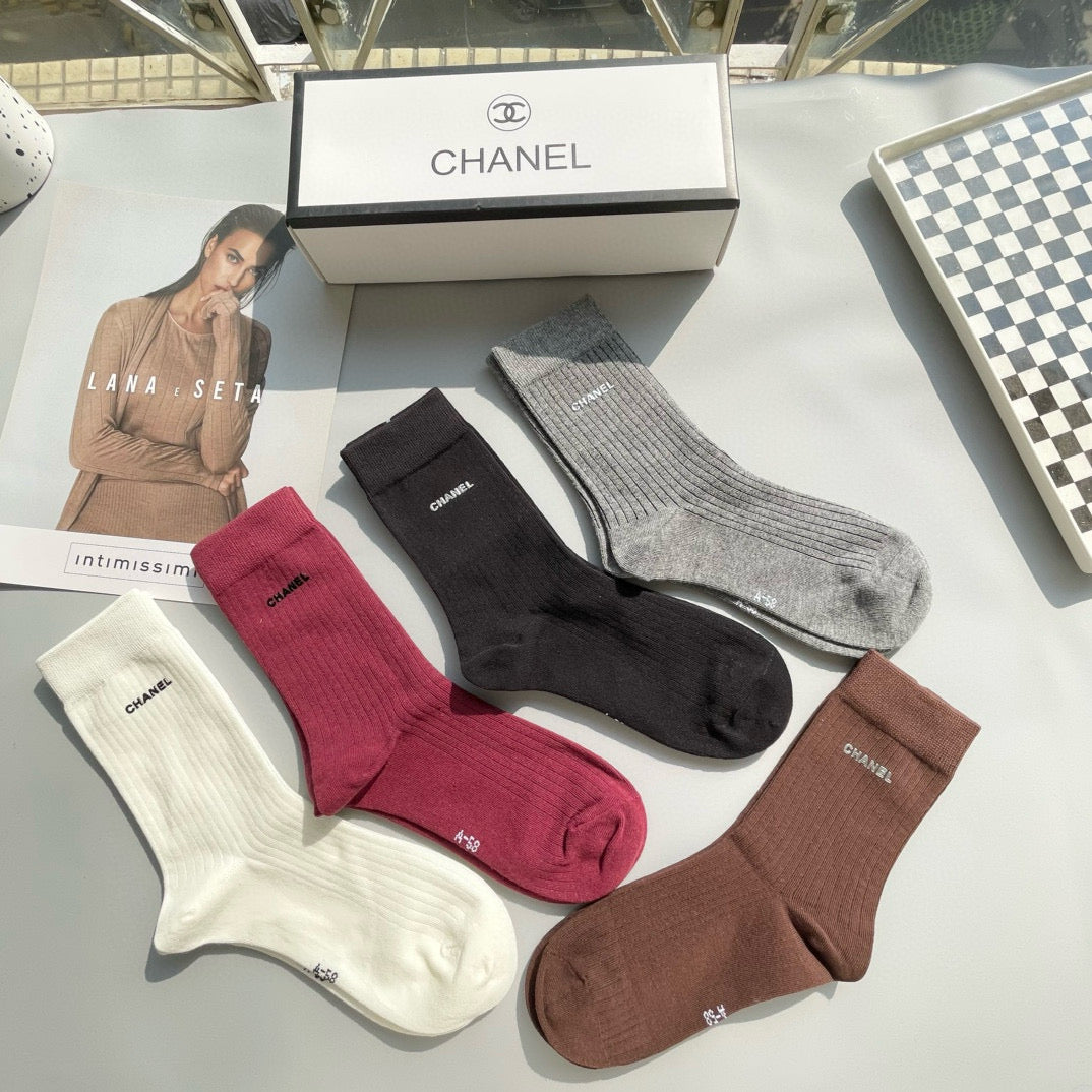 CHANEL Mid-Calf Socks - Stylish Five-Pair Box Set