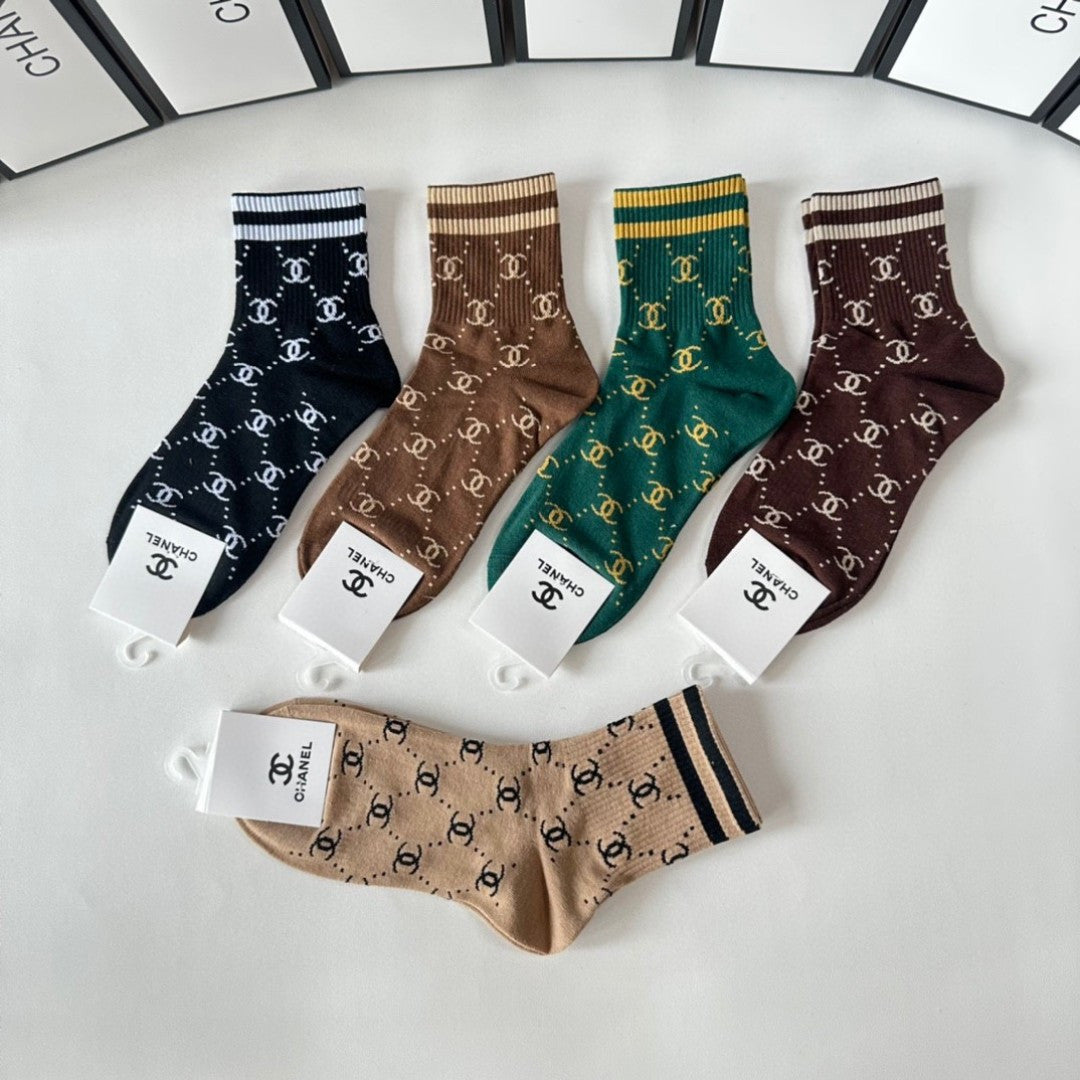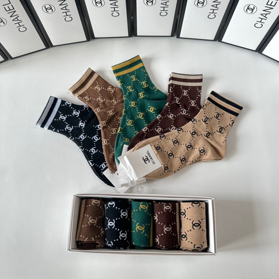 Chanel Mid-Length Pile Socks - 5 Pairs Gift Set