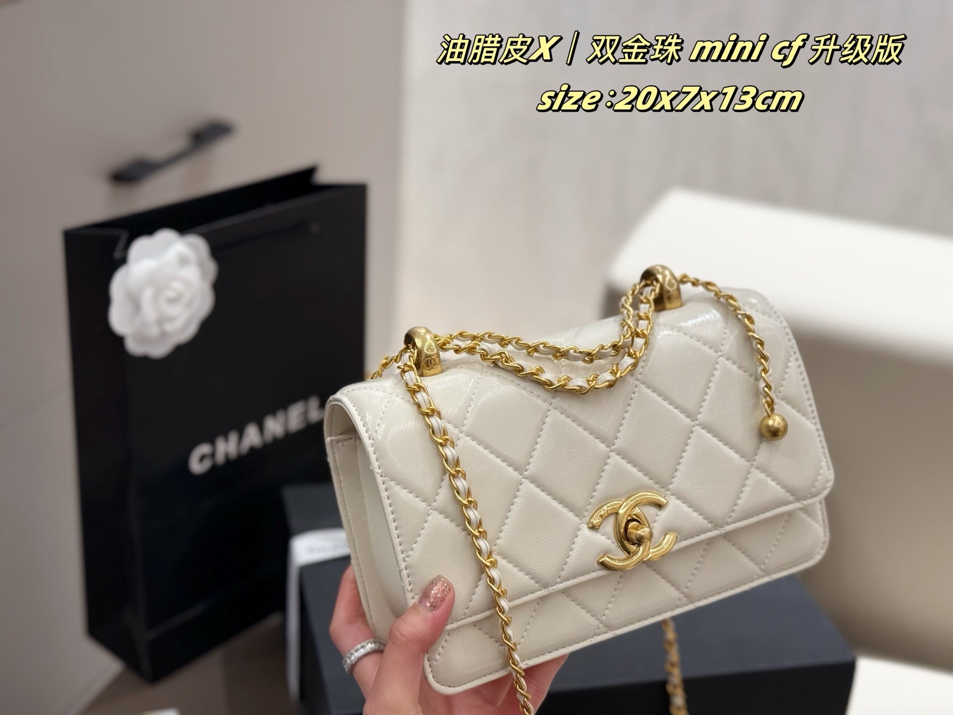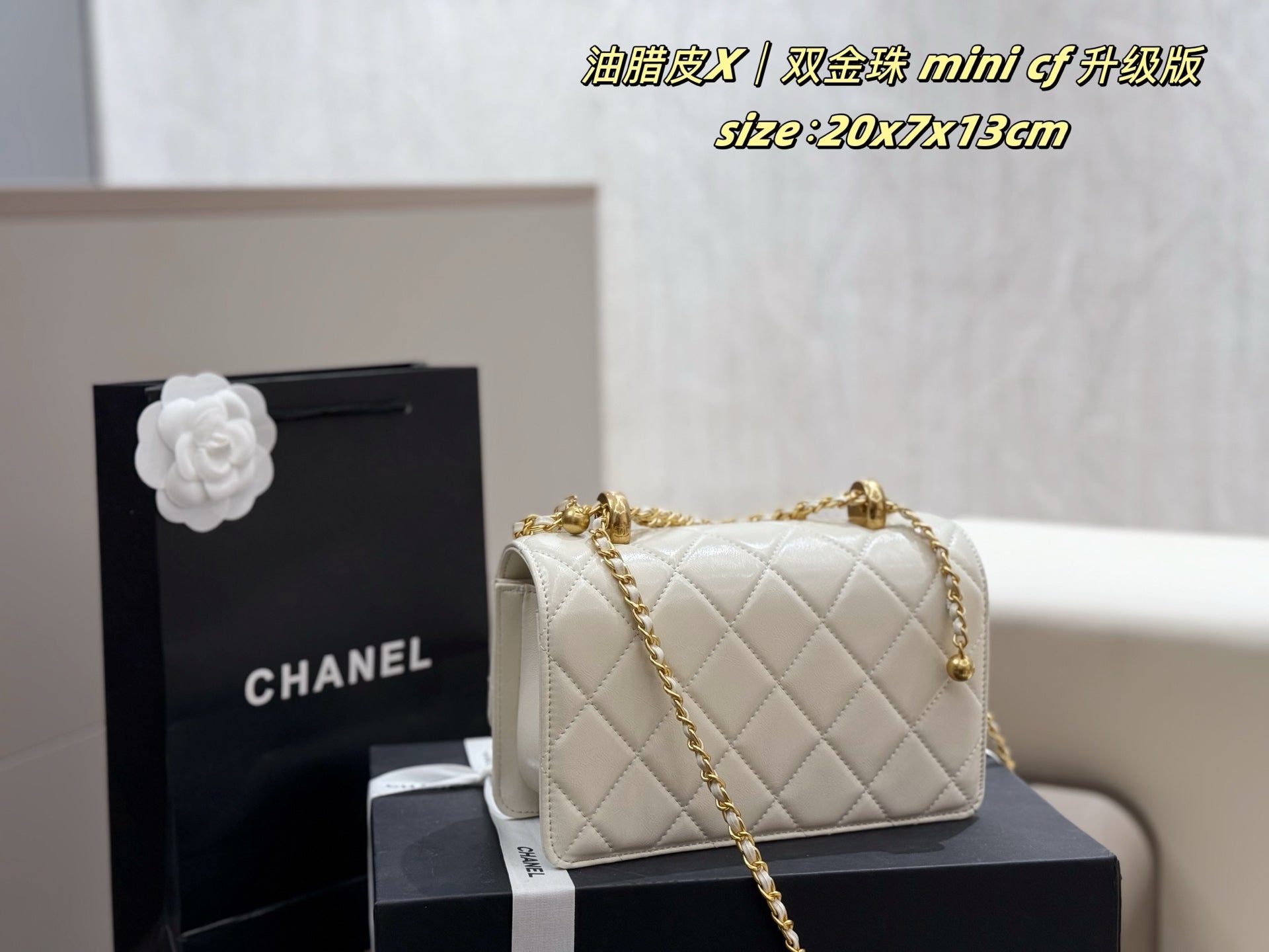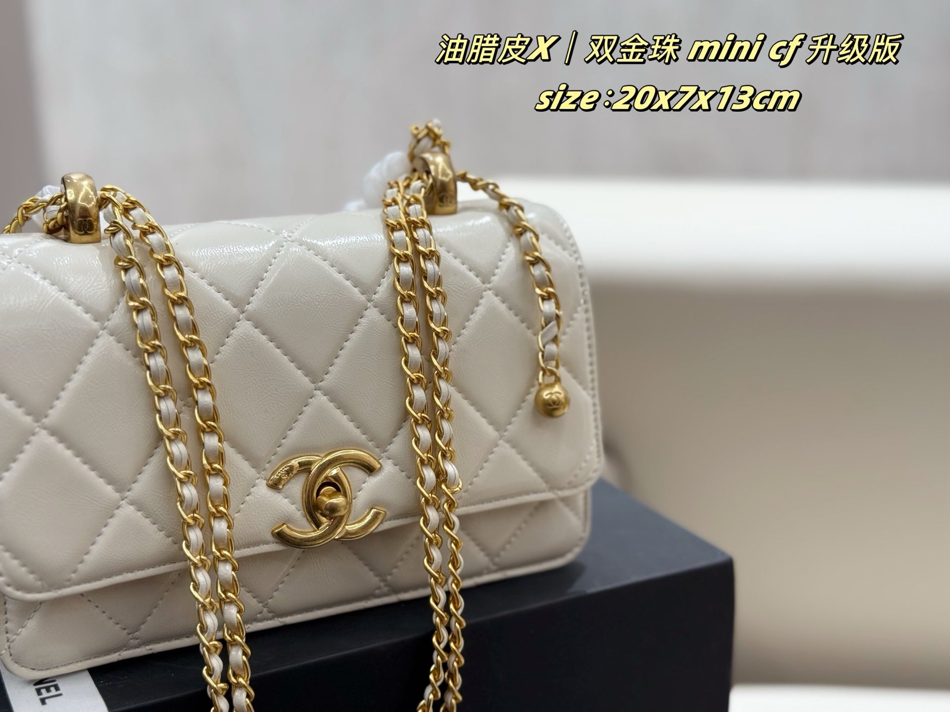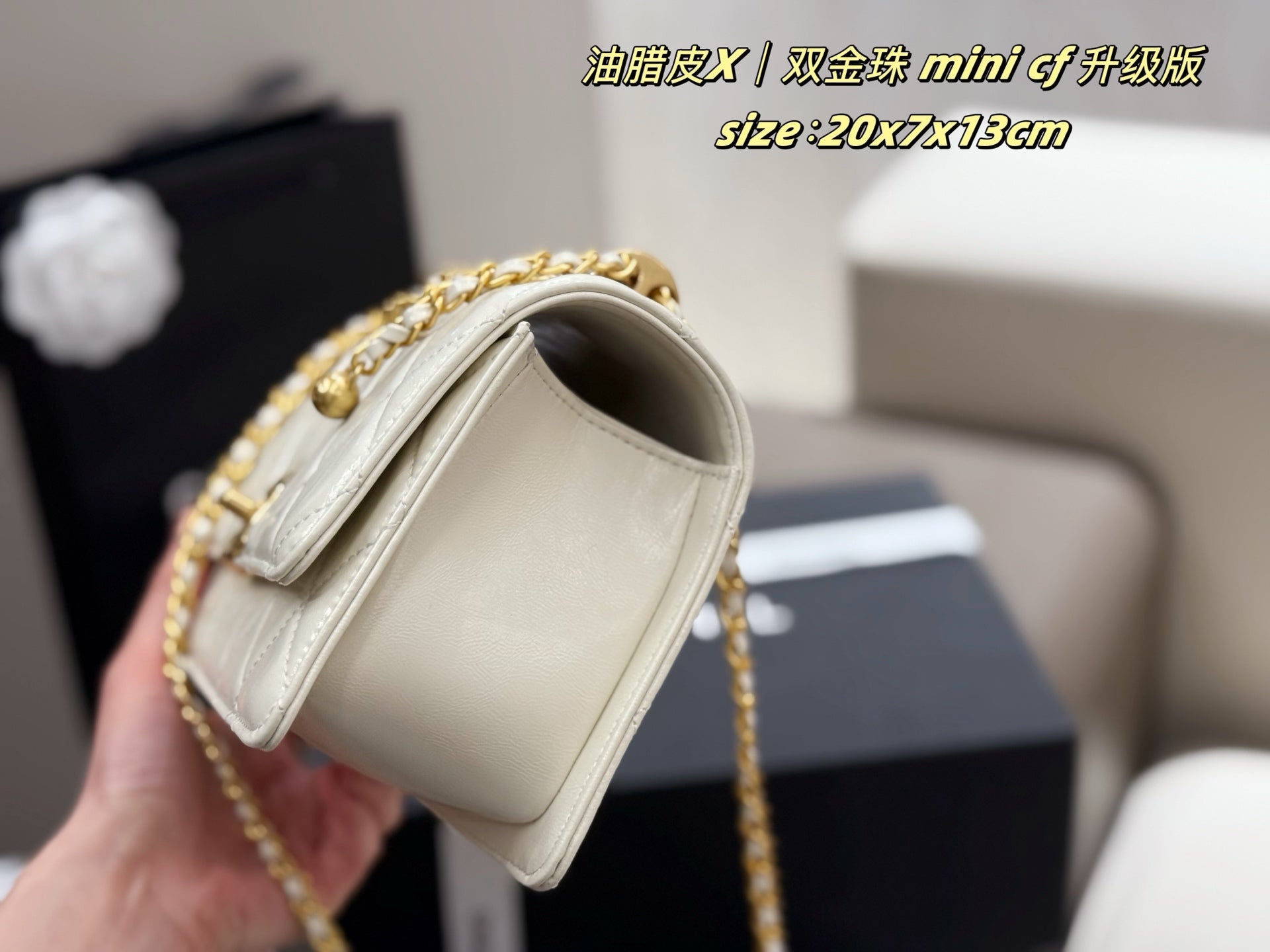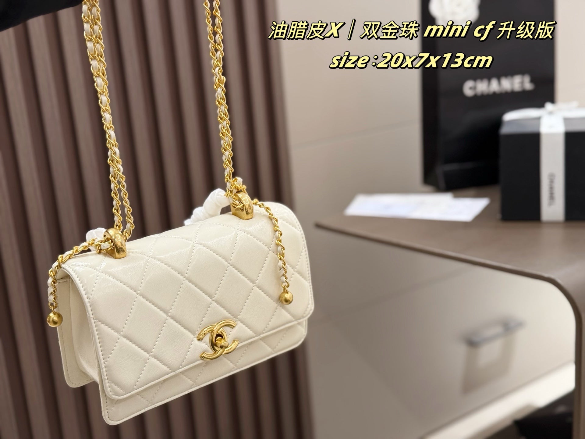 Chanel Mini CF Bag with Double Gold Beads - Elegant and Versatile