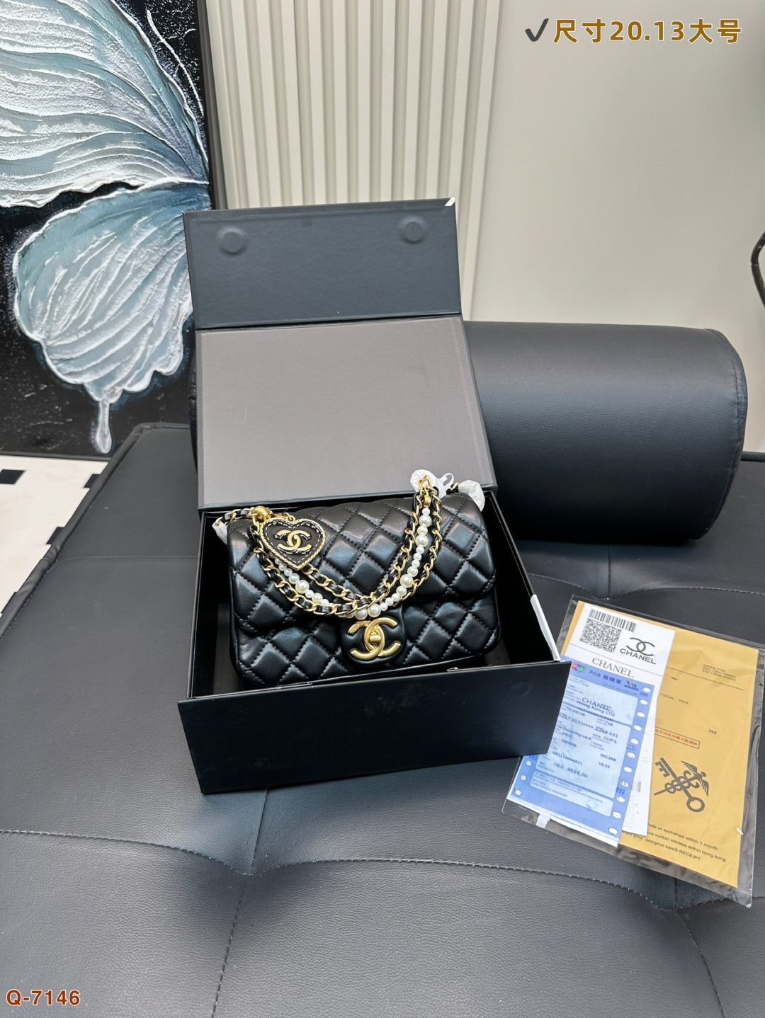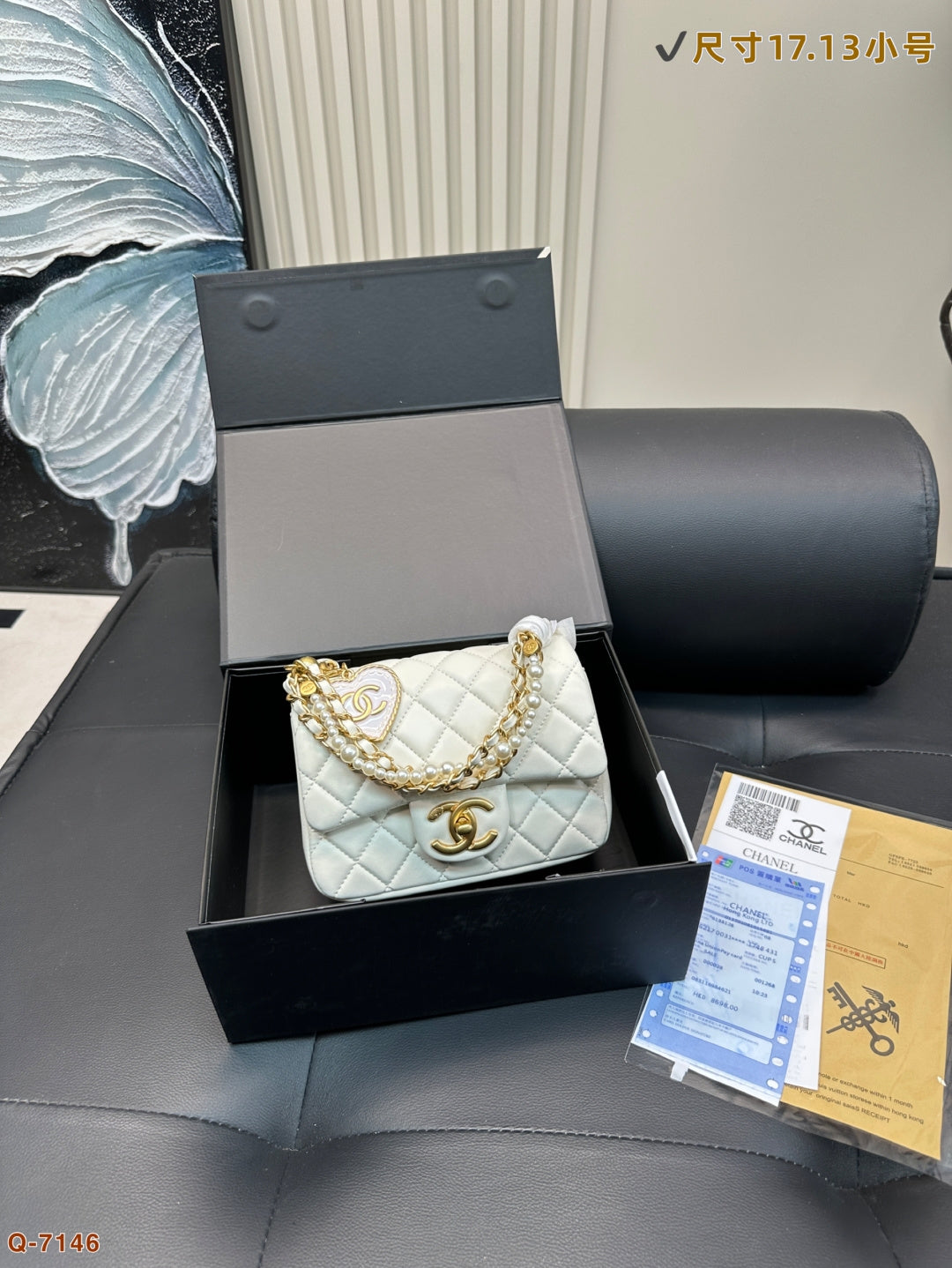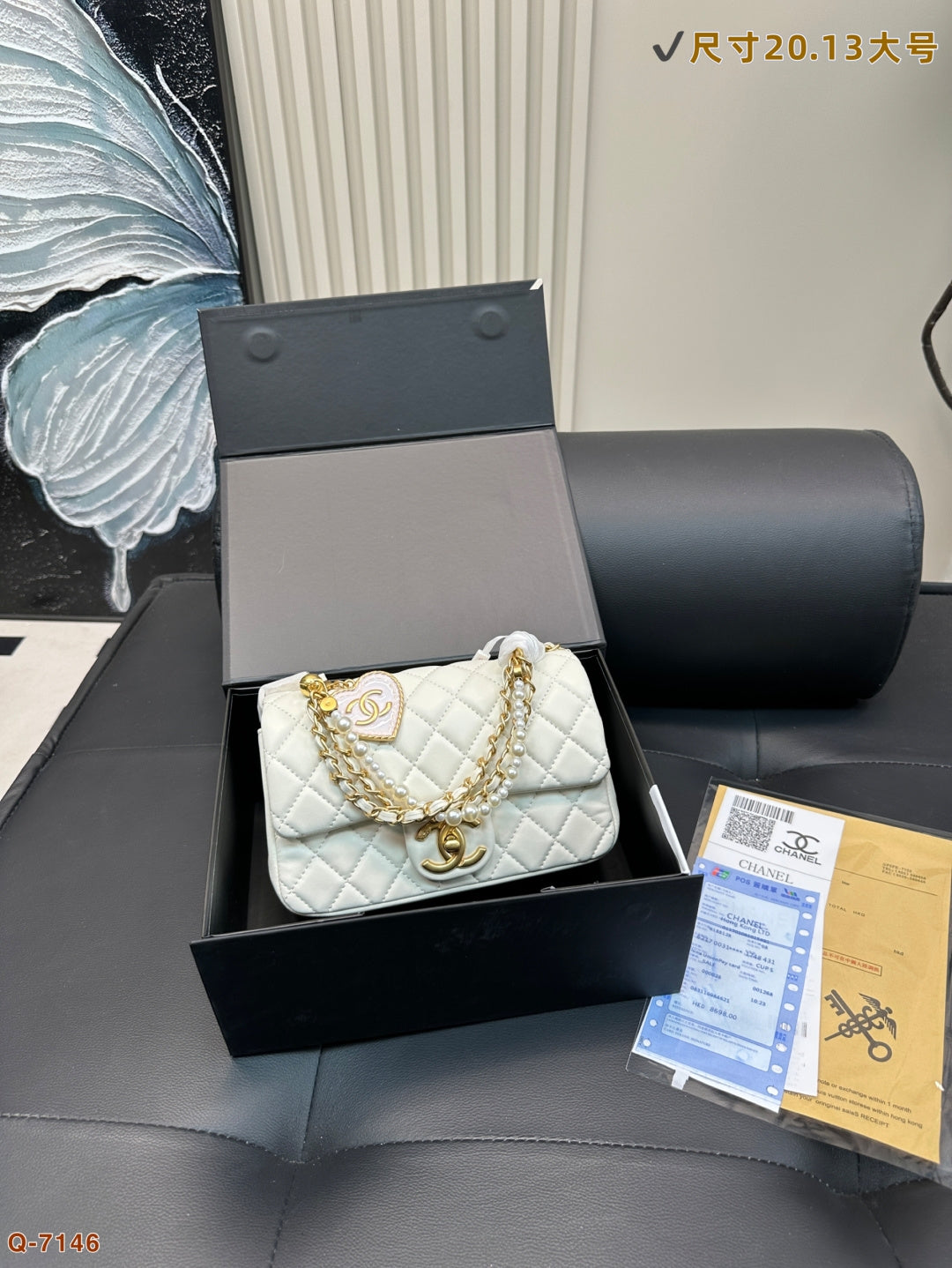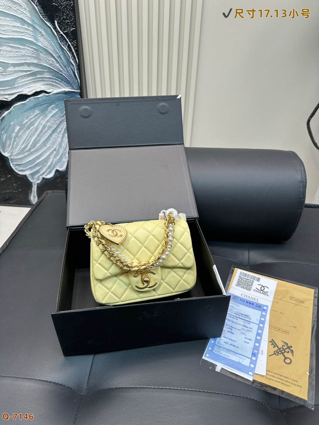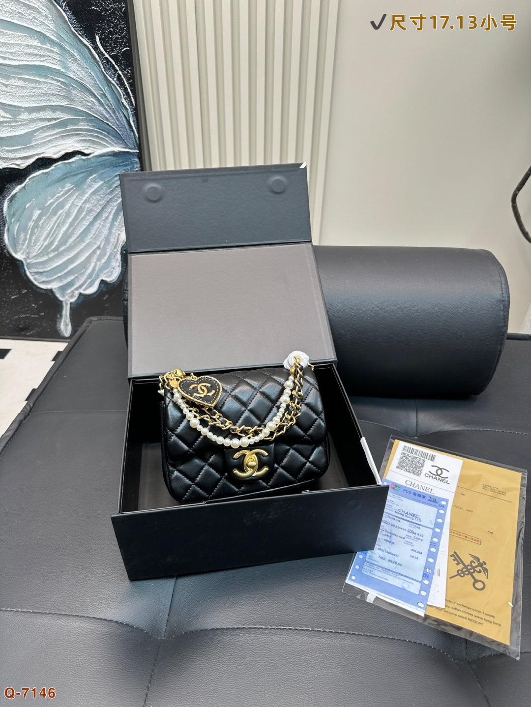 Elevate your style with the Chanel Pearl Square Fat Chain Bag. This charming handbag features a unique pearl embellishment on the chain, adding a playful yet elegant touch to any outfit. Compact and chic, it’s the perfect accessory for those who appreciate refined aesthetics. Measuring 17.13 cm by 20.16 cm, this bag is a must-have for fashion enthusiasts. Ideal for any occasion, it combines functionality with a cute, sophisticated design. Secure yours today!