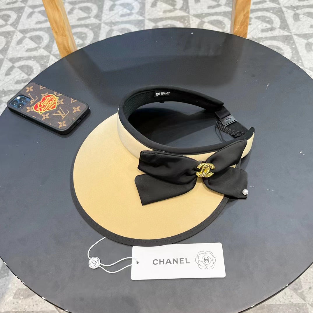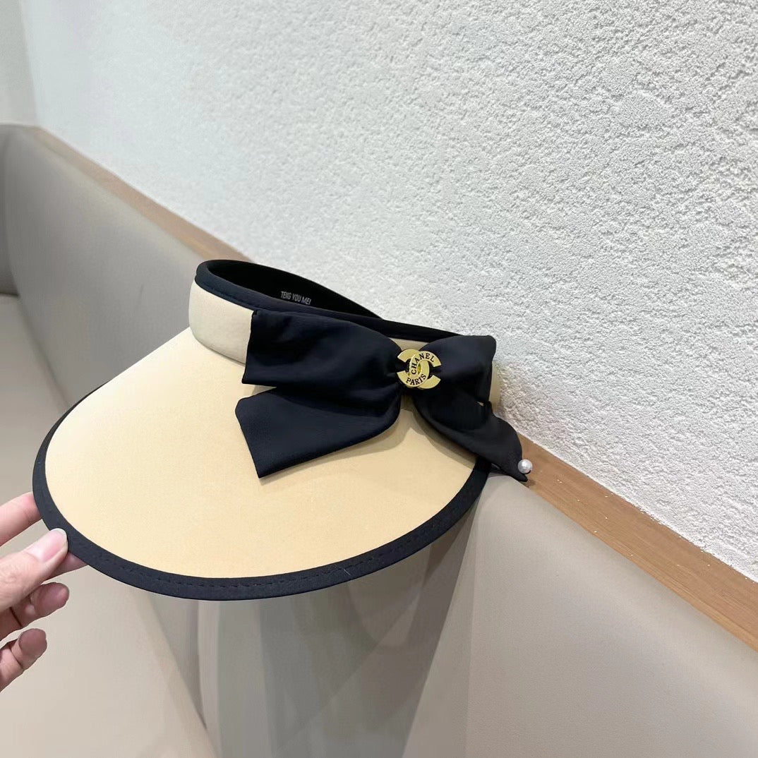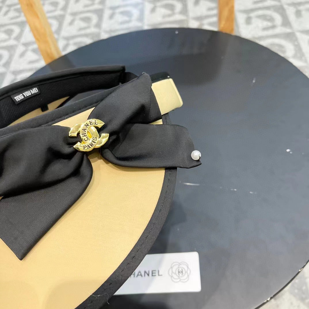 Chanel Women's 2024 Summer Anti-UV Sun Hat with Bow & Wide Brim