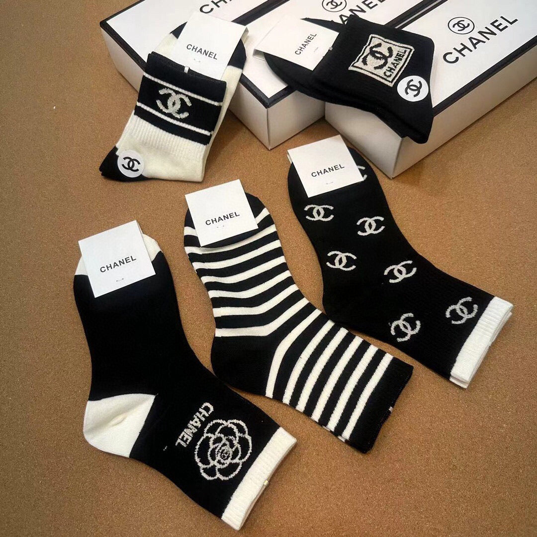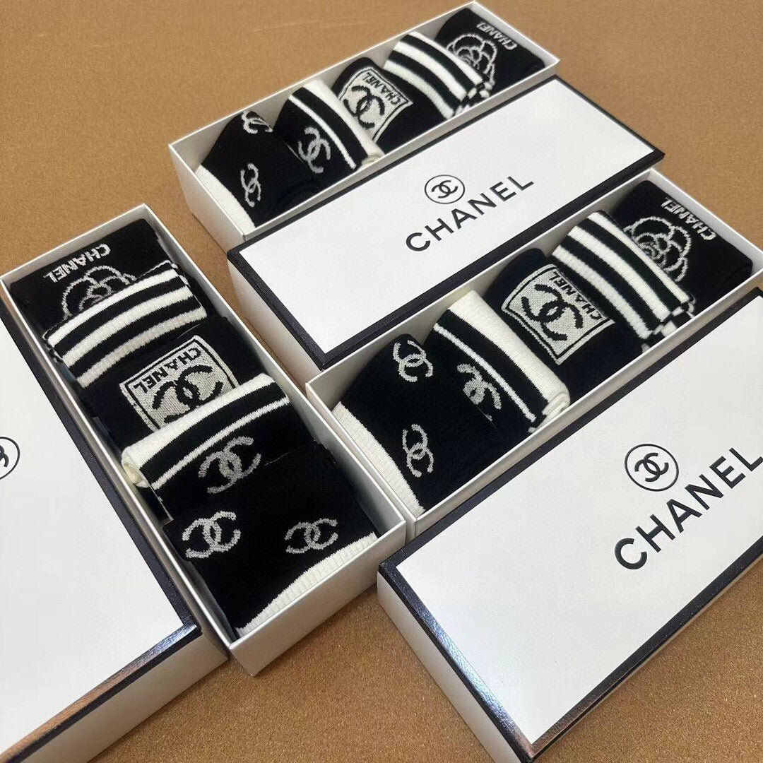 CHANEL Women's Cotton Logo Socks - 5 Pairs Gift Box