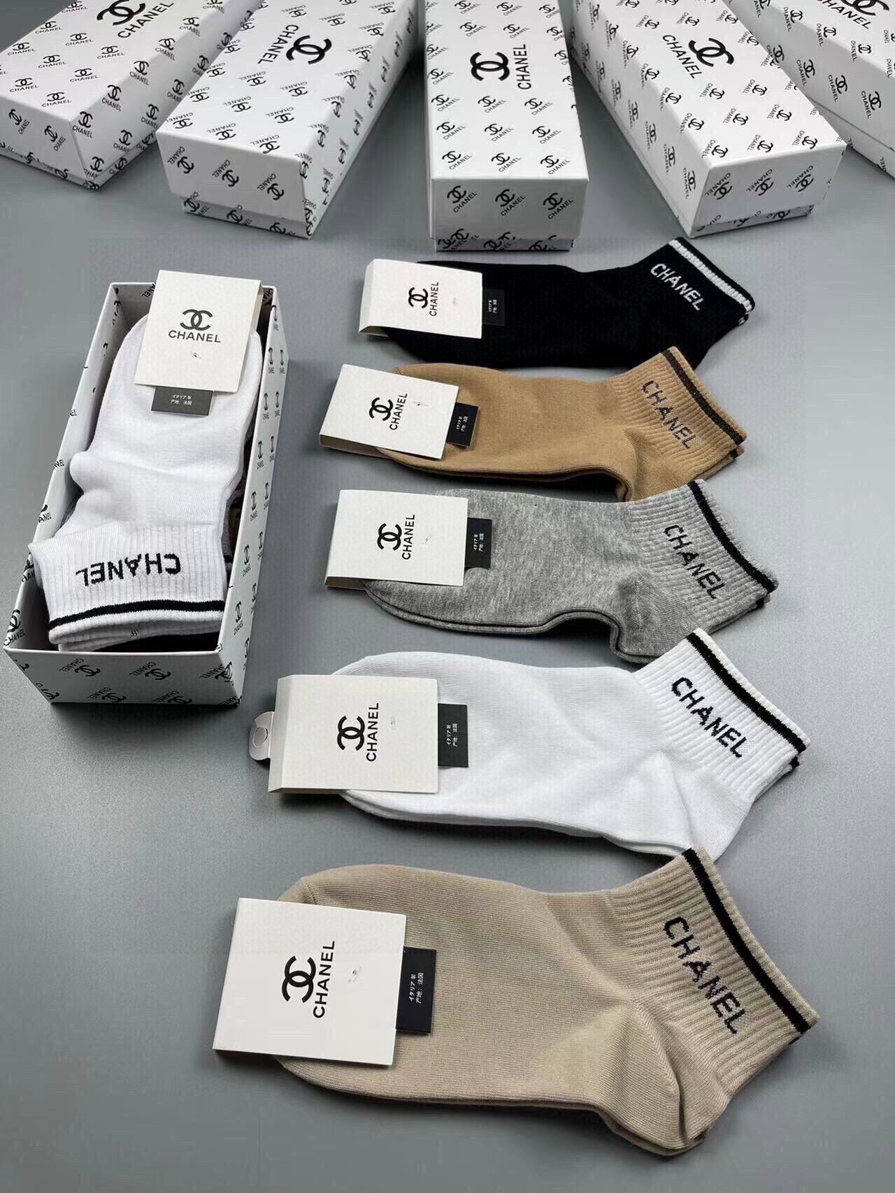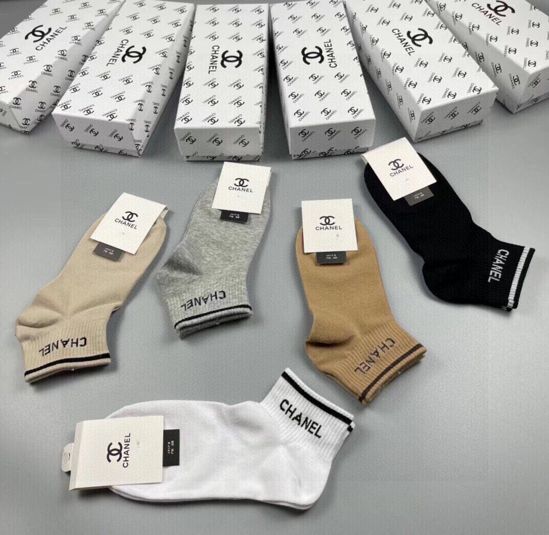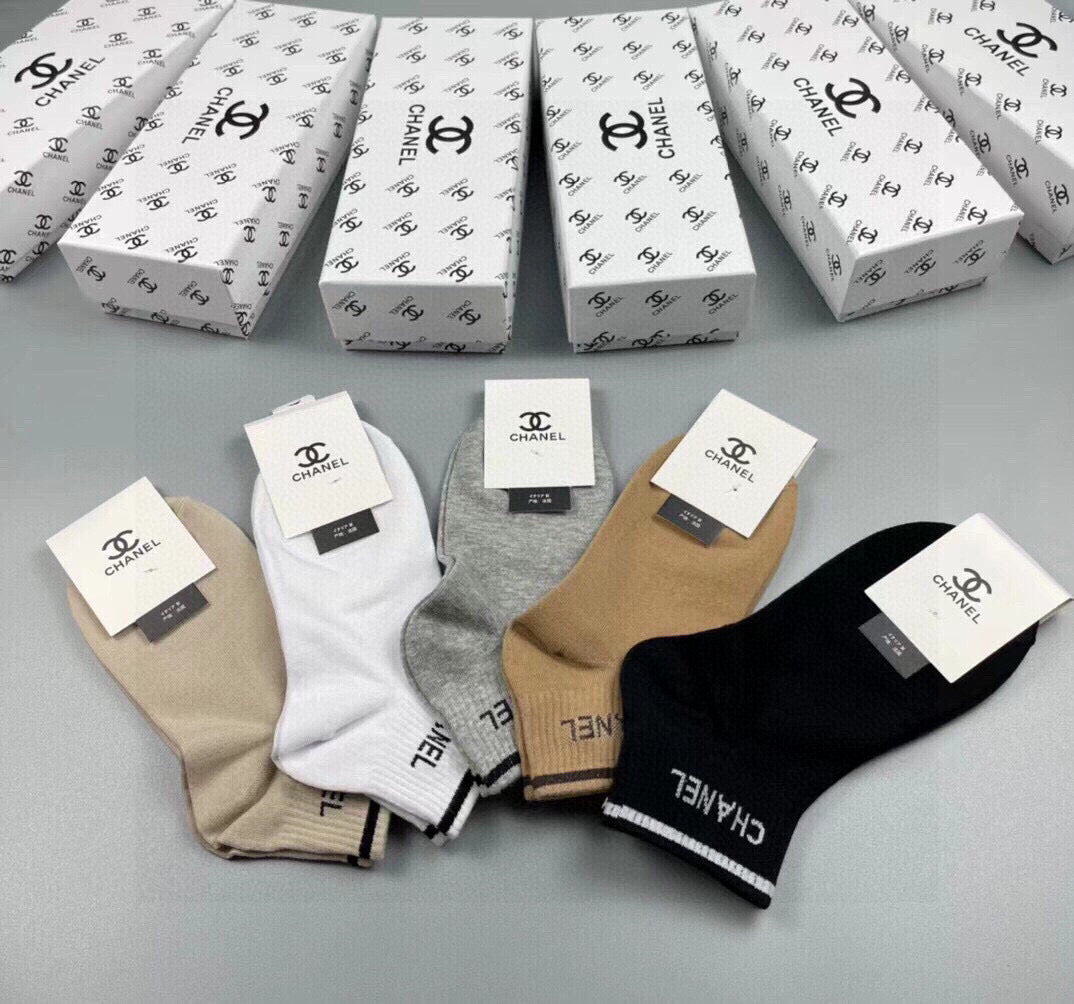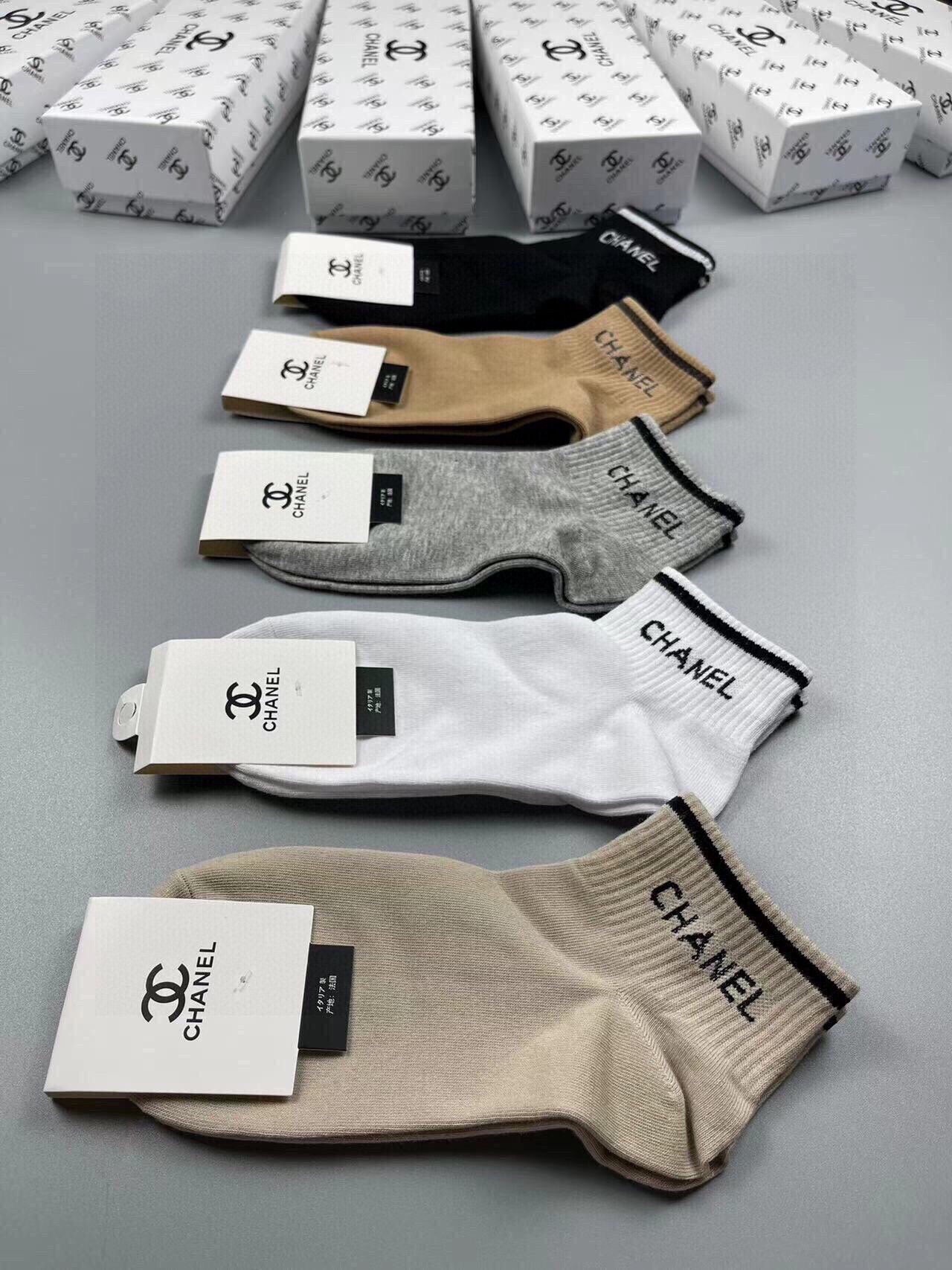 CHANEL Women's Cotton Socks - 5 Pairs in Gift Box
