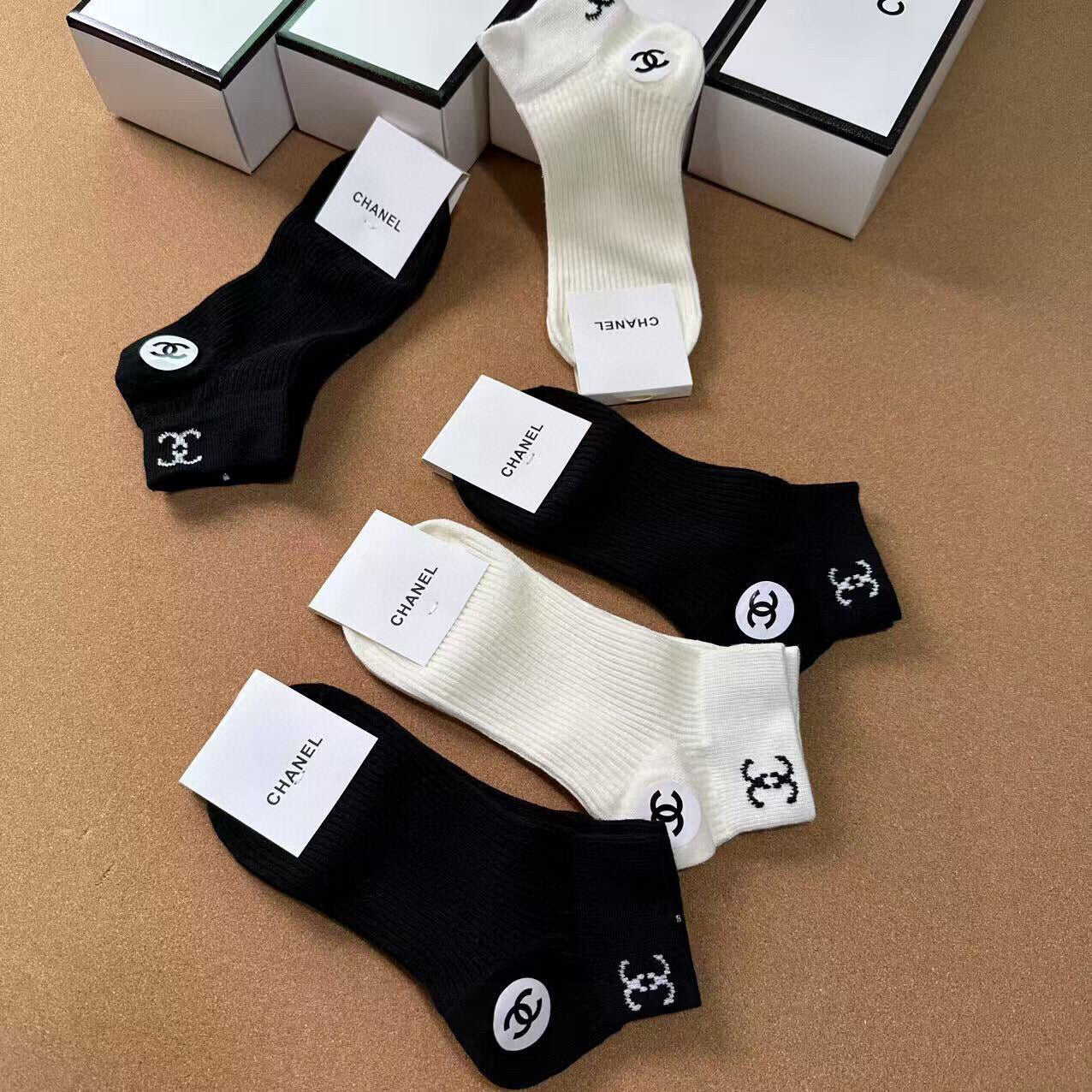 CHANEL Women's Cotton Socks - 5 Pairs with Iconic Double C Logo