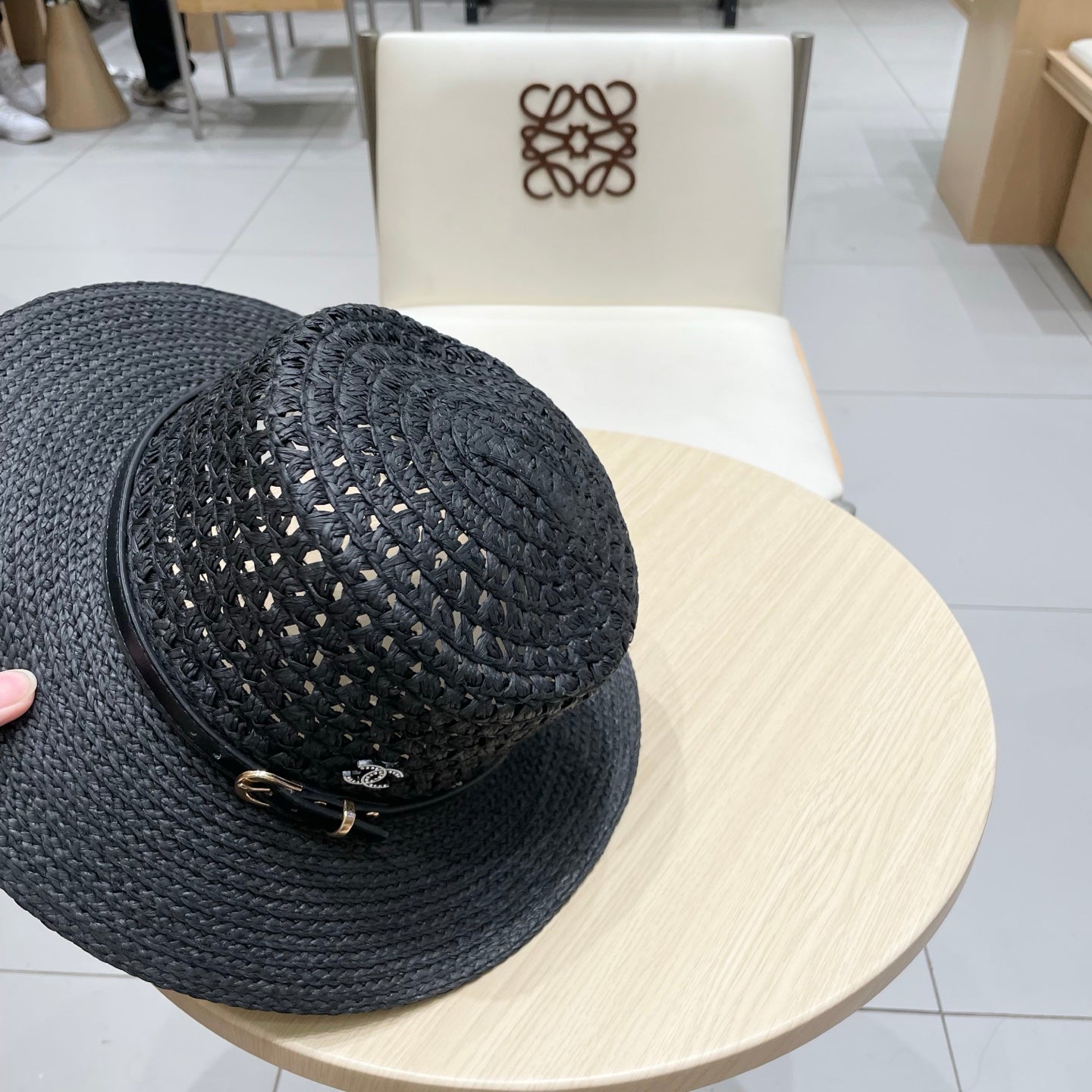 Chanel Women's Hollow Woven Straw Hat - Summer 2025