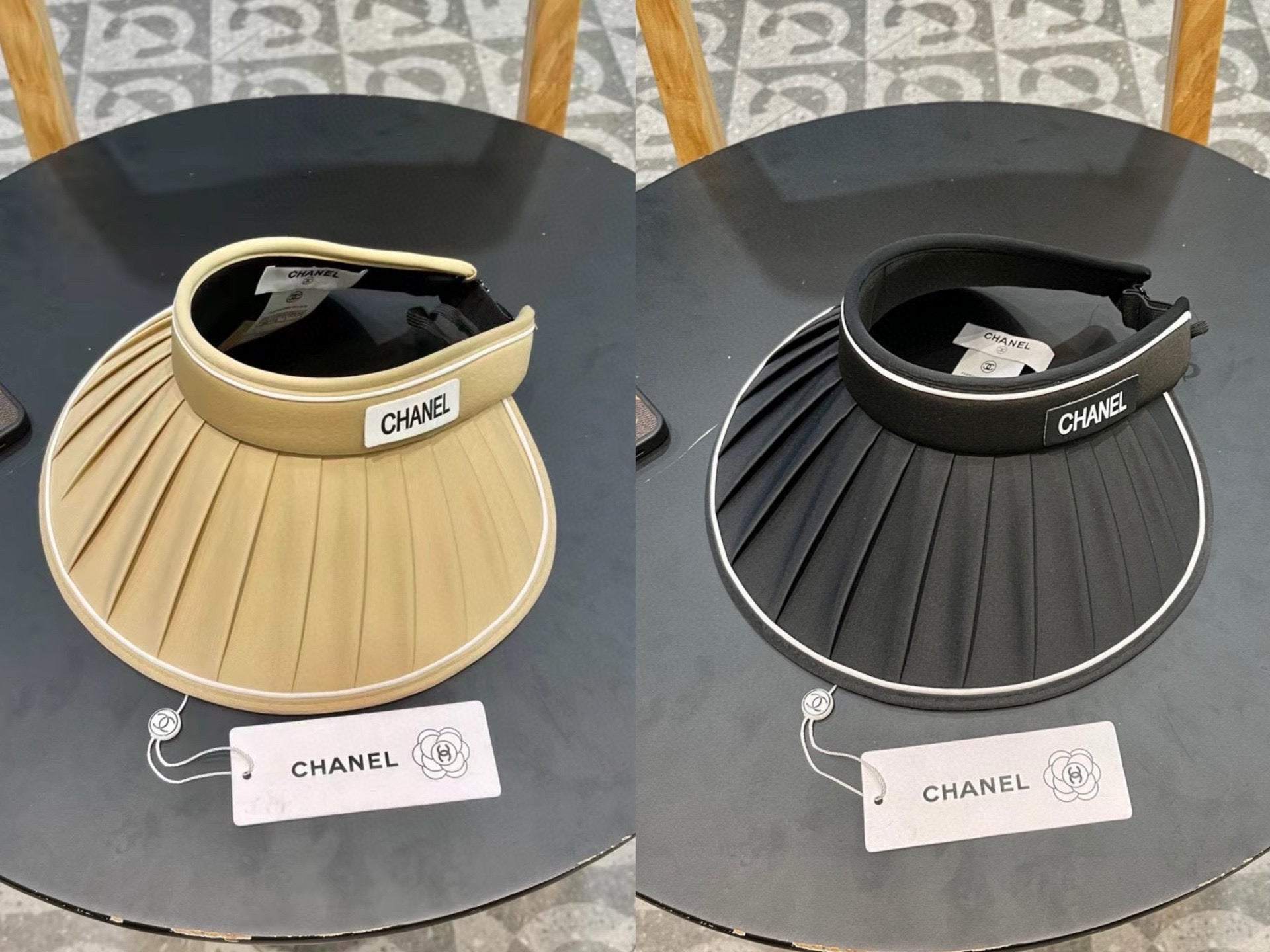 Stay chic and protected this summer with the Chanel Women's Sun Hat. Designed with a fashionable big brim, this hat offers superior UV protection while keeping your face cool and covered. Its innovative empty top shell allows for breathability without compromising style. Perfect for beach outings or casual strolls, this hat combines practicality with elegance, ensuring you look your best while staying safe from the sun. Elevate your summer wardrobe with this must-have accessory!