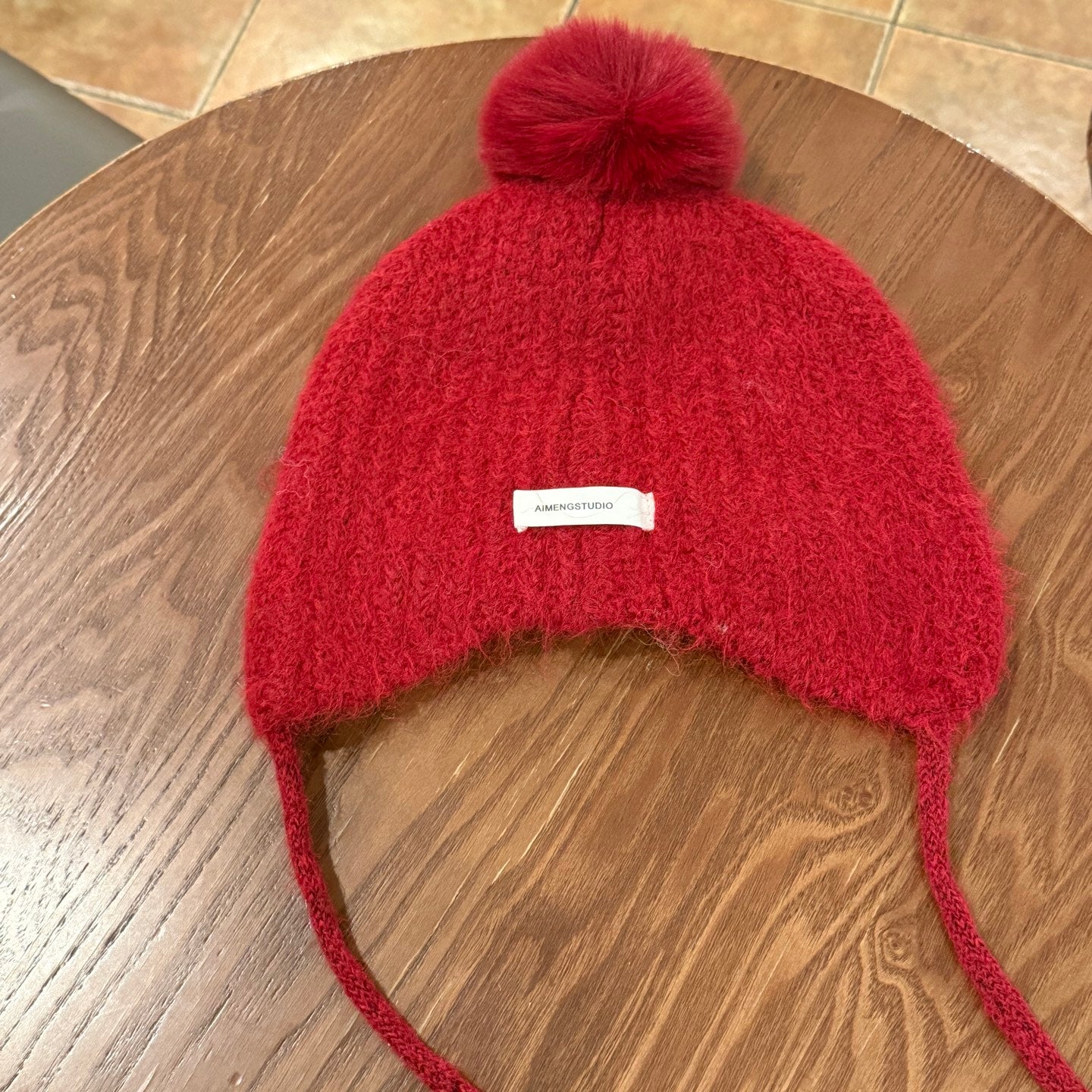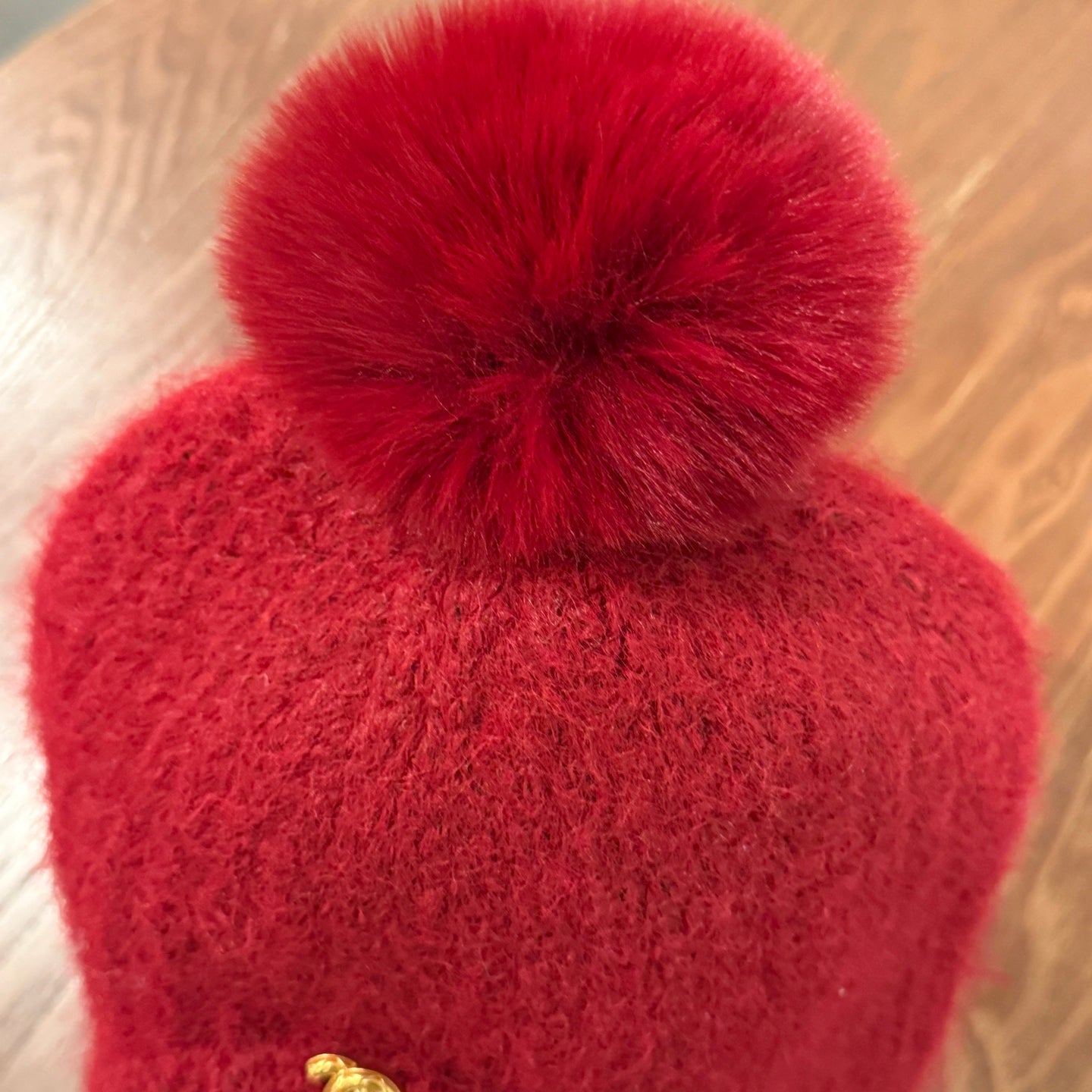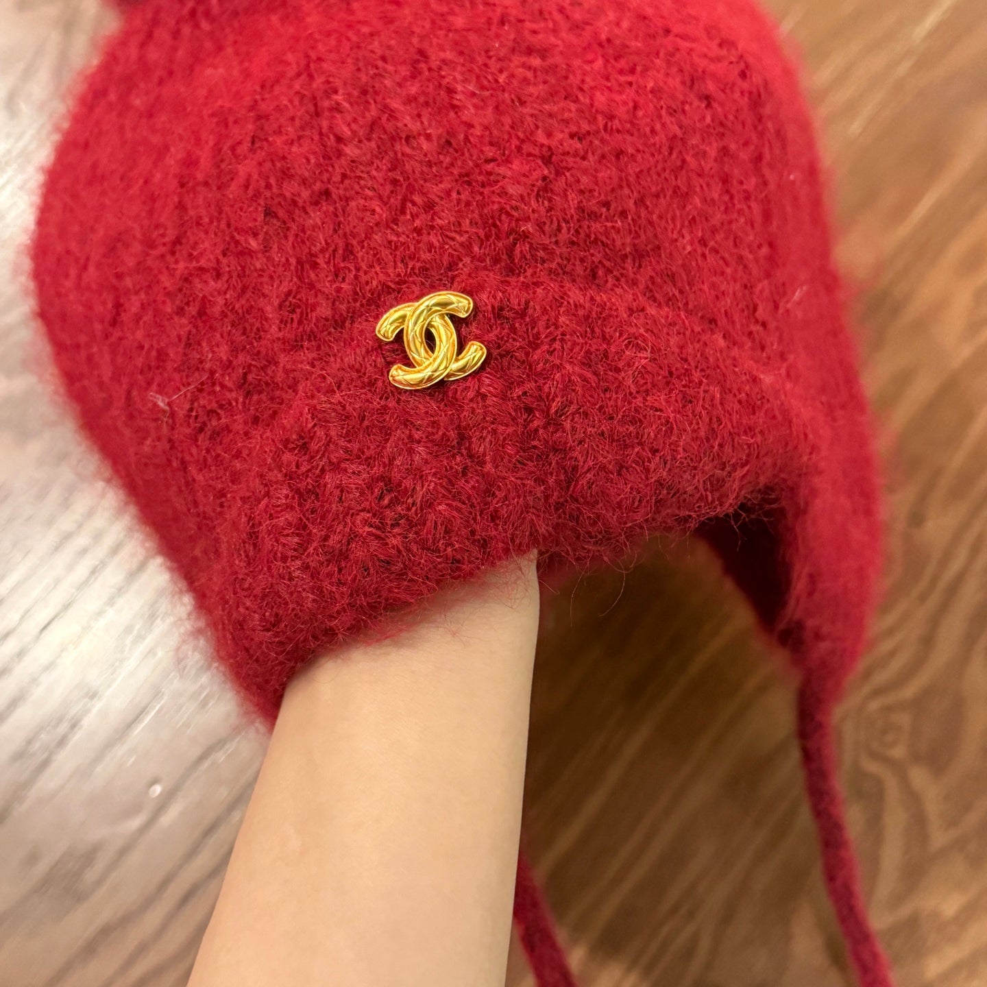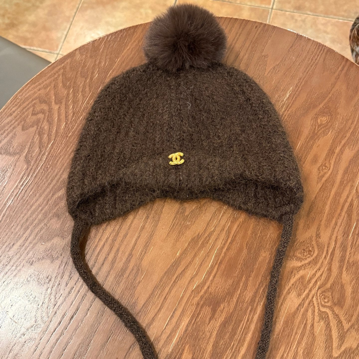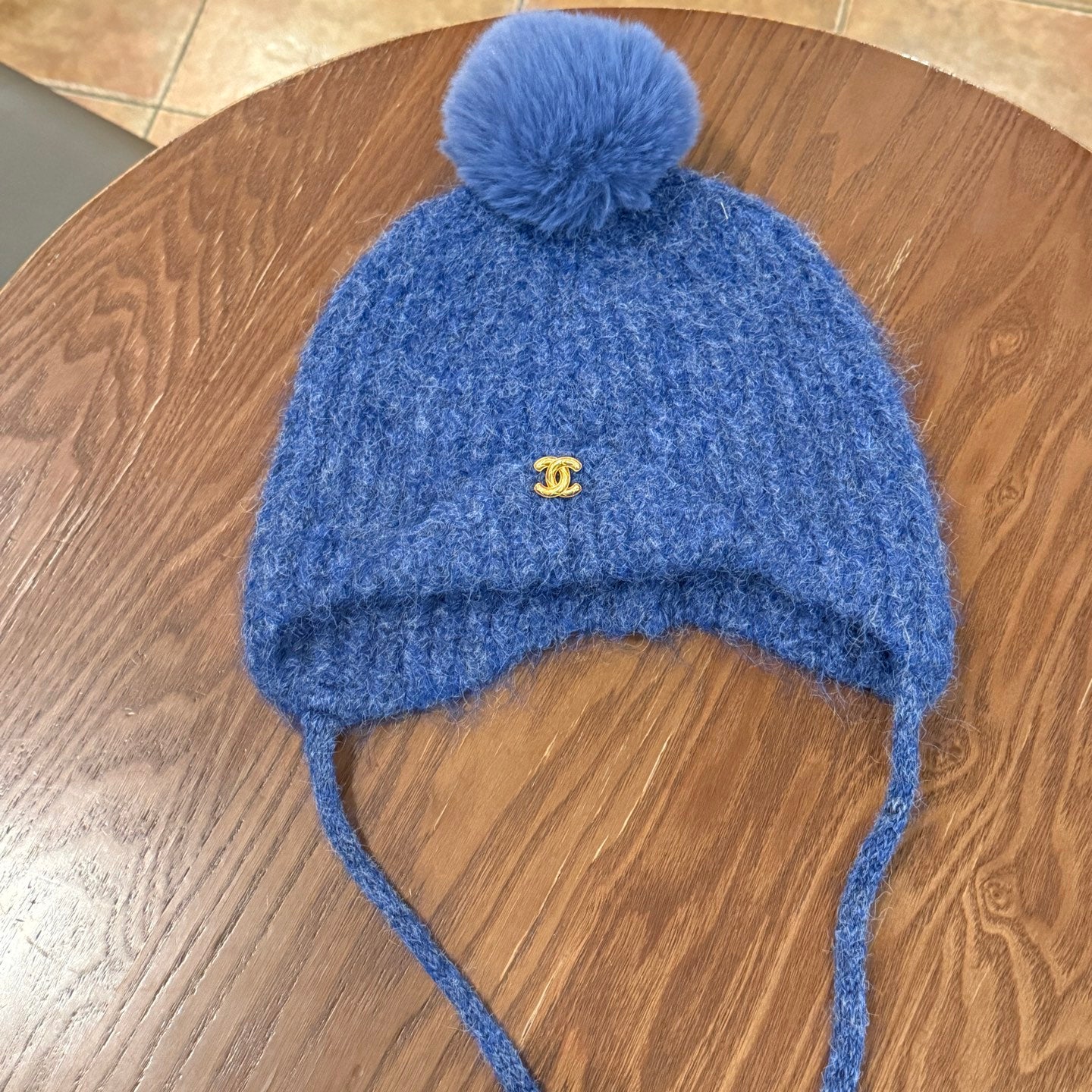 Chic Chanel Knitted Wool Ear Protection Hat with Fur Pom Pom
