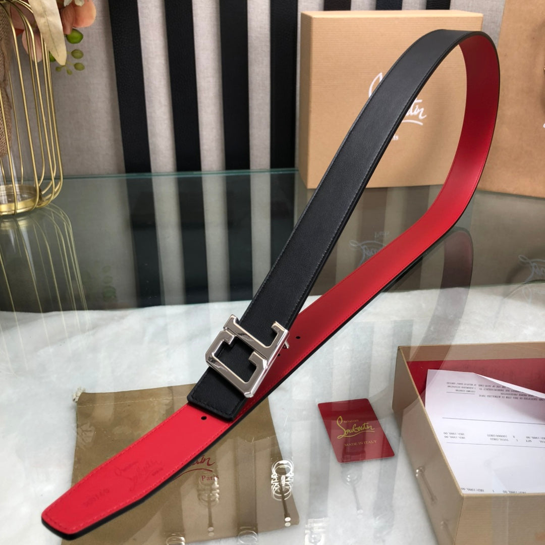 Christian Louboutin Men's Black Double-Sided Cowhide Belt with Signature Logo Buckle