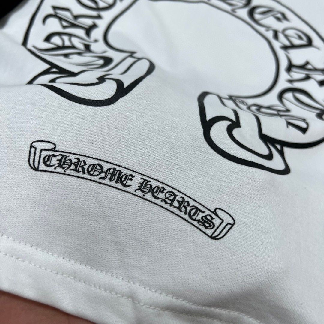 Available in white and a range of sizes (S, M, L, XL), this custom-made T-shirt is perfect for those who appreciate high-quality craftsmanship and timeless style. Make a statement with Chrome Hearts today!