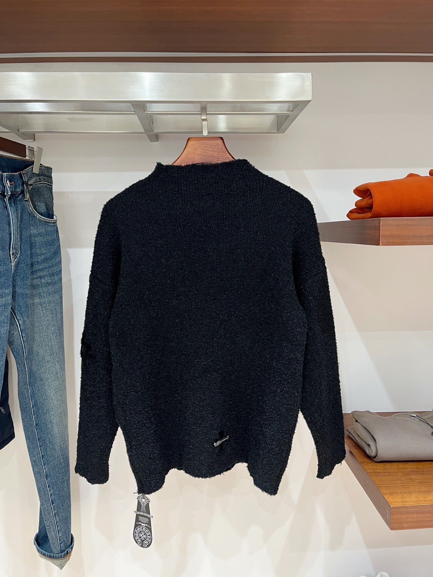 Elevate your autumn and winter wardrobe with the Chrome Hearts Cross Knitted Jacquard Appliqué Embroidered Round Neck Pullover. Crafted from a luxurious blend featuring 20% wool, this pullover utilizes custom-dyed and spun yarn, ensuring a distinctive quality and feel. Designed with attention to detail, this piece offers a soft and delicate texture that drapes beautifully without clinging to the body. Its loose fit provides both comfort and style, making it suitable for all. Available in sizes S, M, L, and XL for a versatile, unisex fit. Experience the perfect combination of fashion and functionality with this statement piece.