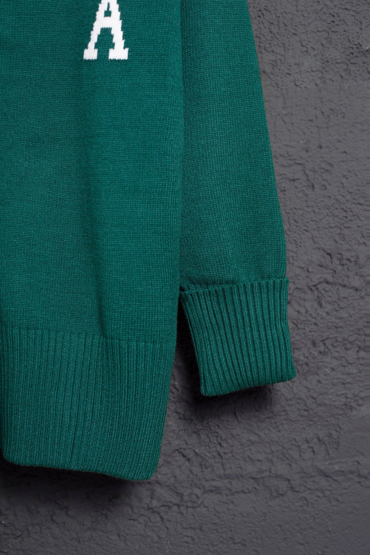 Classic Big Love Jacquard Cardigan Sweater - Dark Green