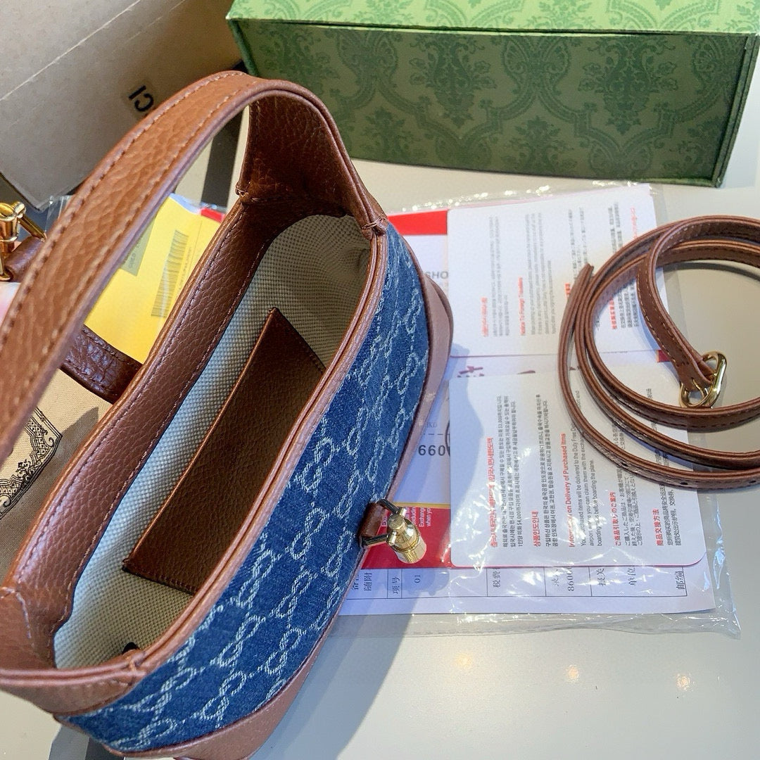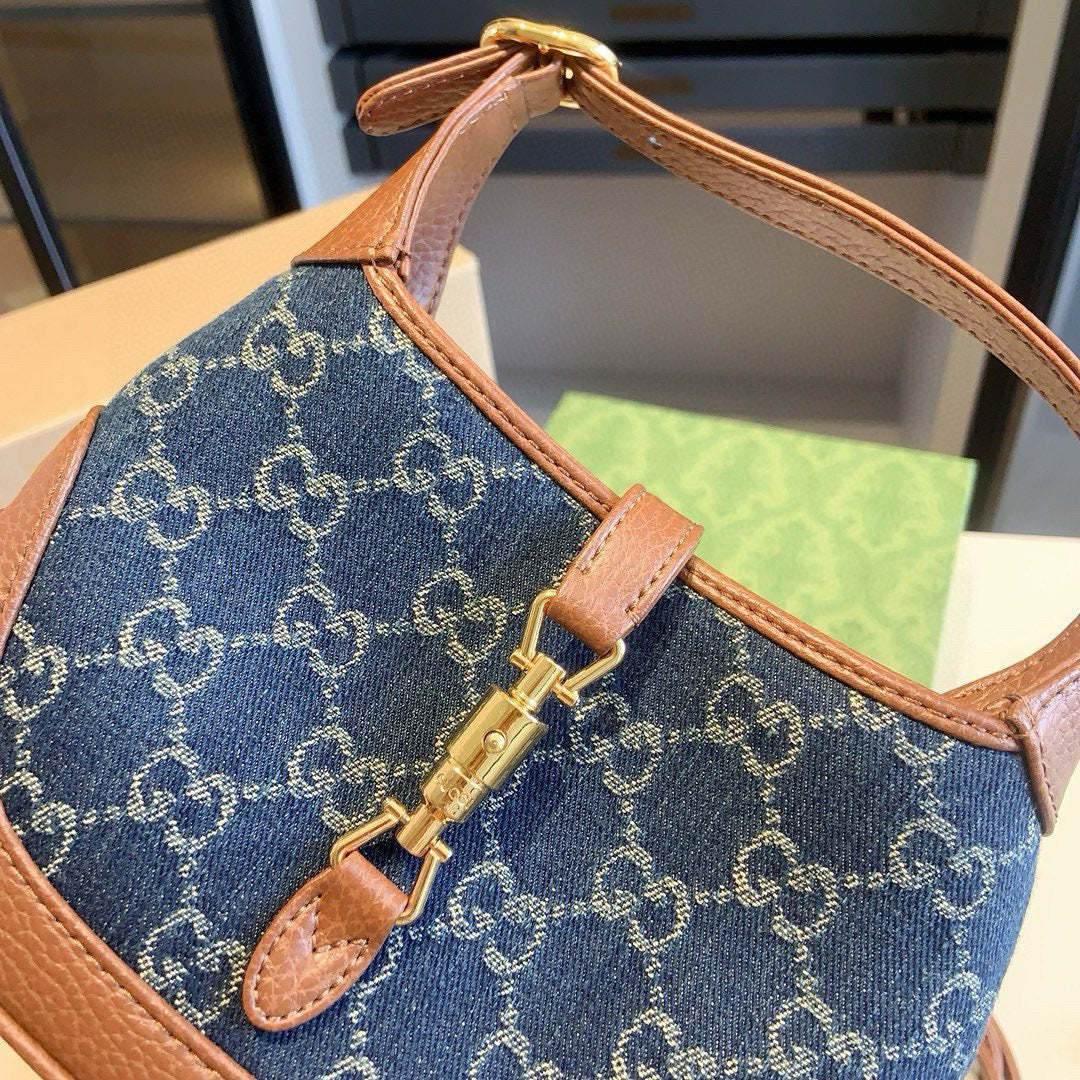 Introducing the Classic GUCCI 1961 Jackie Mini Shoulder Bag, a must-have for fashion enthusiasts. This stylish bag features a chic denim blue design and is crafted from high-quality imported denim and premium first-layer cowhide.