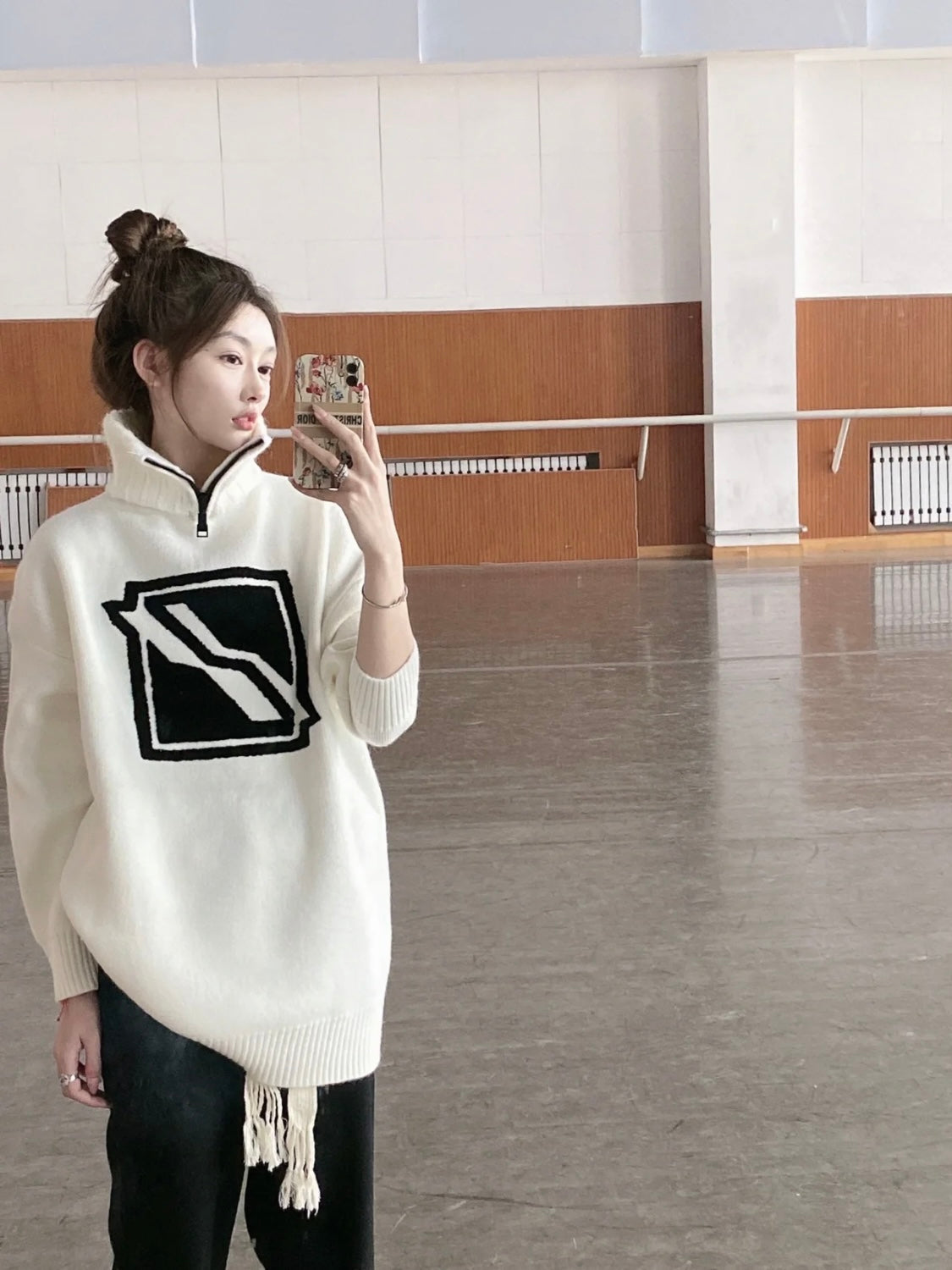 Discover timeless style with our Classic Half-Zip Turtleneck Sweater. Designed for comfort and versatility, this sweater features a stylish square LOGO and is crafted from high-quality materials to keep you warm during the winter months. Available in three elegant colors: black, white, and brown, it easily syncs with any wardrobe. Perfect for layering or wearing on its own, this sweater is an essential addition to your winter collection. Upgrade your seasonal look with this classic piece today!