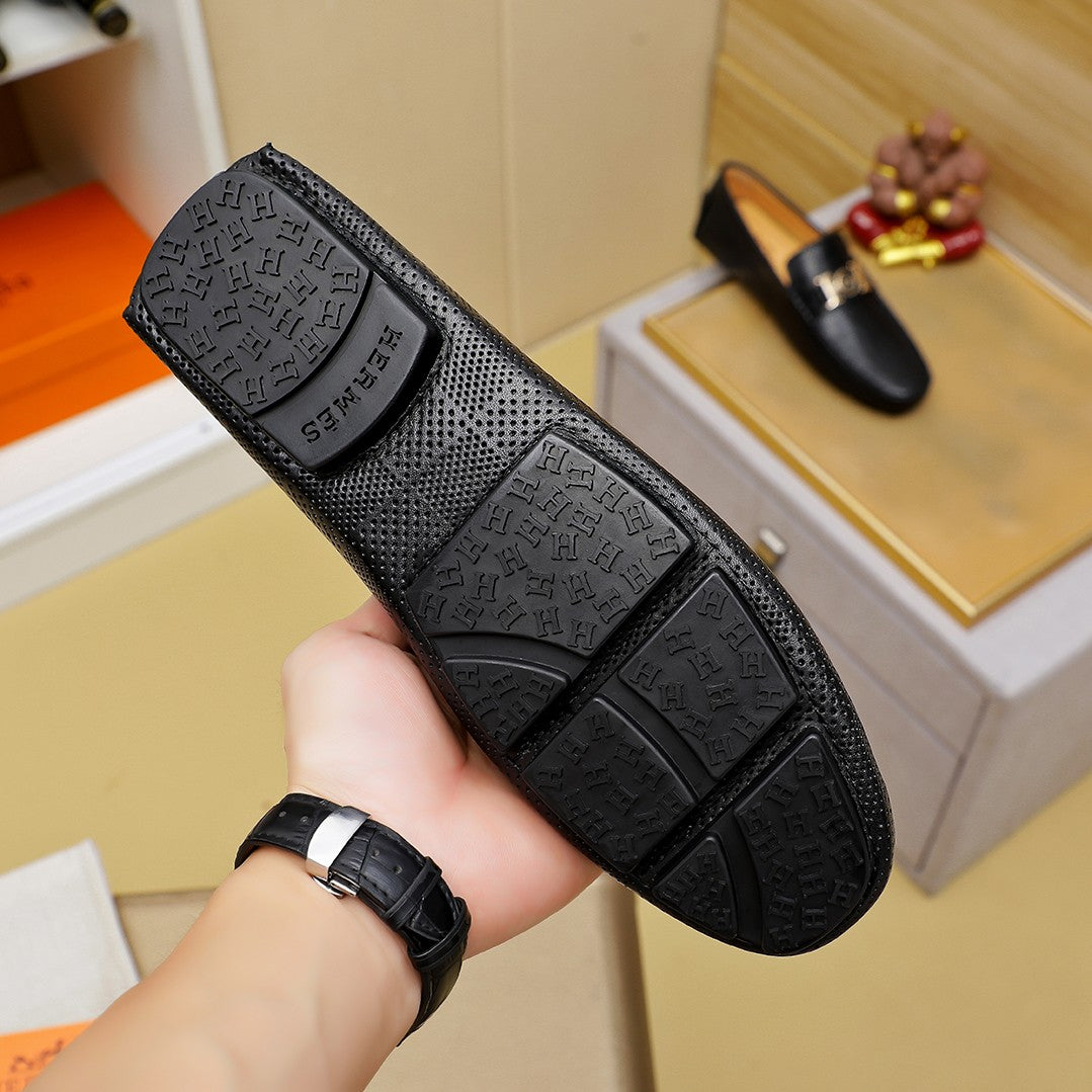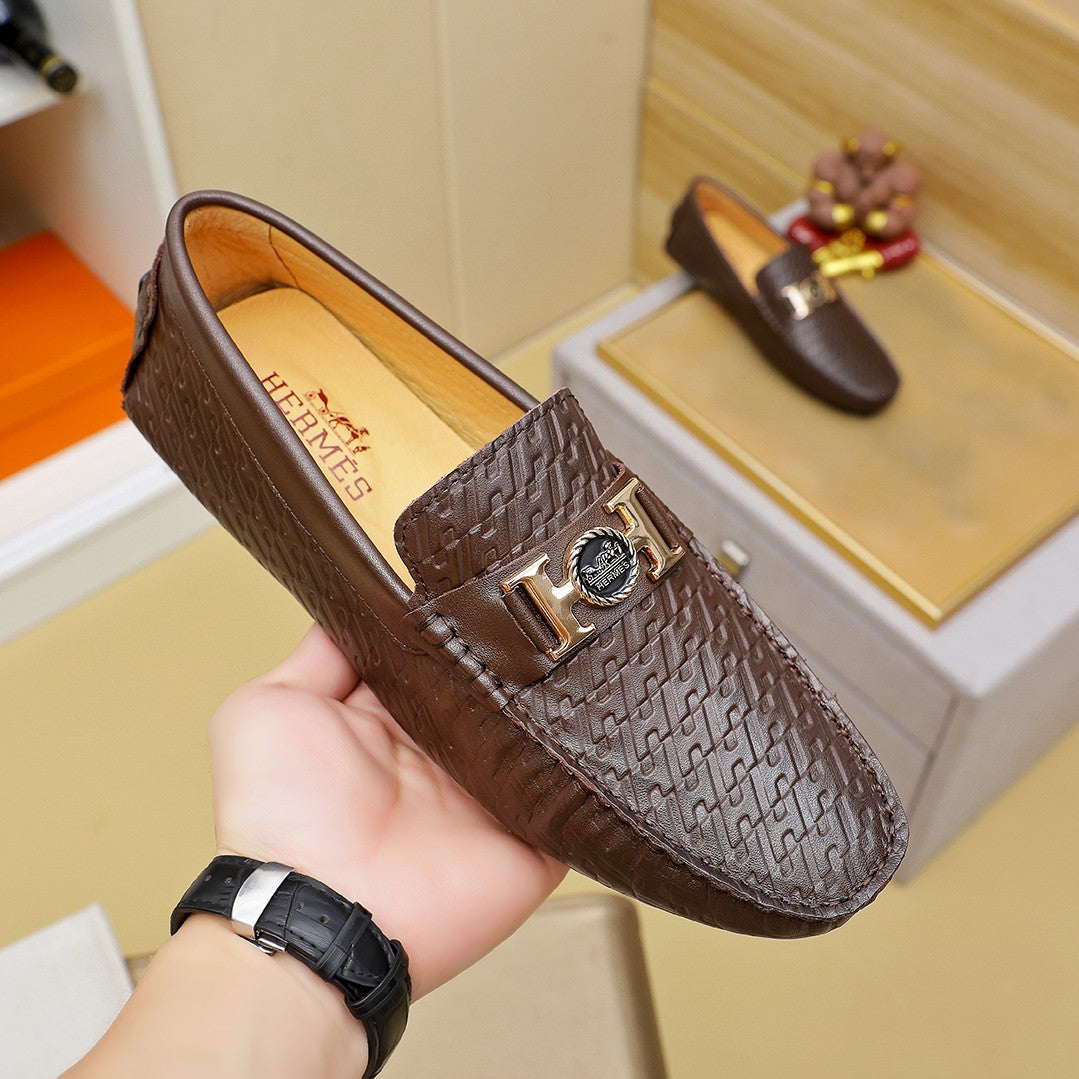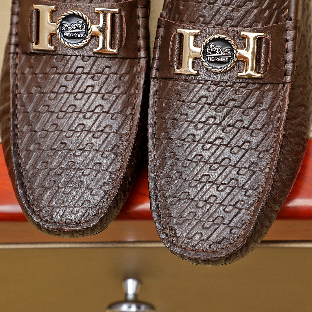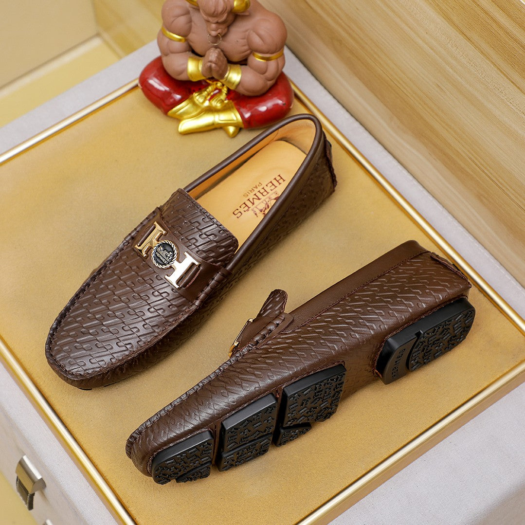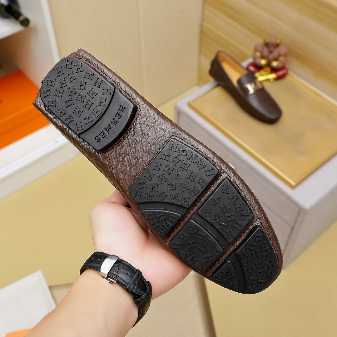 Elevate your footwear collection with our Classic Men's Slip-On Leather Shoes, inspired by the iconic designs of Hermès. Crafted with precision using a 1:1 mold for an authentic style, these shoes feature luxurious imported first-layer cowhide for unmatched quality and durability. The pigskin lining ensures exceptional comfort, making them perfect for all-day wear. Available in two sophisticated colors and sizes ranging from 38 to 45, these solid and stable shoes are a timeless addition to your wardrobe. Experience the blend of luxury and practicality with our high-end leather footwear.