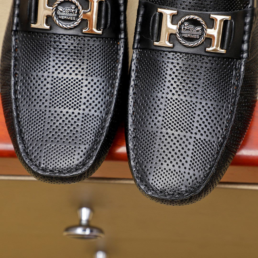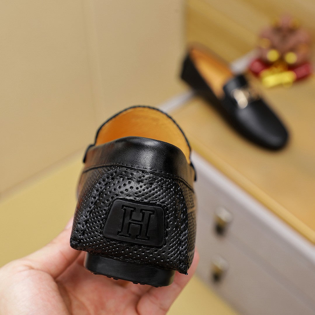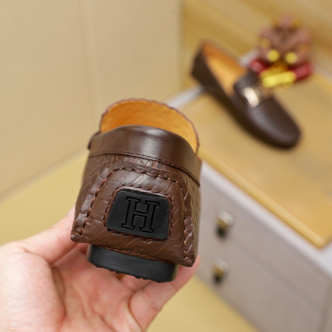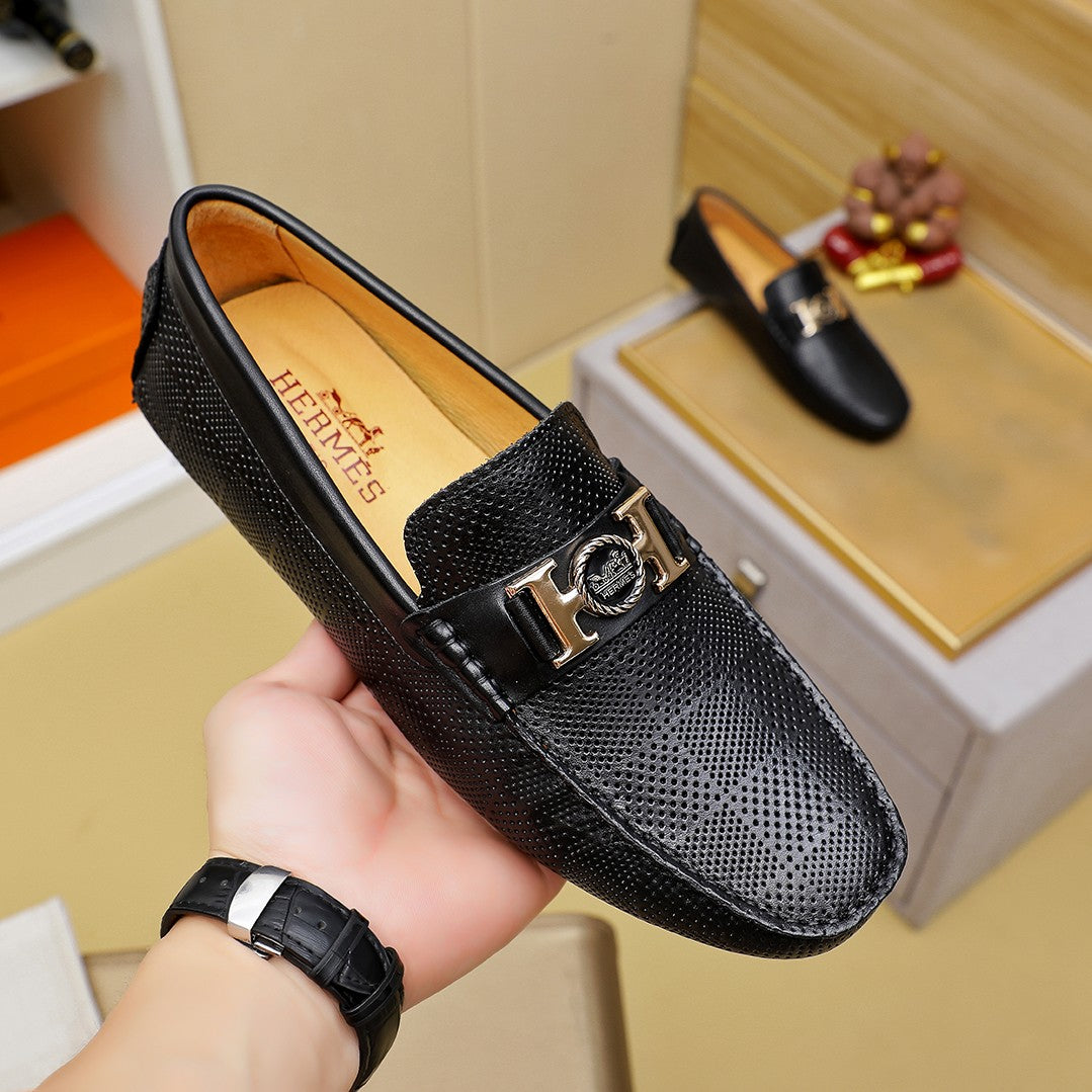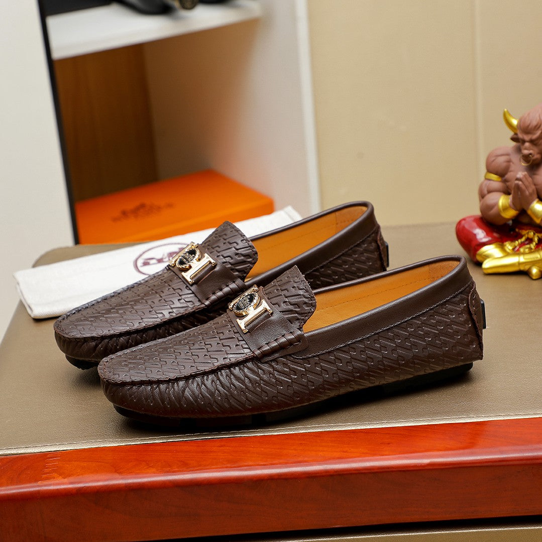 Elevate your footwear collection with our Classic Men's Slip-On Leather Shoes, inspired by the iconic designs of Hermès. Crafted with precision using a 1:1 mold for an authentic style, these shoes feature luxurious imported first-layer cowhide for unmatched quality and durability. The pigskin lining ensures exceptional comfort, making them perfect for all-day wear. Available in two sophisticated colors and sizes ranging from 38 to 45, these solid and stable shoes are a timeless addition to your wardrobe. Experience the blend of luxury and practicality with our high-end leather footwear.