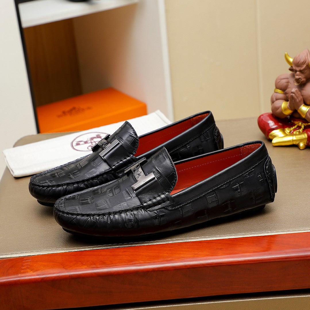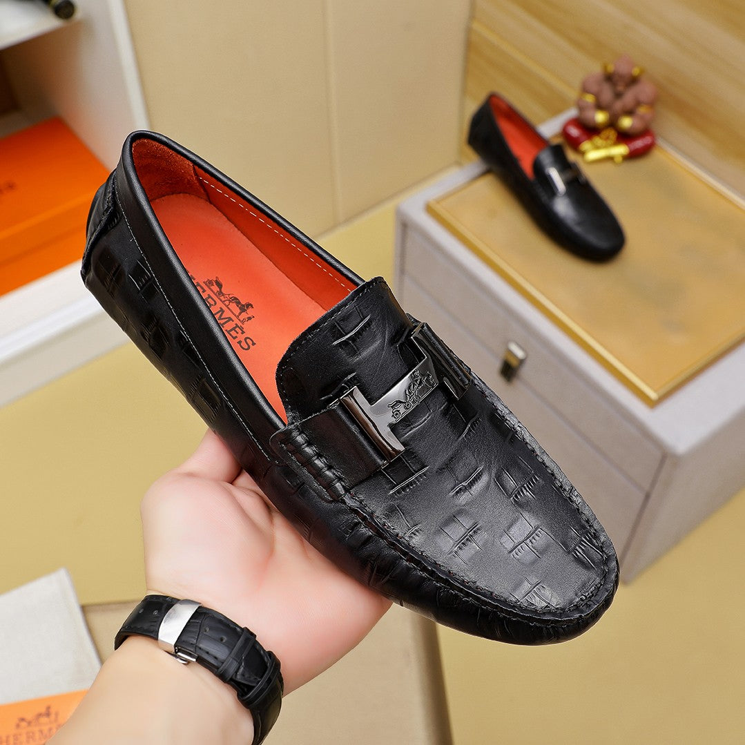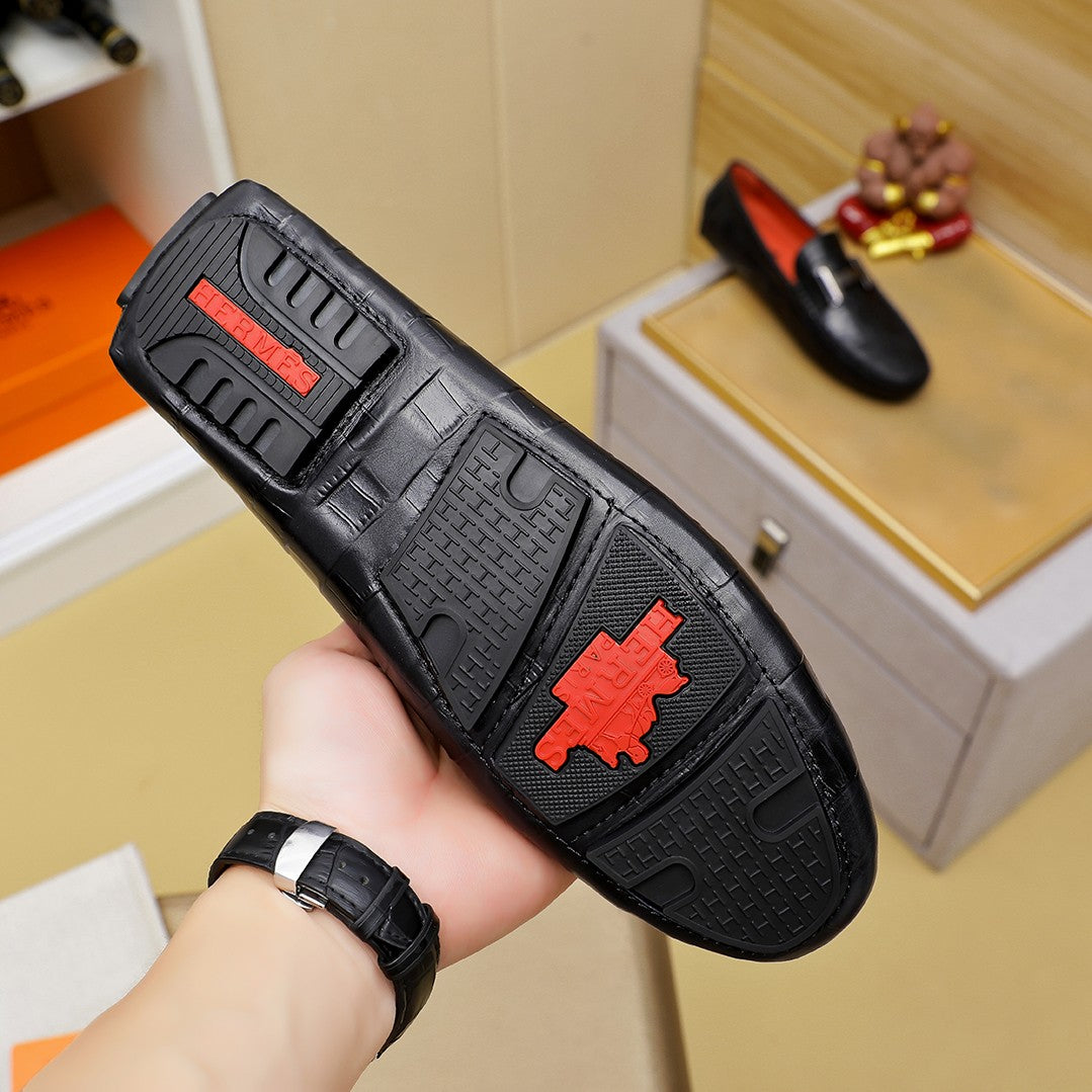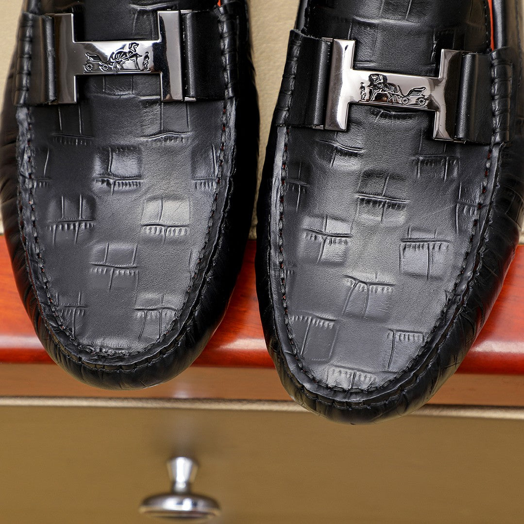 Classic Men's Slip-On Leather Shoes | Premium Quality - Hermès Style