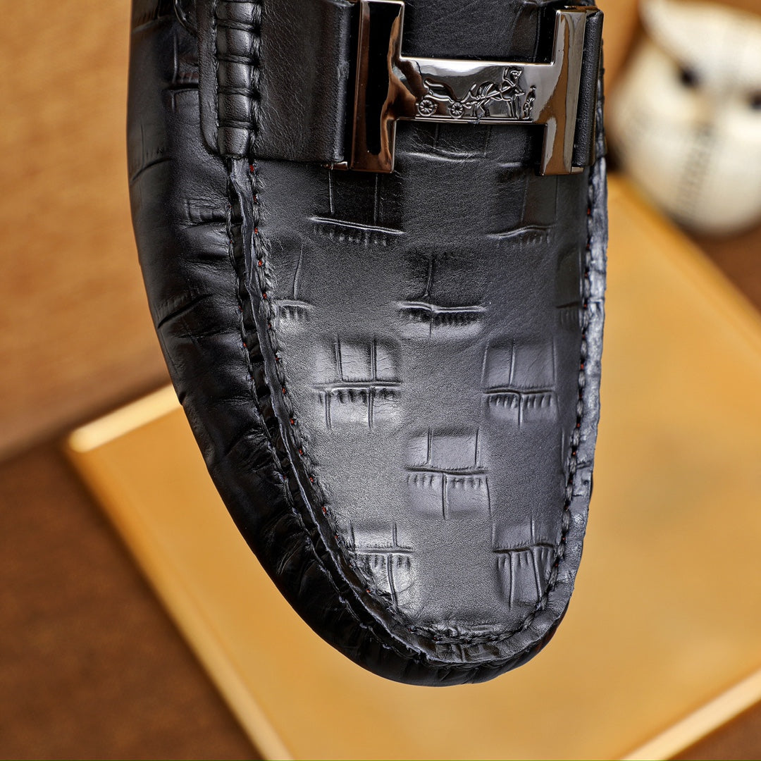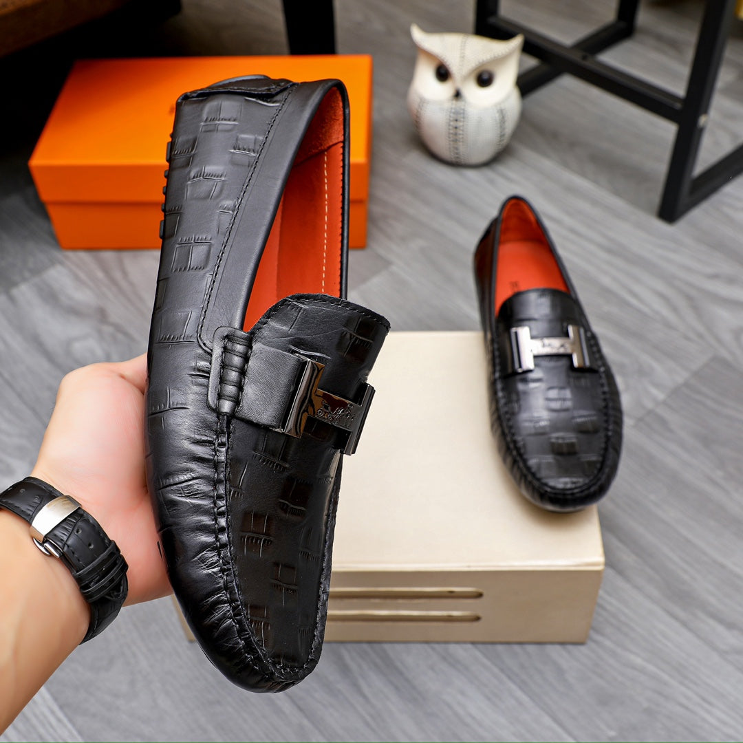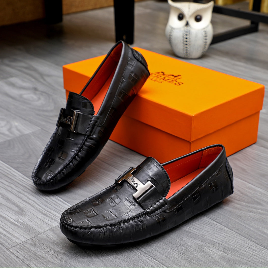 Discover our premium Classic Slip-On Shoes, inspired by the iconic Hermès design. Crafted with meticulous attention to detail, these shoes feature a 1:1 mold for an authentic look and feel. Made from imported first-layer cowhide, they offer exceptional durability and style. The pigskin lining ensures superior comfort, making these shoes perfect for any occasion. Available in two elegant colors, with sizes ranging from 38-44 (custom options available for 45 and 46). Elevate your footwear collection with these high-end men's leather shoes that combine sophistication and stability.