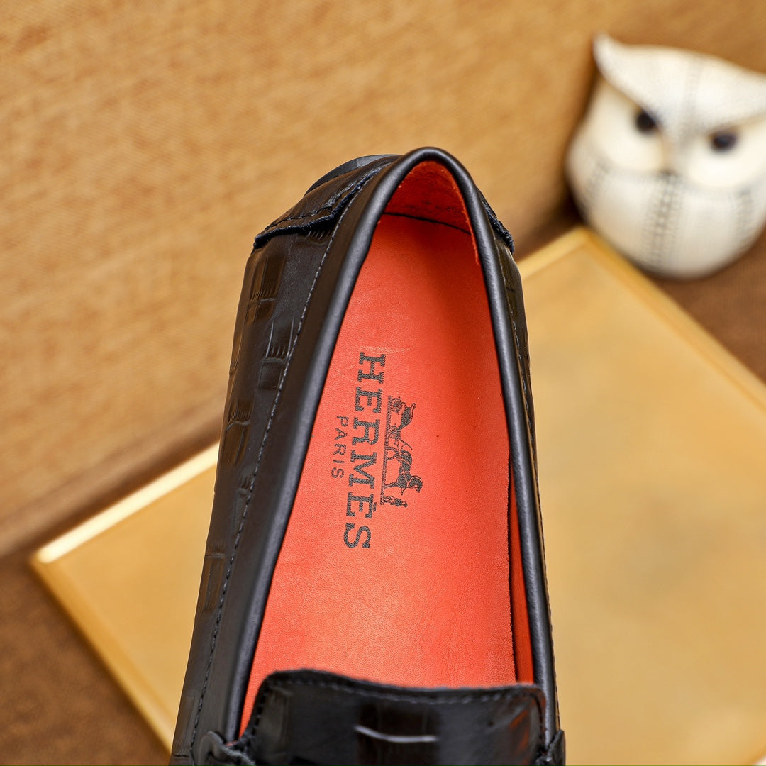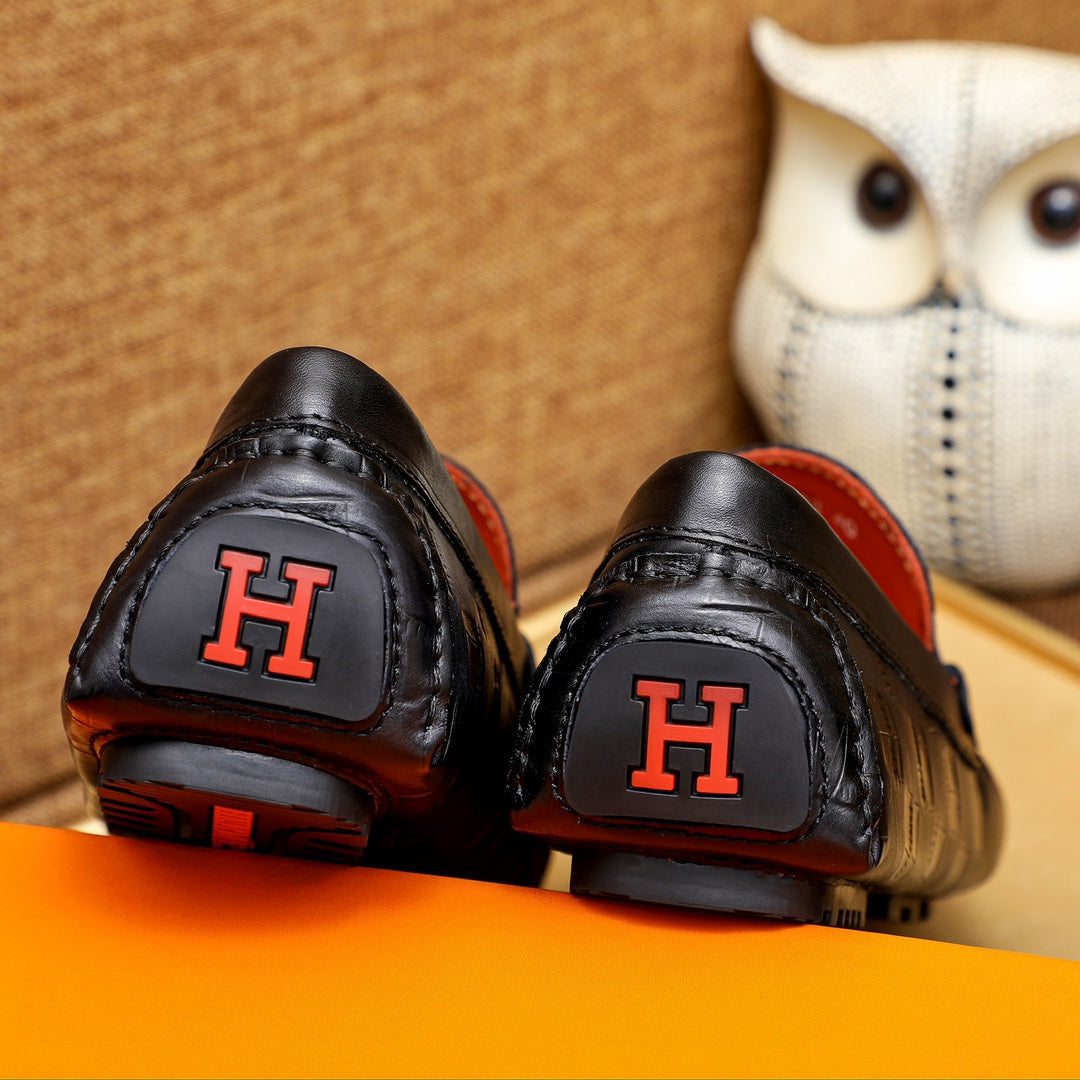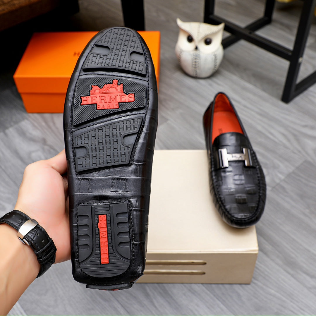 Discover our premium Classic Slip-On Shoes, inspired by the iconic Hermès design. Crafted with meticulous attention to detail, these shoes feature a 1:1 mold for an authentic look and feel. Made from imported first-layer cowhide, they offer exceptional durability and style. The pigskin lining ensures superior comfort, making these shoes perfect for any occasion. Available in two elegant colors, with sizes ranging from 38-44 (custom options available for 45 and 46). Elevate your footwear collection with these high-end men's leather shoes that combine sophistication and stability.
