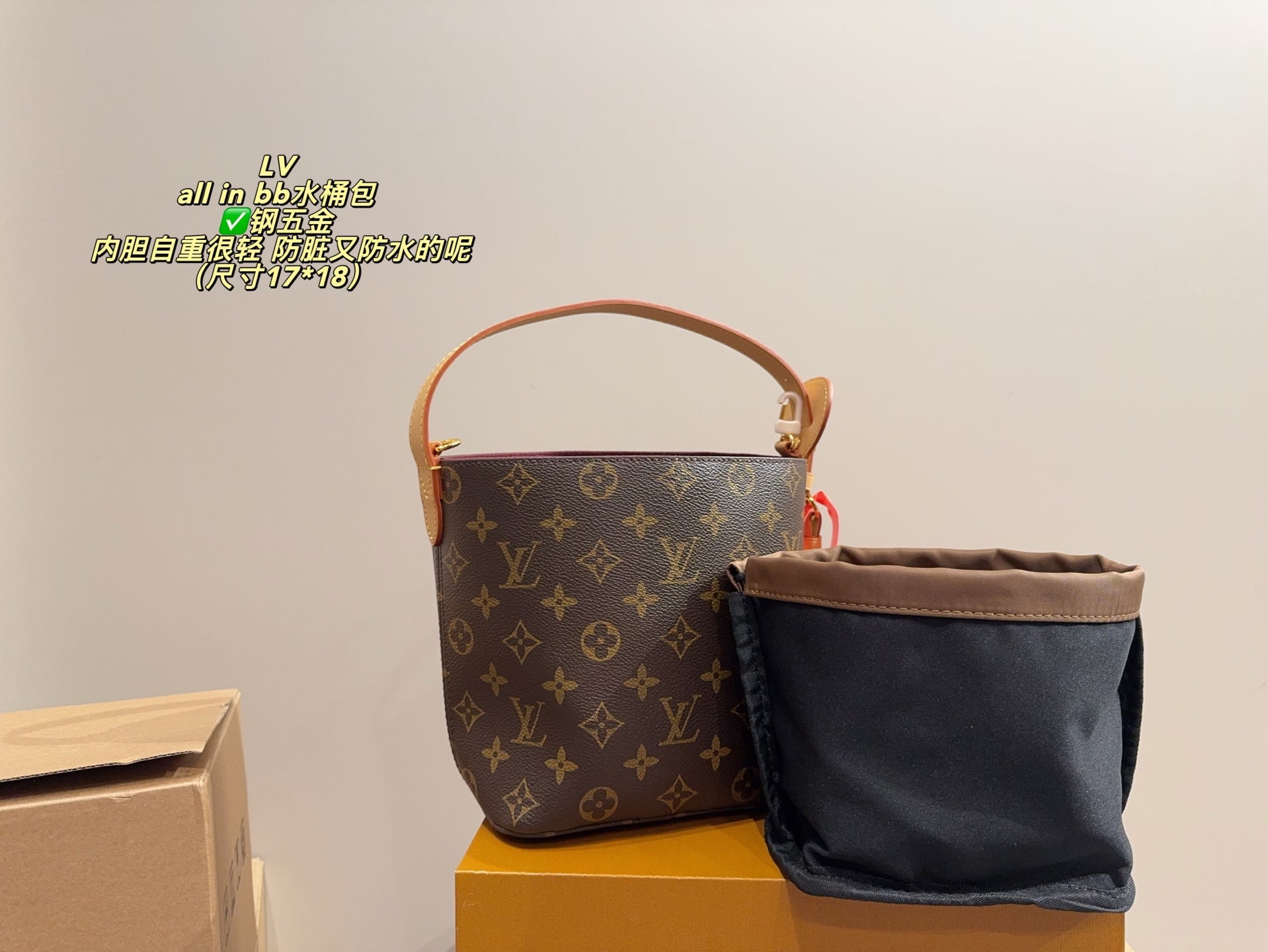 Elevate your LV All In BB Bucket Bag with our Compact Waterproof Organizer Liner. Designed to fit perfectly within your bag (dimensions: 17cm x 18cm), this lightweight liner features durable steel hardware and a convenient folding box design.