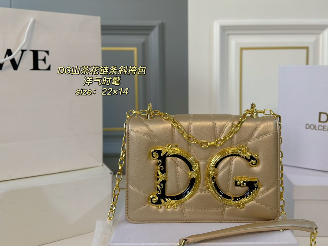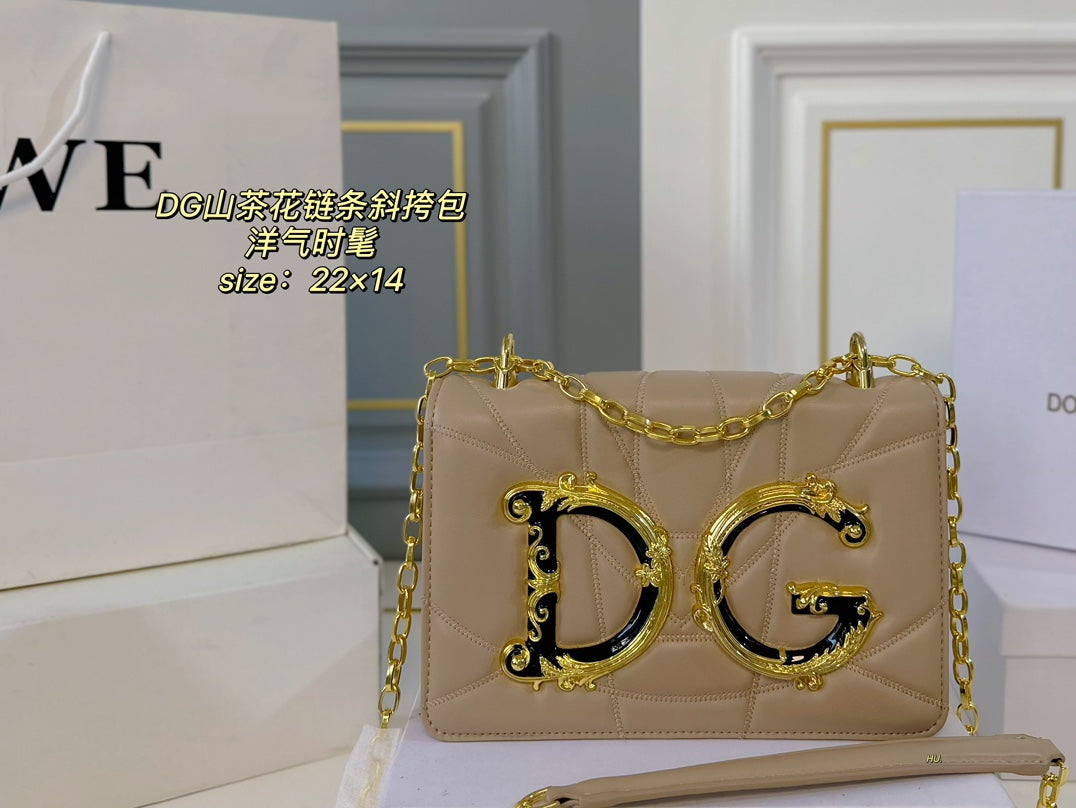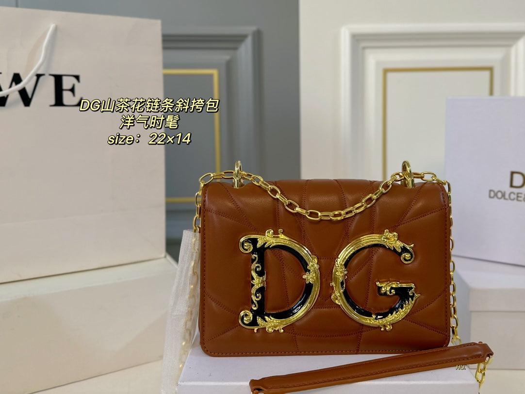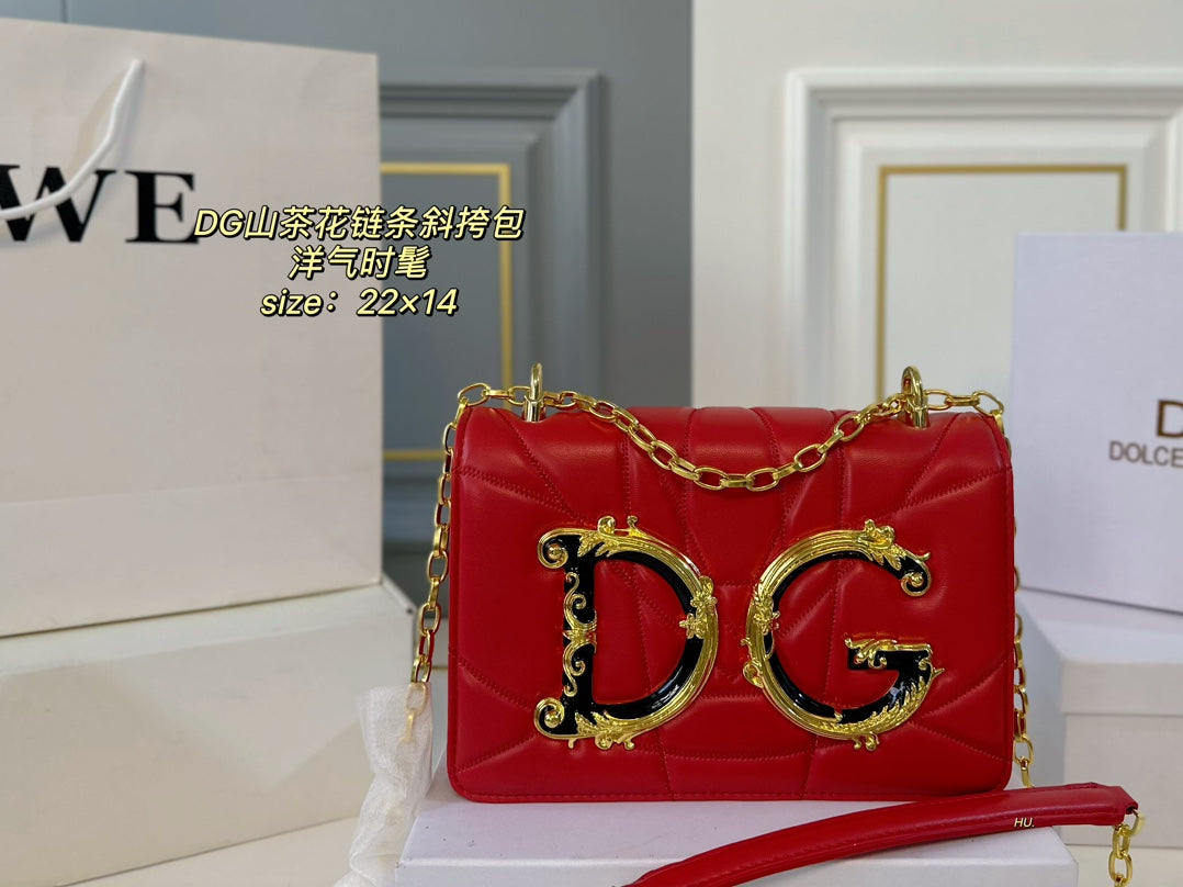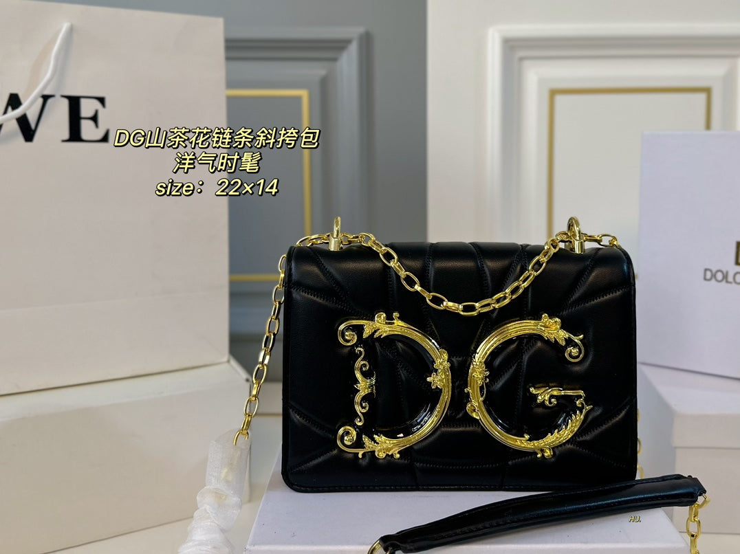 Elevate your style with the D&G Dolce & Gabbana Camellia Flower Series Crossbody Bag, featuring a chic three-dimensional design and the iconic DG logo. This modern and minimalist bag measures 22 x 14 cm and comes with a fully adjustable chain shoulder strap, allowing for versatile styling options—wear it on one shoulder, cross-body, or tucked under your arm. With its blend of retro flair and contemporary aesthetics, this bag is perfect for fashion-forward individuals looking to make a statement. Perfectly packaged in a stylish box, it makes an ideal gift for yourself or a loved one.