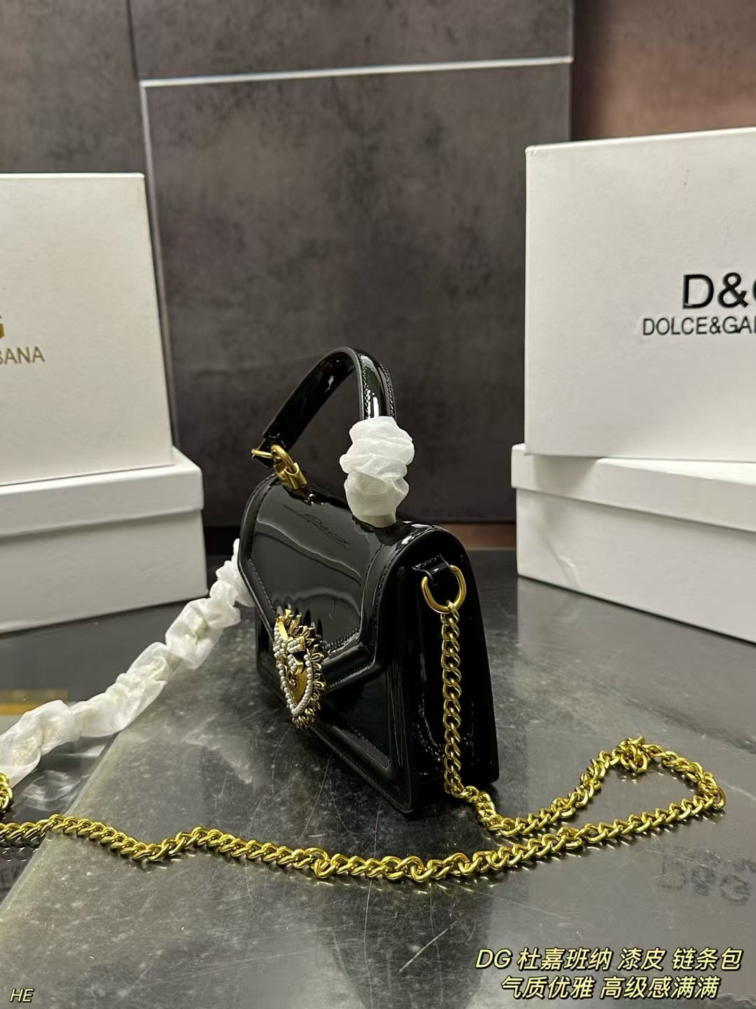 DG Dolce & Gabbana Patent Leather Chain Bag - Elegant and Chic