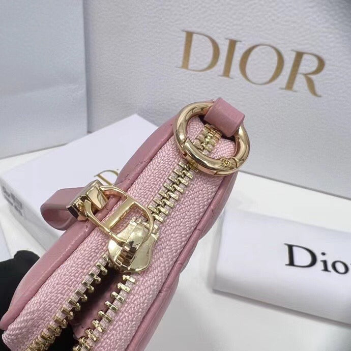 Discover the elegance of the Dior 2386 accessory, designed in a stunning combination of black and pink. Measuring 12 x 8.5 inches, this piece is crafted from luxurious lambskin leather, featuring the iconic cannage topstitching for a timeless touch. The accessory is equipped with a sturdy metal ring, allowing it to be easily attached to the embroidered shoulder strap for added versatility. Slip it into your pocket or wear it alongside this season's trendy spaghetti strap for a chic look. The front showcases the distinct "CD" logo, while the secure zipper closure is adorned with a "CD" logo zip, symbolizing the refinement and quality of Dior. Perfect for those who appreciate luxury and style in their accessories.