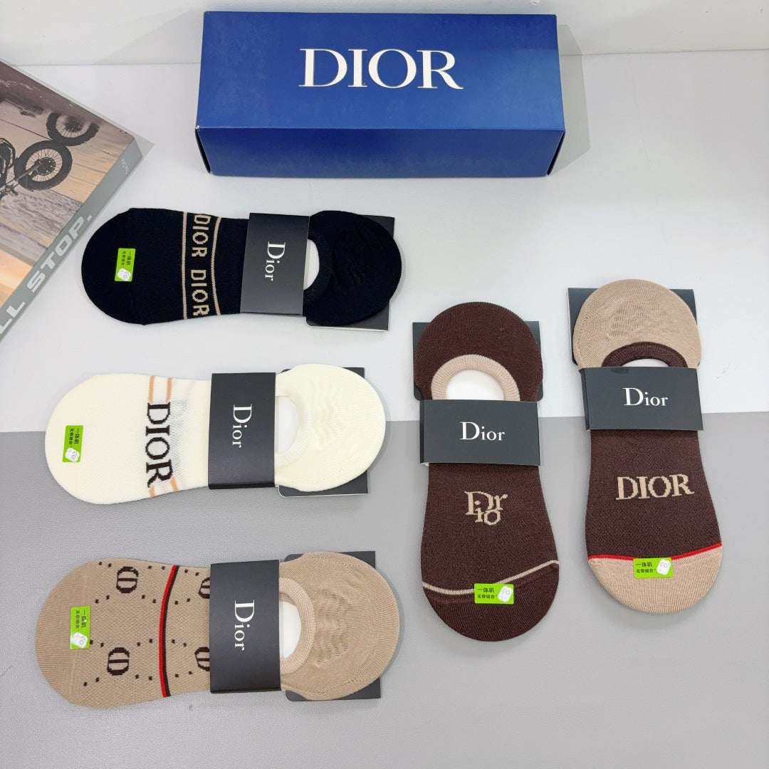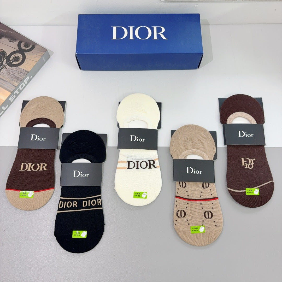 Dior Bamboo Cotton Boat Socks - 5 Pairs