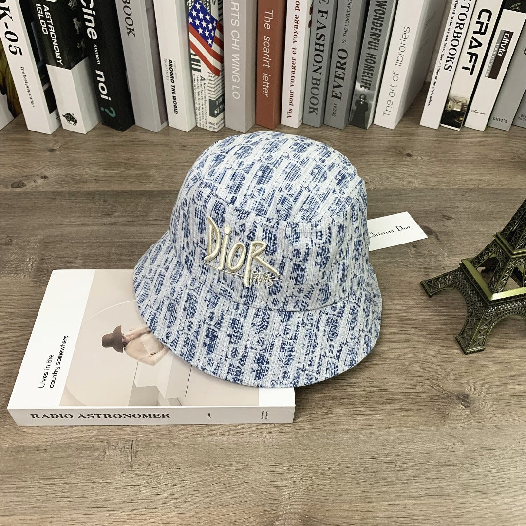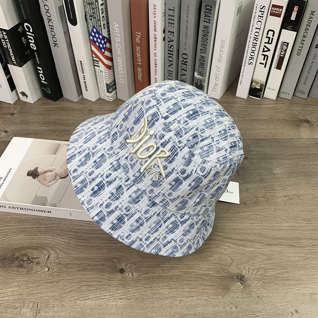 Elevate your casual style with the Dior Blue Logo Fisherman Hat, designed for both men and women. This versatile, one-size-fits-all hat features a striking full logo design that showcases your fashion-forward spirit. Made for comfort and style, it's the perfect accessory for those looking to make a statement while staying effortlessly cool. Add this chic piece to your collection and enjoy its endless styling possibilities. Available in a classic blue color.