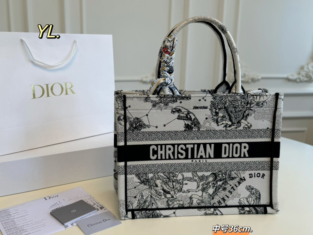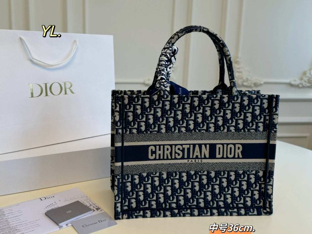 Dior Canvas Embroidered Tote Bag - Medium Size