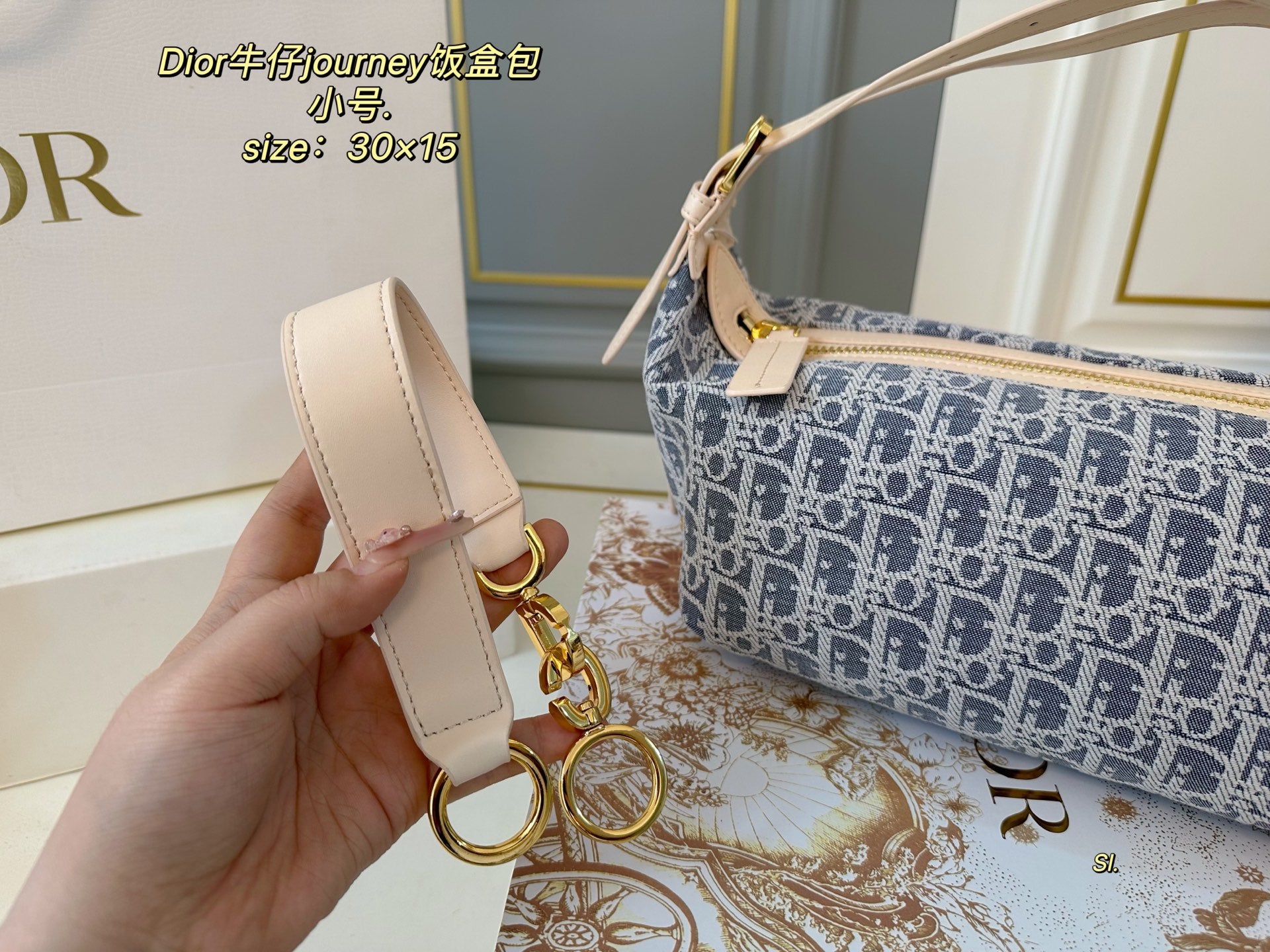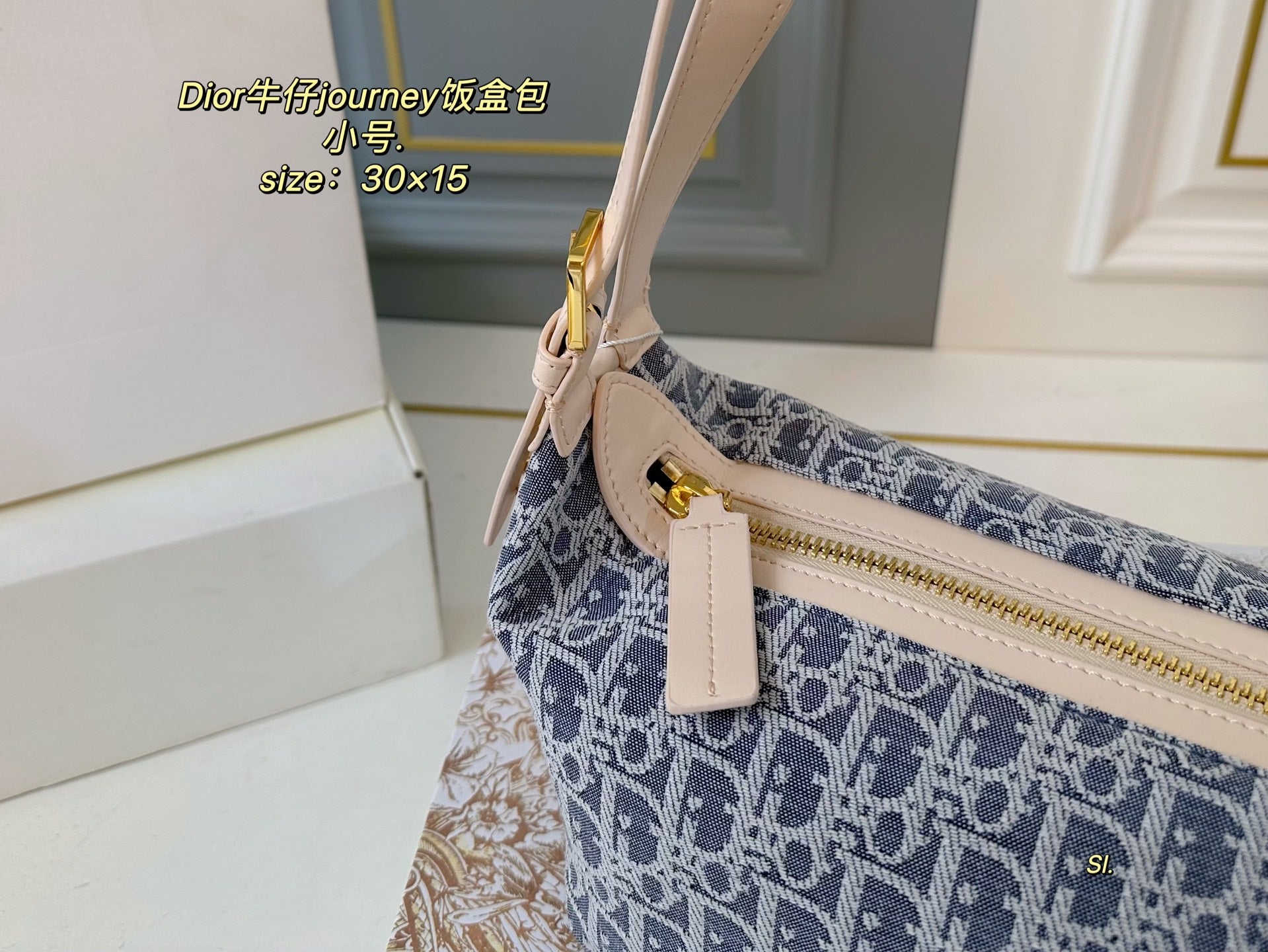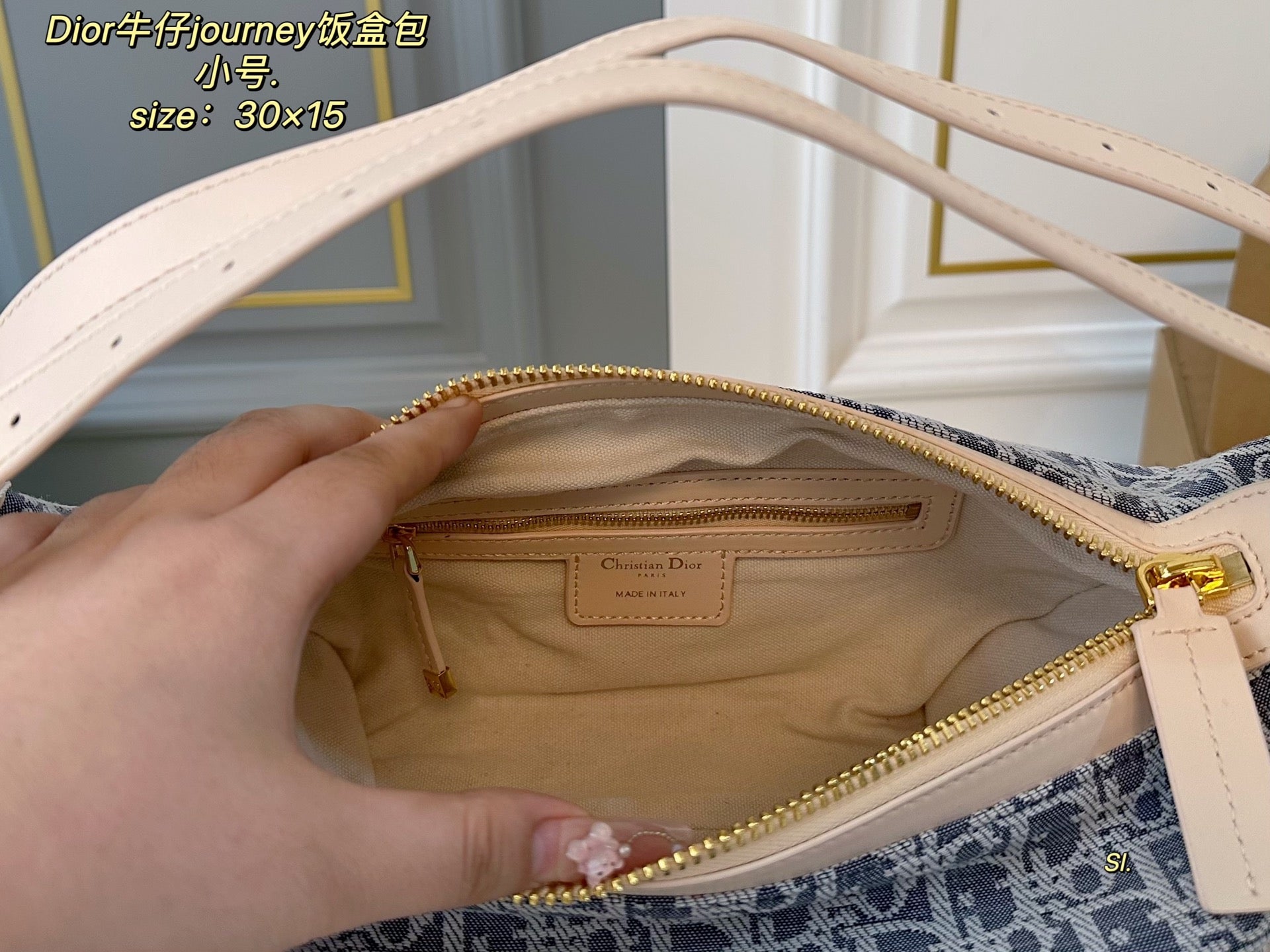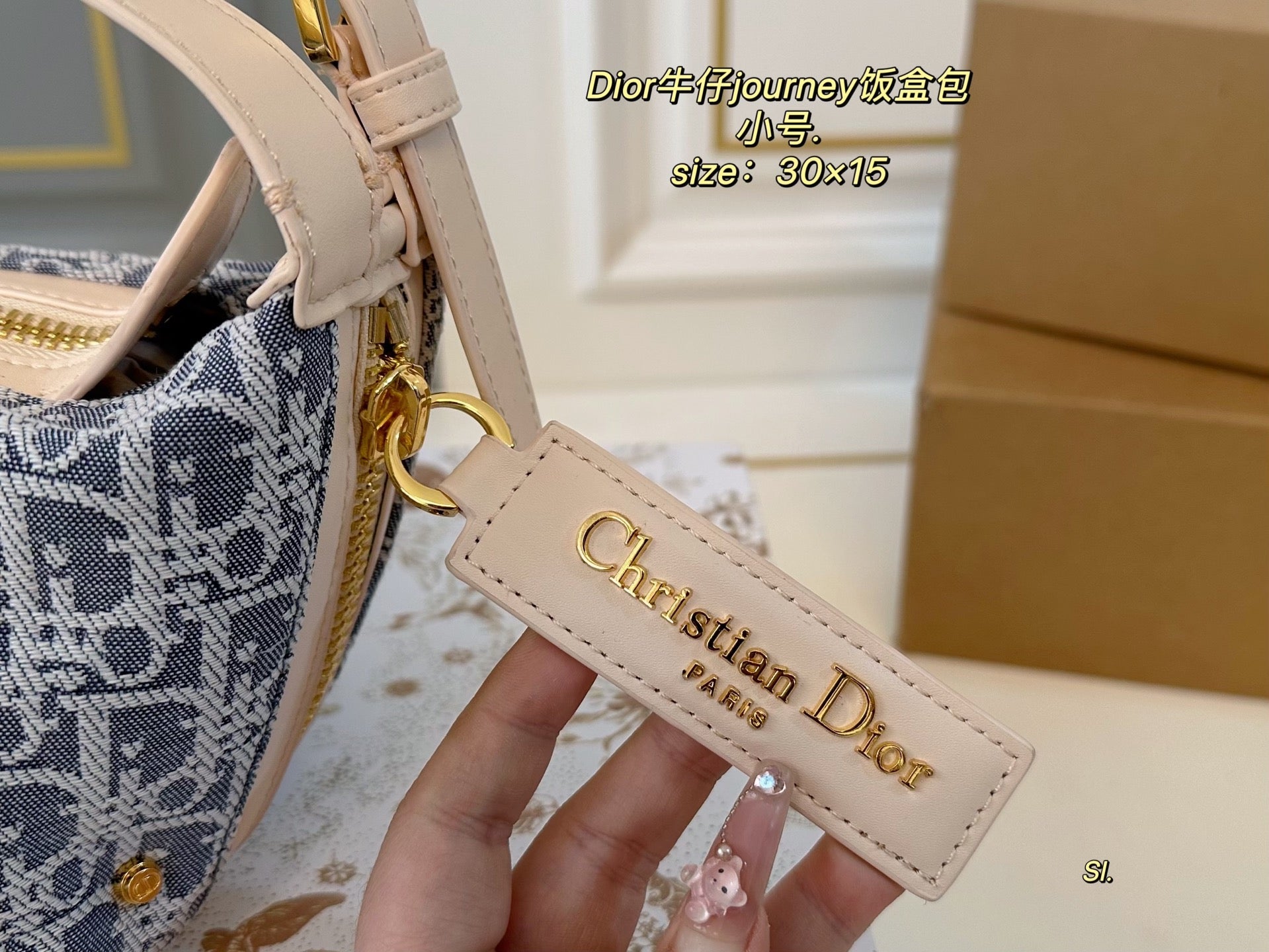 Discover the DIOR Denim Journey Lunch Box Bag, designed for those who appreciate style and functionality. This small-sized hobo bag (30×15 cm) exudes a relaxed, casual vibe, perfect for everyday use. The adjustable shoulder strap allows for versatile carrying options, making it easy to adapt to your needs. Crafted from high-quality materials, this bag features an incredibly soft and waxy texture that enhances its fashionable appeal. Elevate your accessory game with this chic and practical lunch box bag that seamlessly combines form and function.