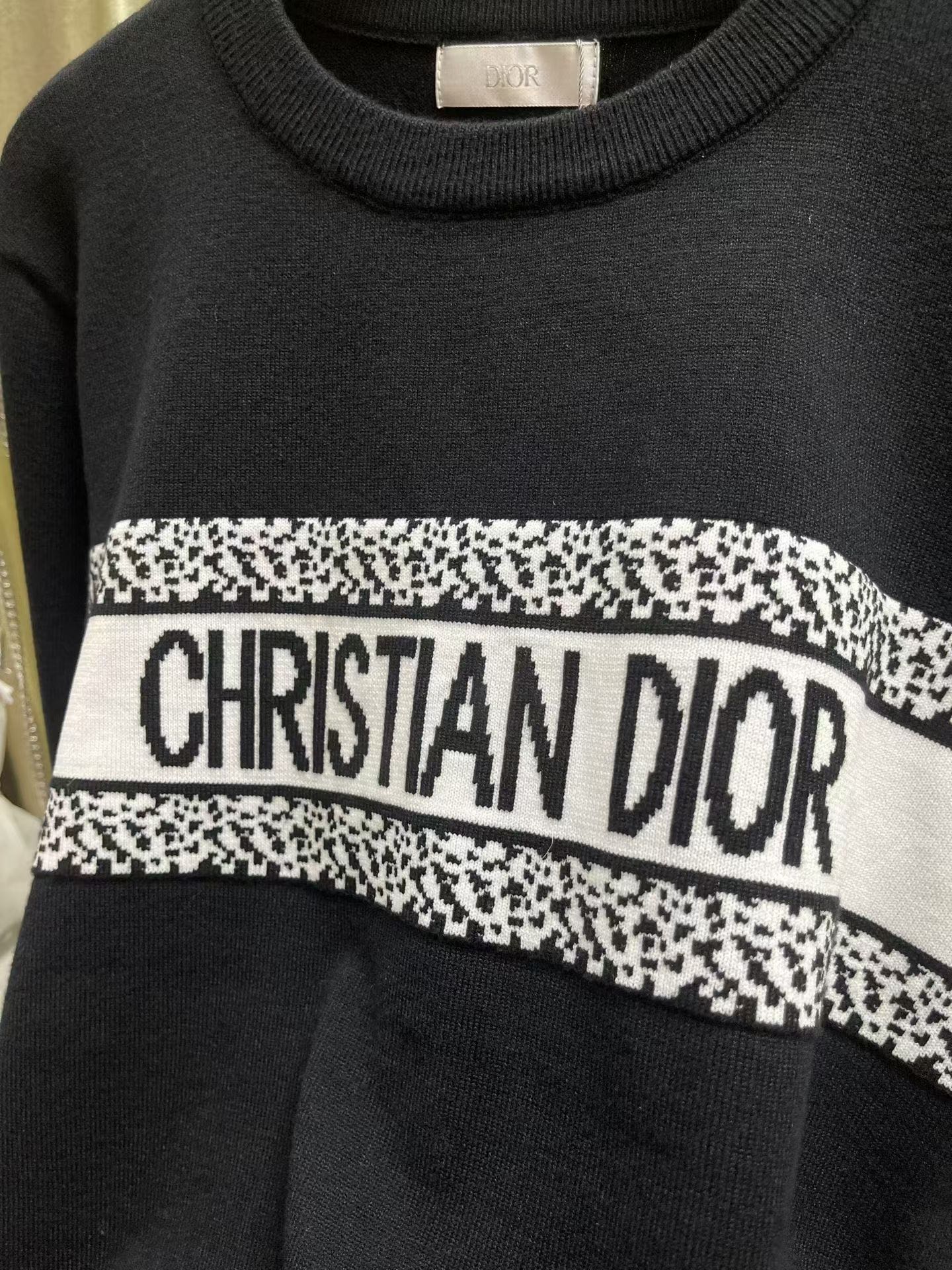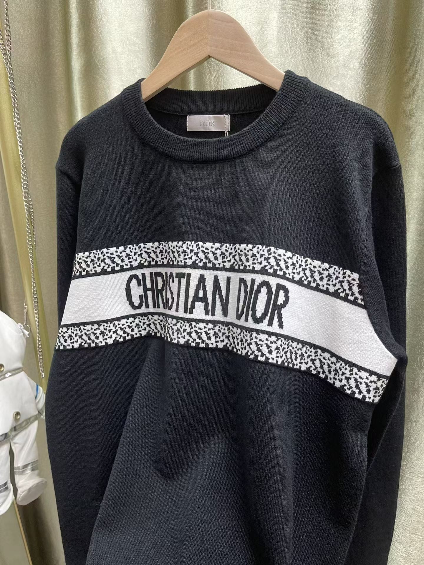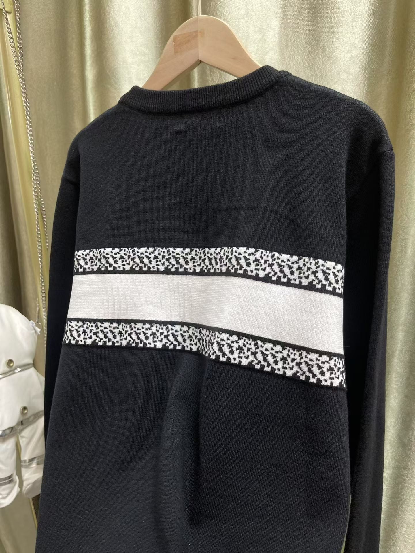 Available in classic black and white, this versatile piece is suitable for both men and women in sizes S-XL. To ensure the perfect fit, please specify your height and weight when placing an order. Experience high-end elegance and comfort with the Dior Intarsia Knitted Crew Neck Sweater, a must-have addition to your seasonal wardrobe.
