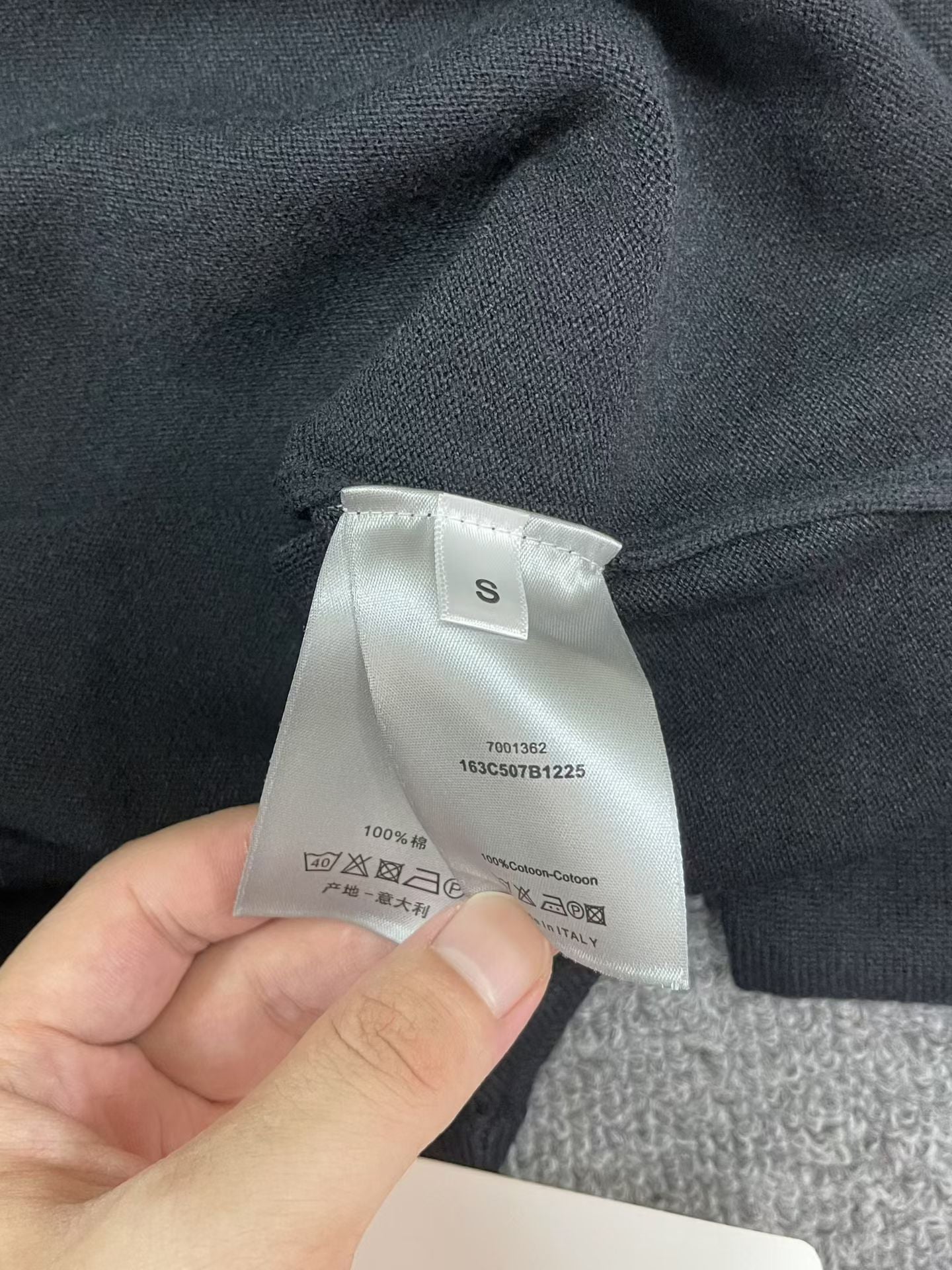 Designed with a tight and textured four-hole knitting technique, this sweater offers exceptional durability without pilling or losing shape. The minimalist design, adorned with the iconic Dior logo, infuses a sophisticated charm that complements any outfit effortlessly.