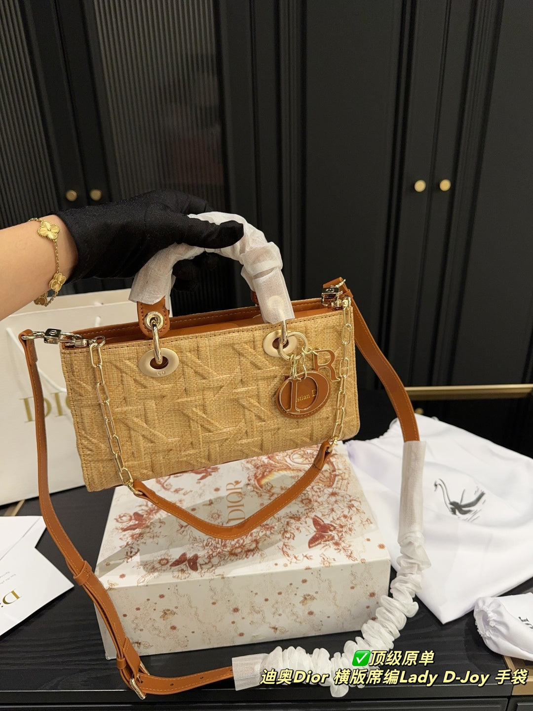 Versatility is key with its detachable chain shoulder strap and adjustable leather strap, allowing you to wear it comfortably as a handbag, over the shoulder, or cross-body. Perfect for any occasion, the Lady D-Joy is an essential addition to your everyday wardrobe. Experience luxury and style with this exquisite handbag.