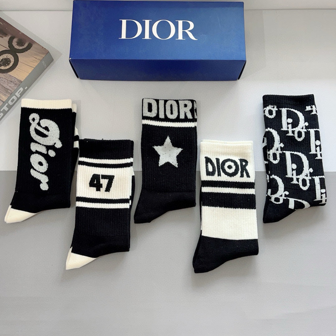 Dior Lettered Ribbed Stockings - 5 Pairs Box Set
