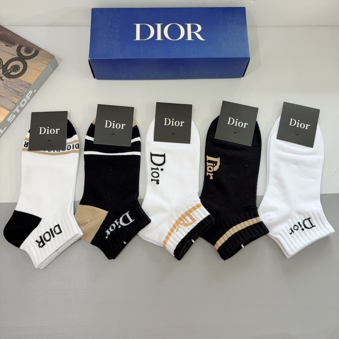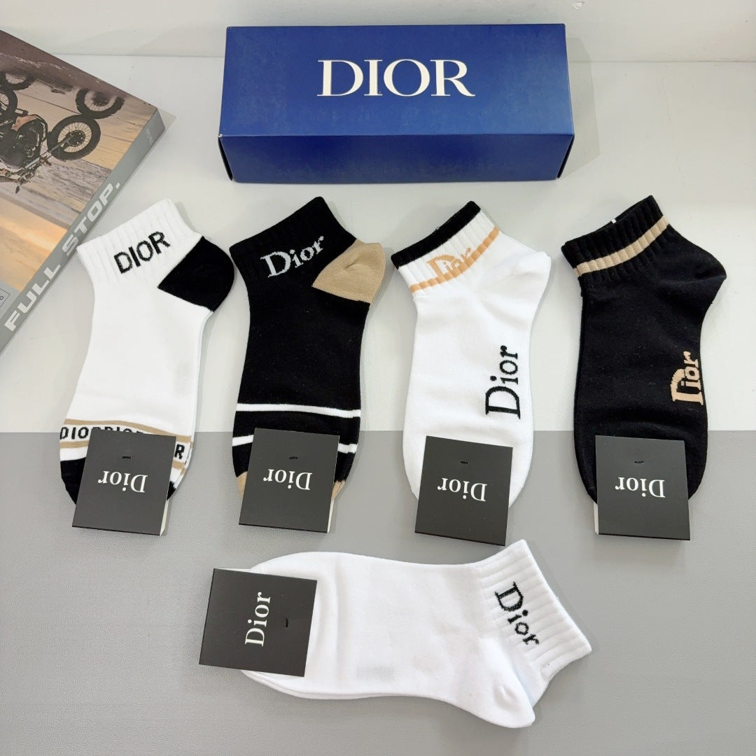 Dior Lettered Short Socks - Trendy Fashion Staple (5 Pairs)