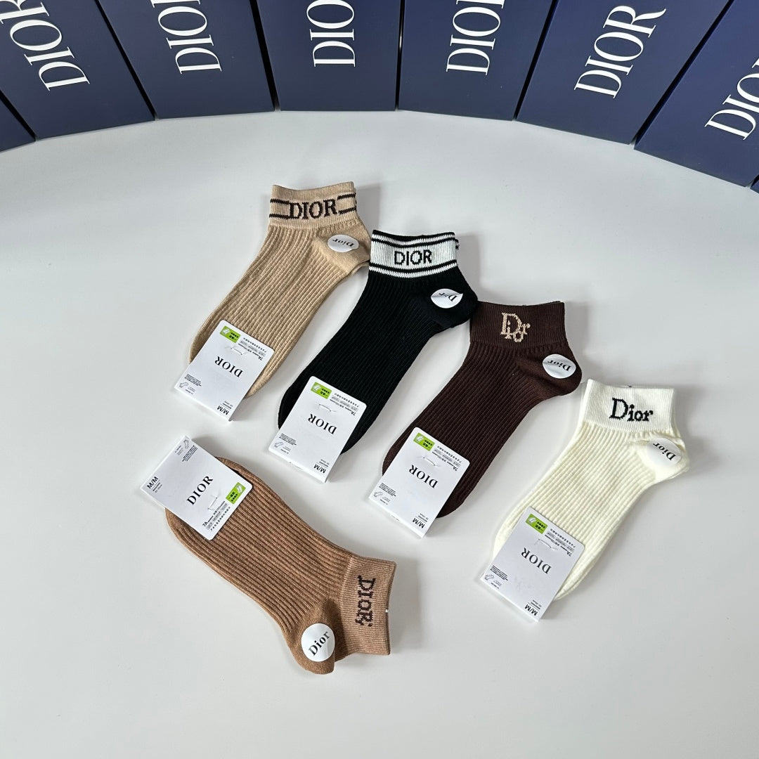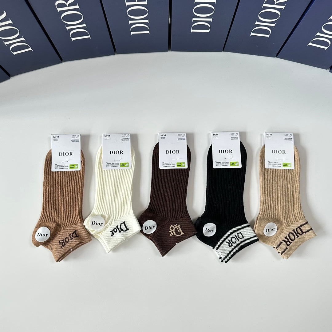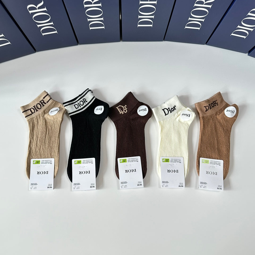 DIOR Medium & Short Pile Socks - 5-Pack for Stylish Fashionistas