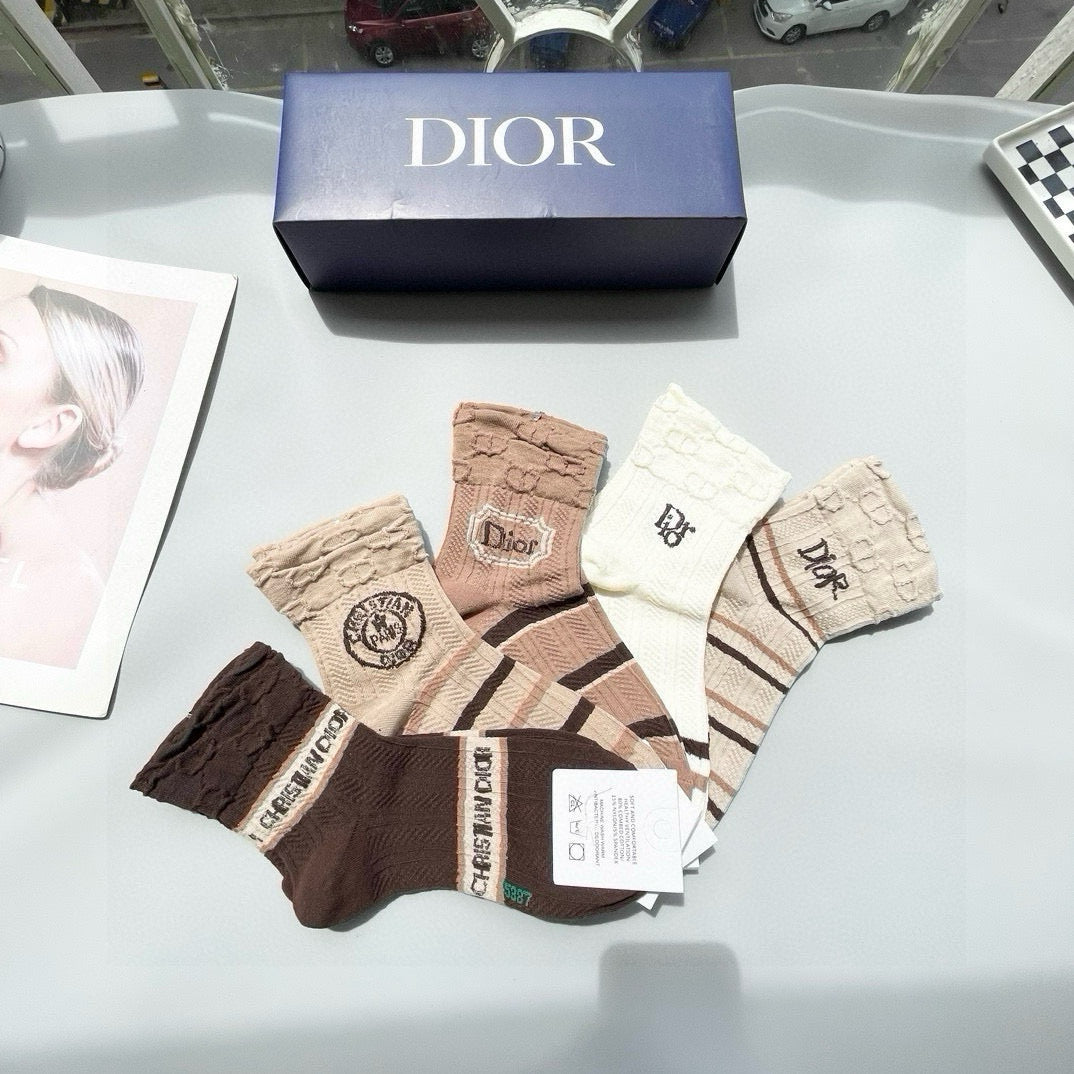 Dior Mid-Calf Fashion Socks - Unisex Stylish 5-Pair Box Set