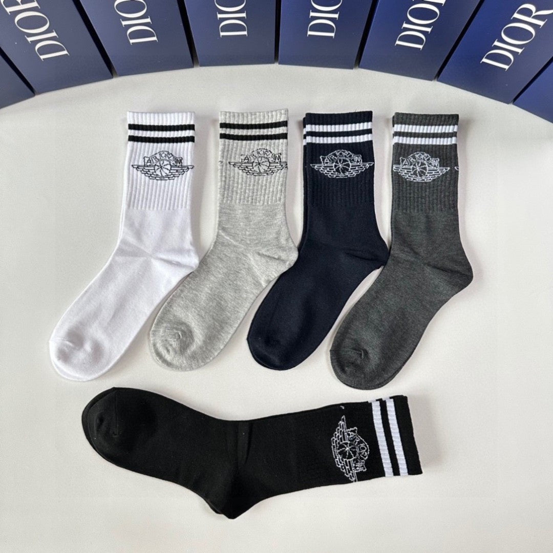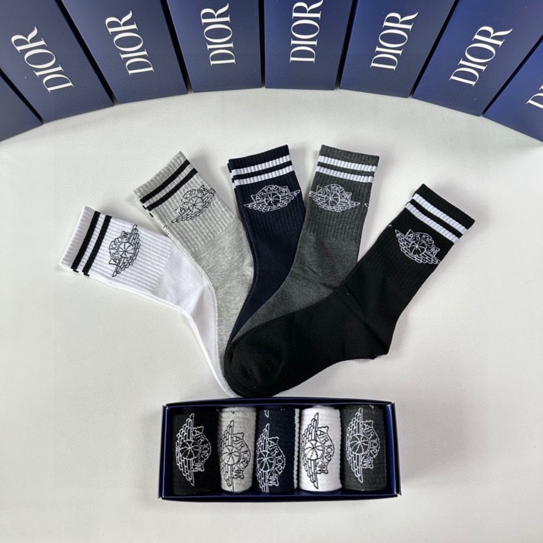 Elevate your sock collection with our exclusive set of Dior mid-length pile socks. Each box includes five pairs of stylish tube socks, meticulously designed to offer a perfect blend of comfort and flair. Crafted for fashion-forward individuals, these socks are effortless to pair with any outfit. Packaged beautifully, they make a trendy addition to your wardrobe or a thoughtful gift for style enthusiasts. Embrace the luxury of Dior and step out in confidence!