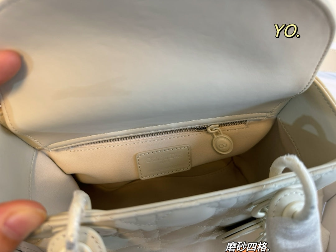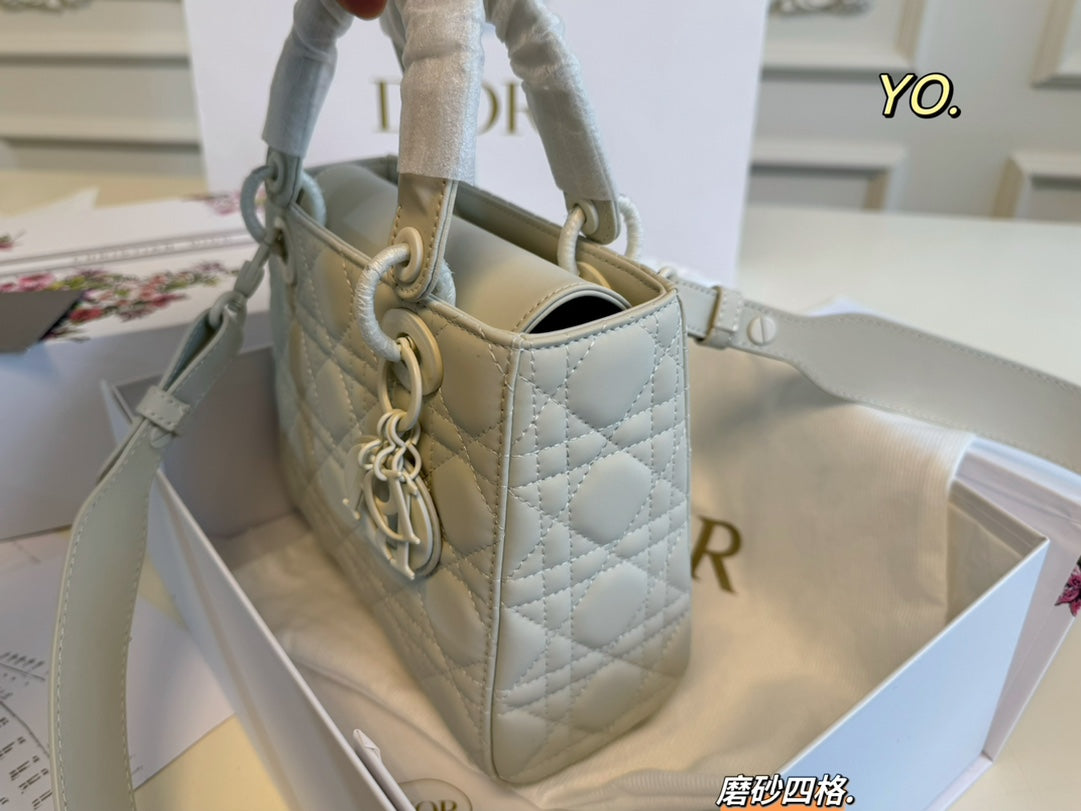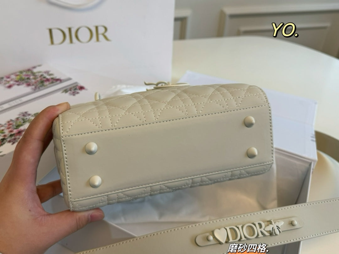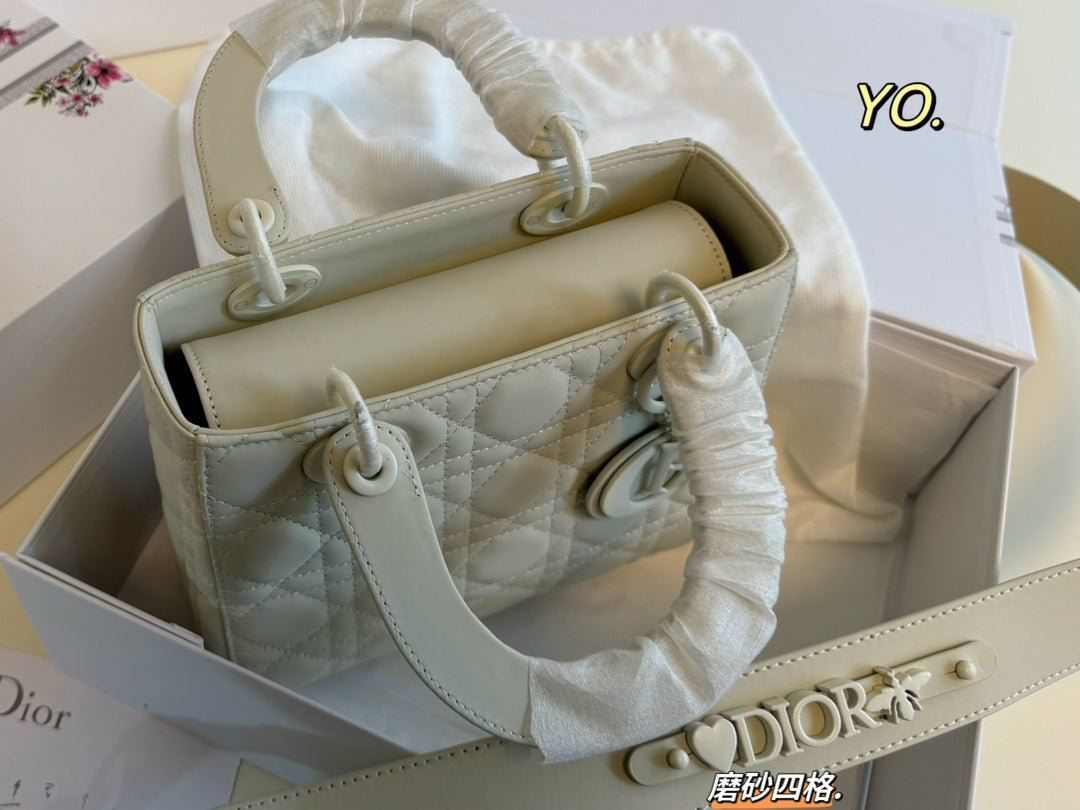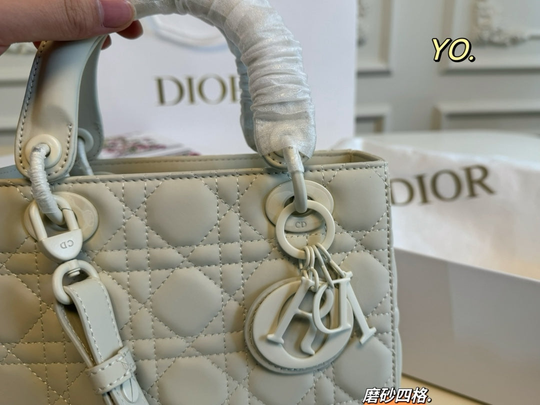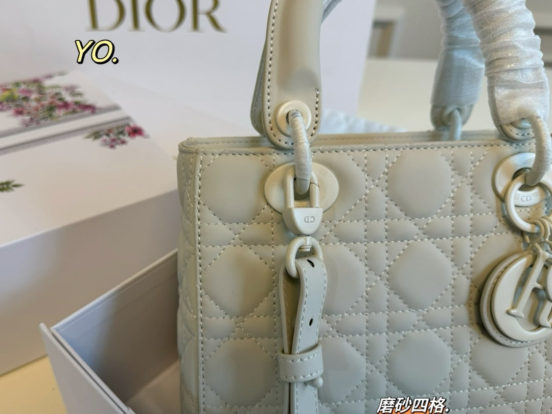 Introducing the Dior Princess Diana Bag, featuring a sophisticated four-grid design in a matte frosted finish. Measuring 20x17 cm, this stunning handbag showcases the iconic cannage pattern with intricately detailed quilting, making it a standout accessory for any occasion.